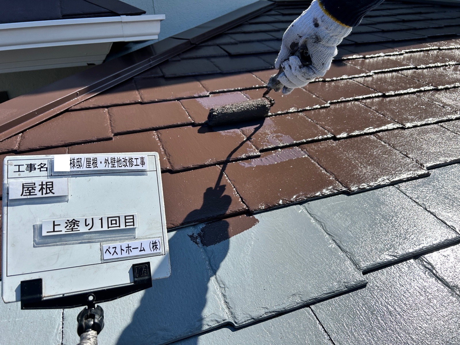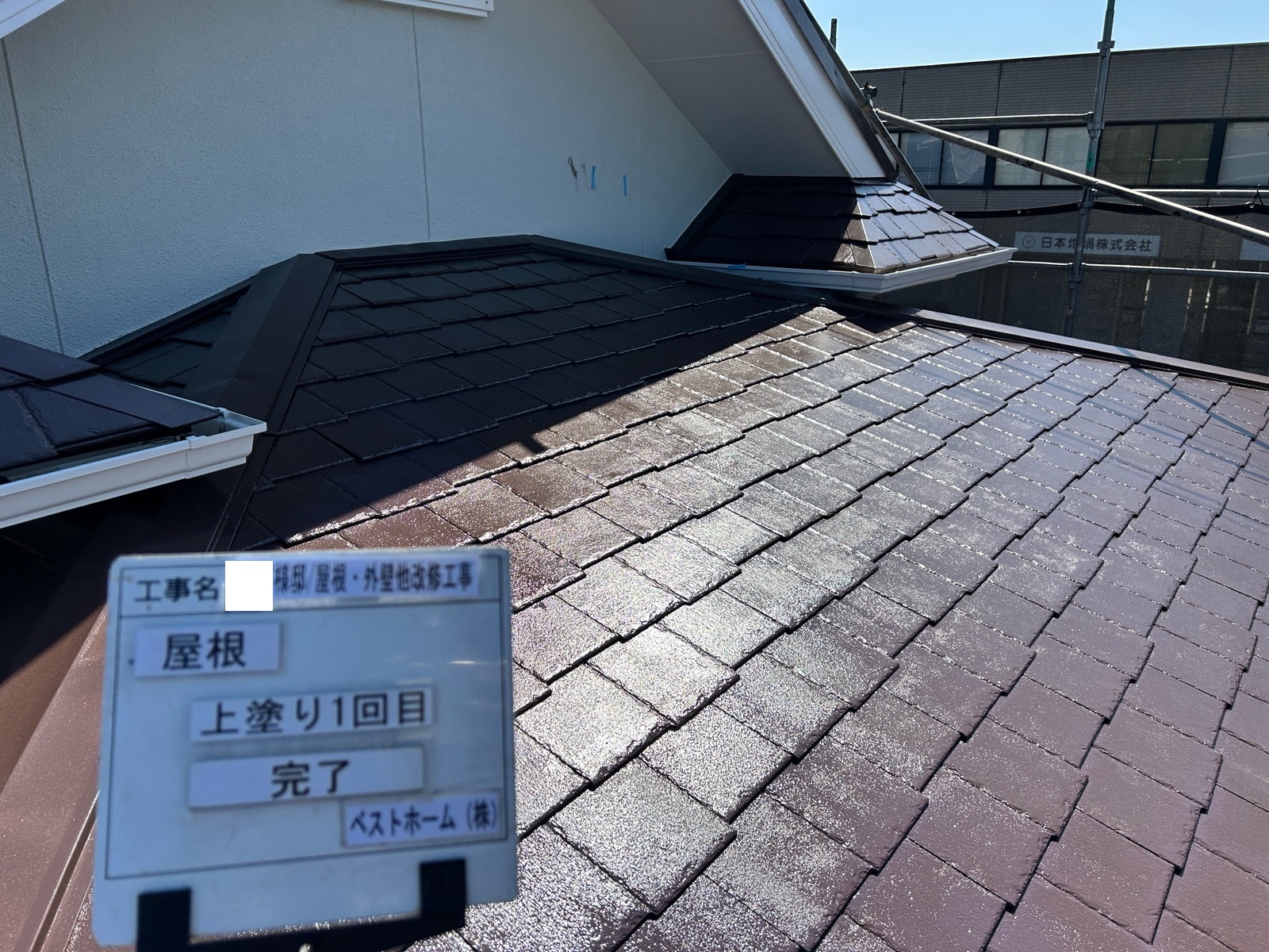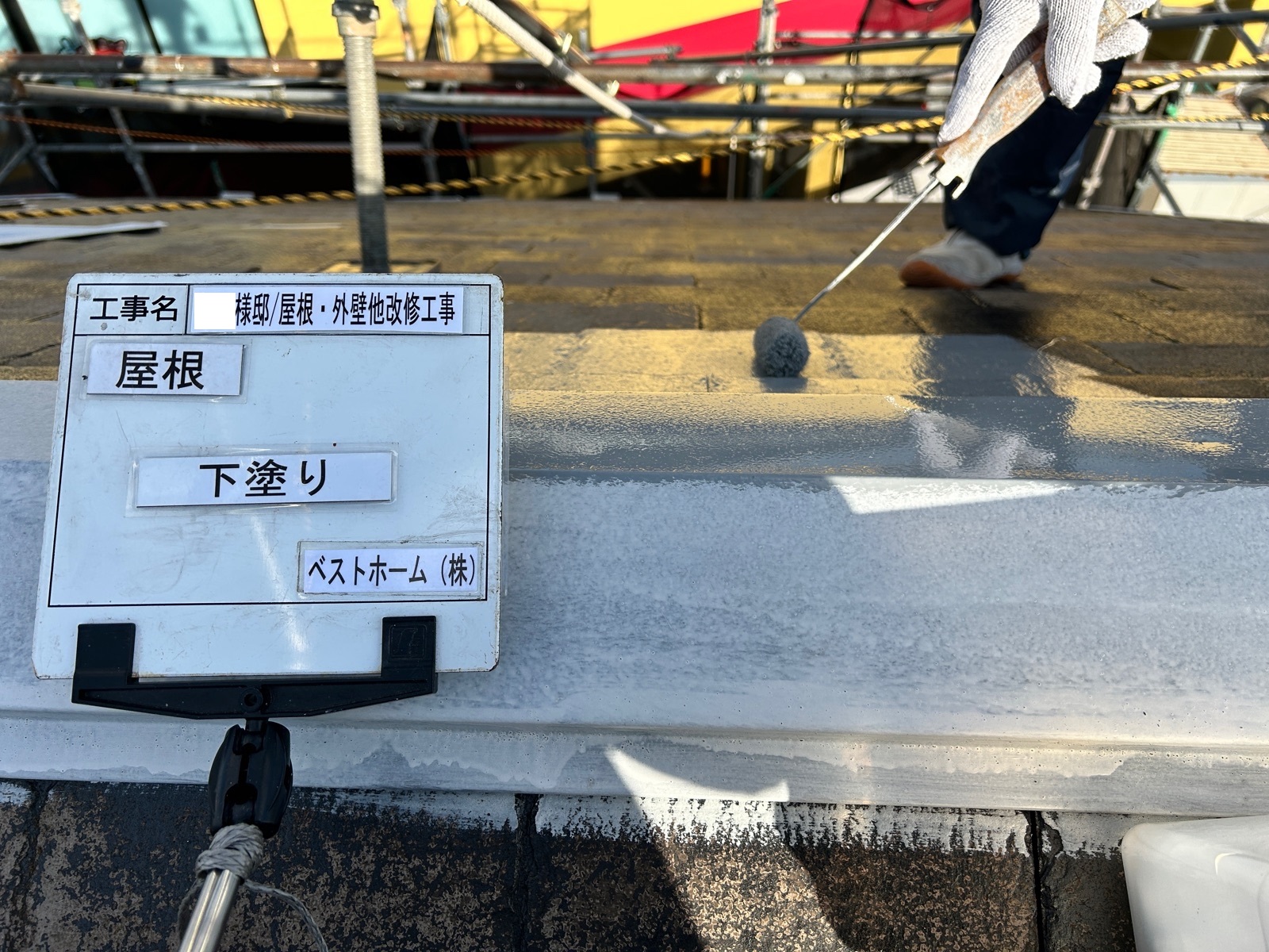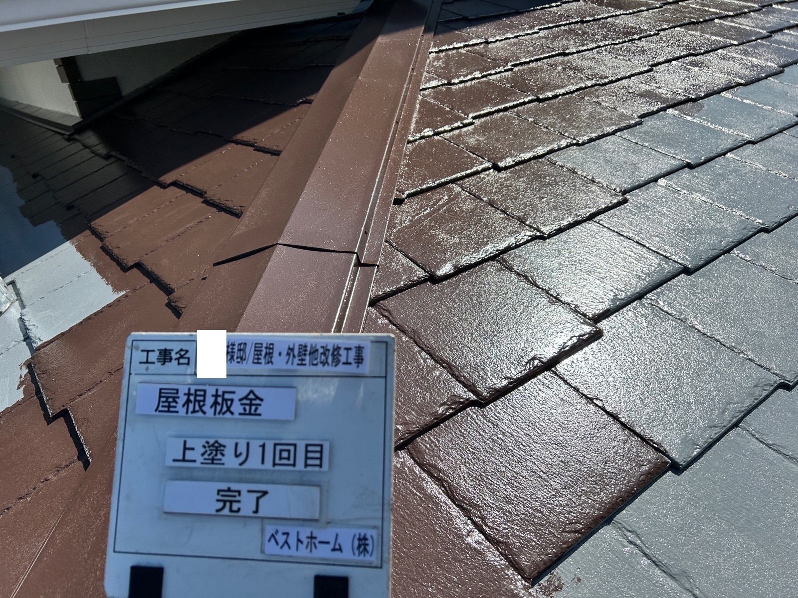 ●●屋根下塗り2回目、中間検査、屋根上塗り1回目(途中)