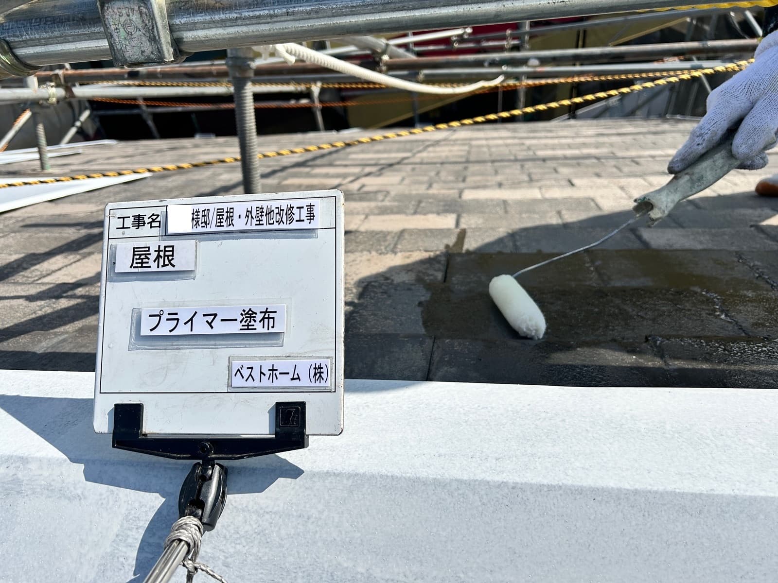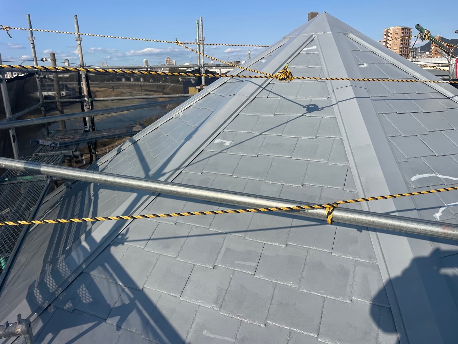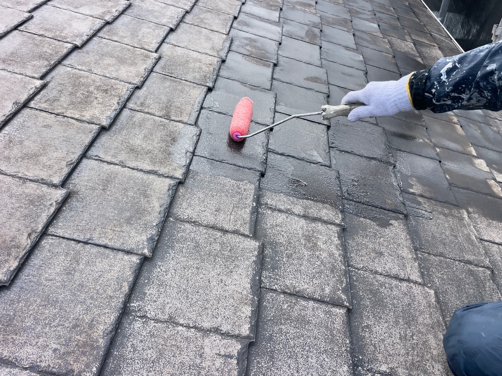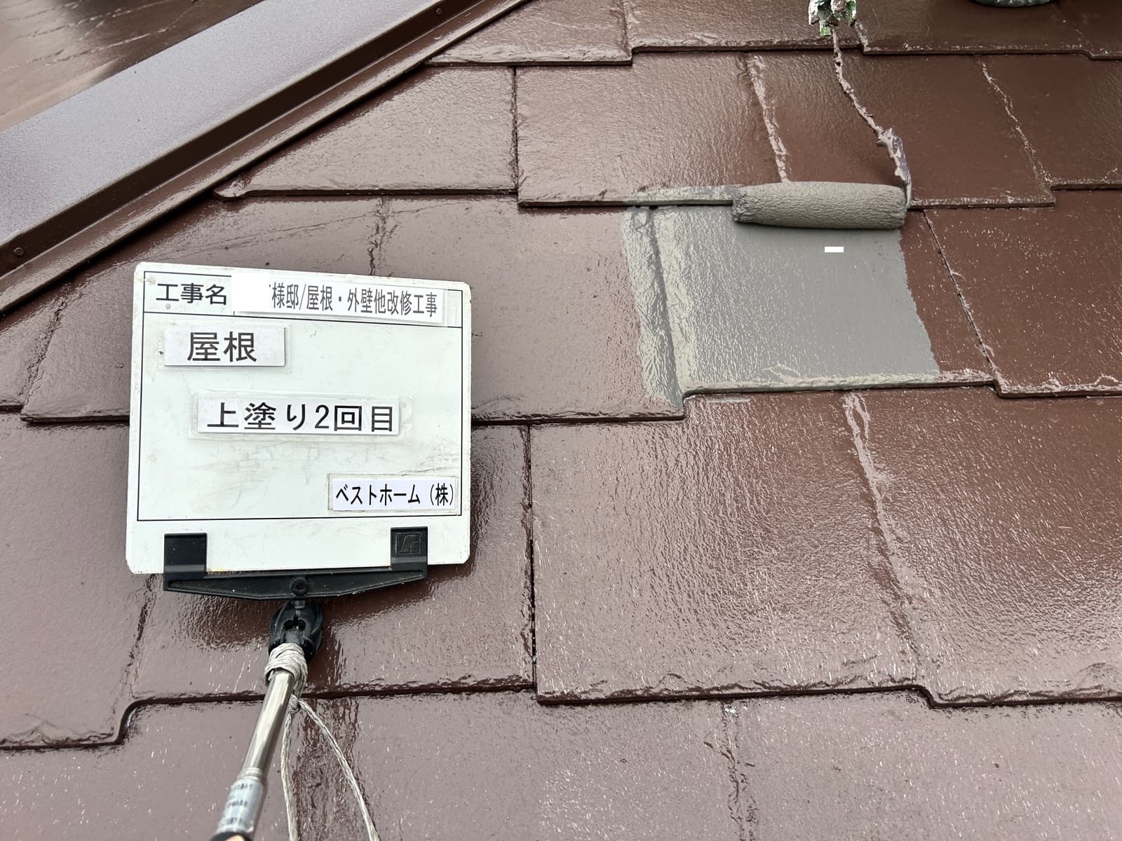 ●●屋根下塗り2回目、中間検査、屋根上塗り1回目(途中)