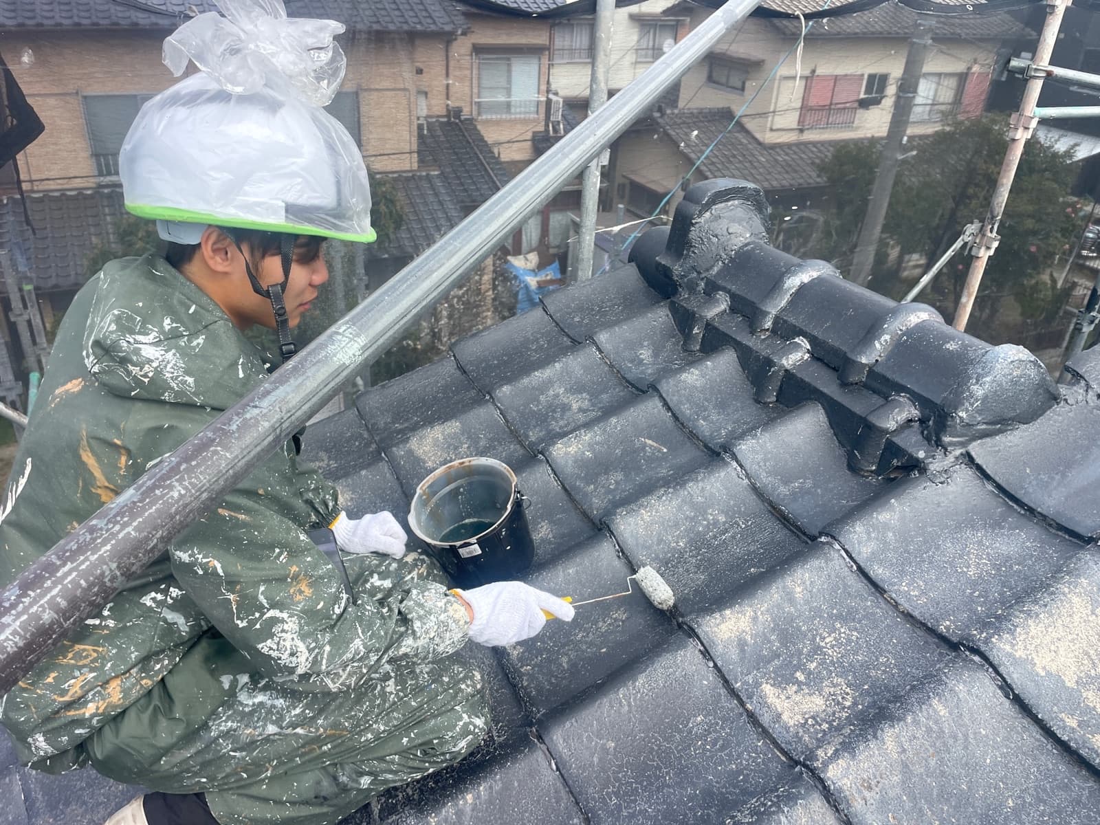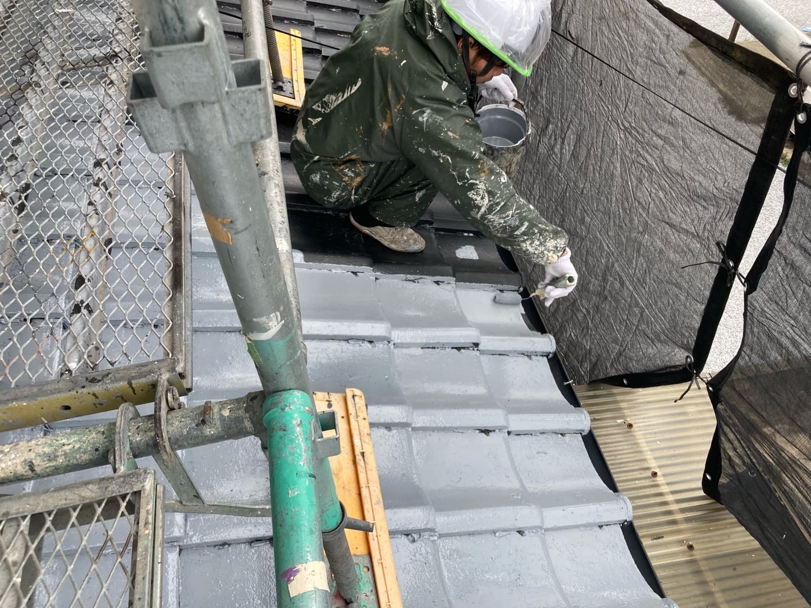 本日は下屋根バリアー・下塗り1回目、大屋根下塗り2回目をさせて頂いております。