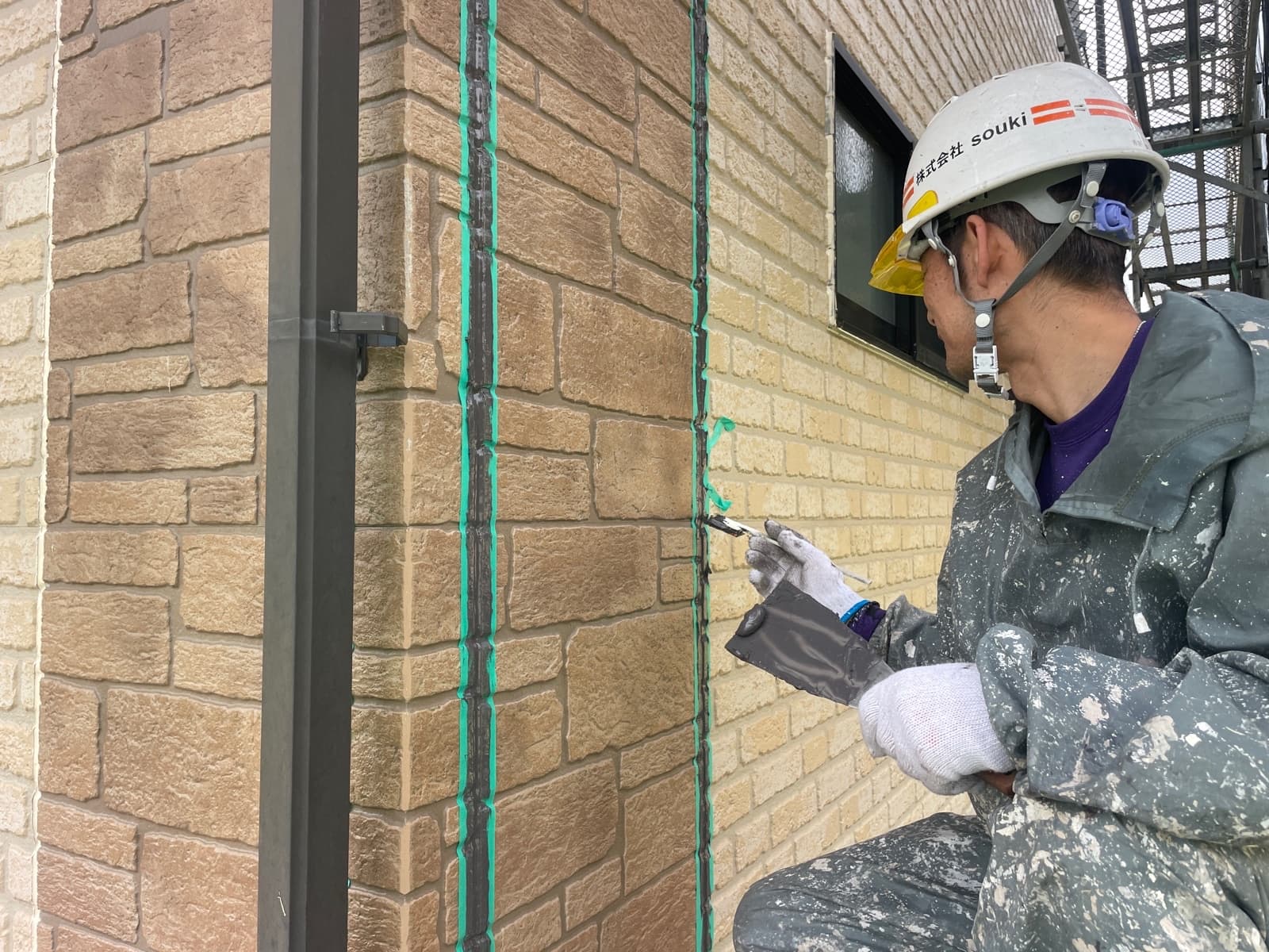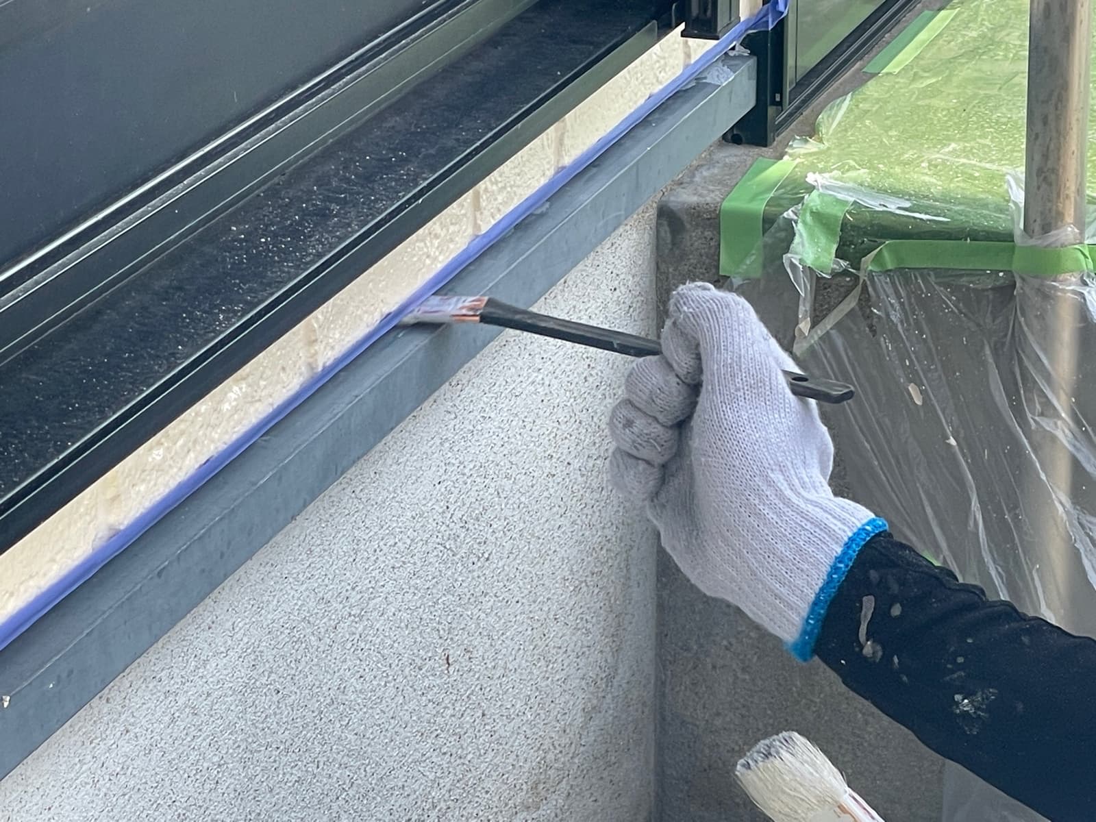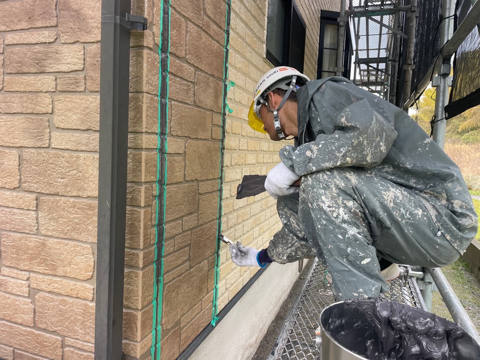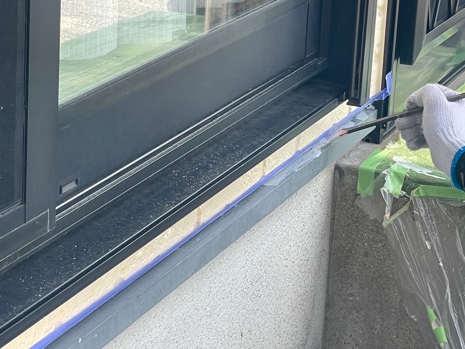 本日は外壁上塗り2回目、付帯部塗装をさせて頂いております。
