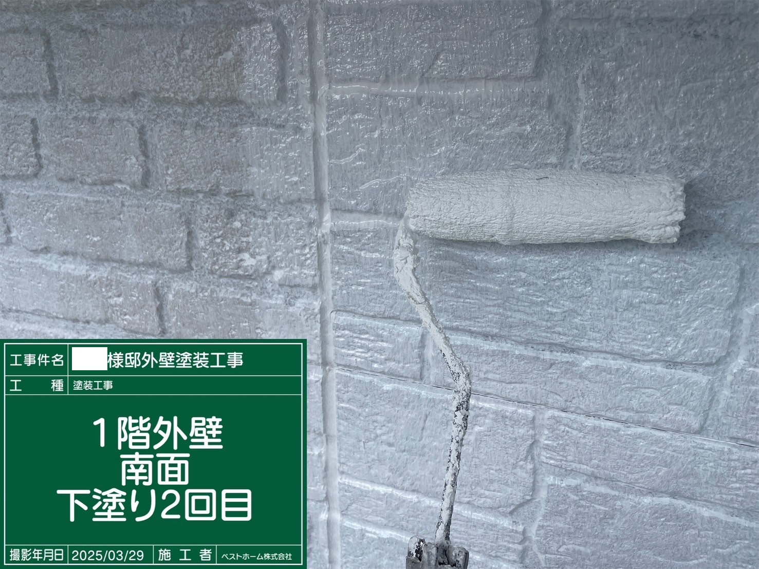 本日は外壁下塗り1回目~2回目(途中)をさせて頂いております。