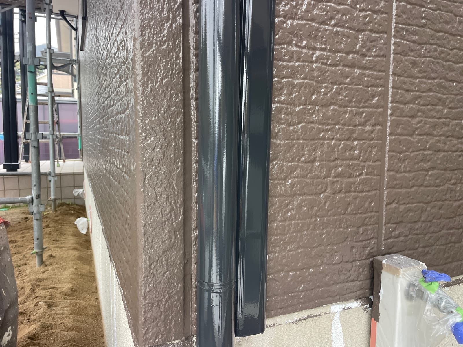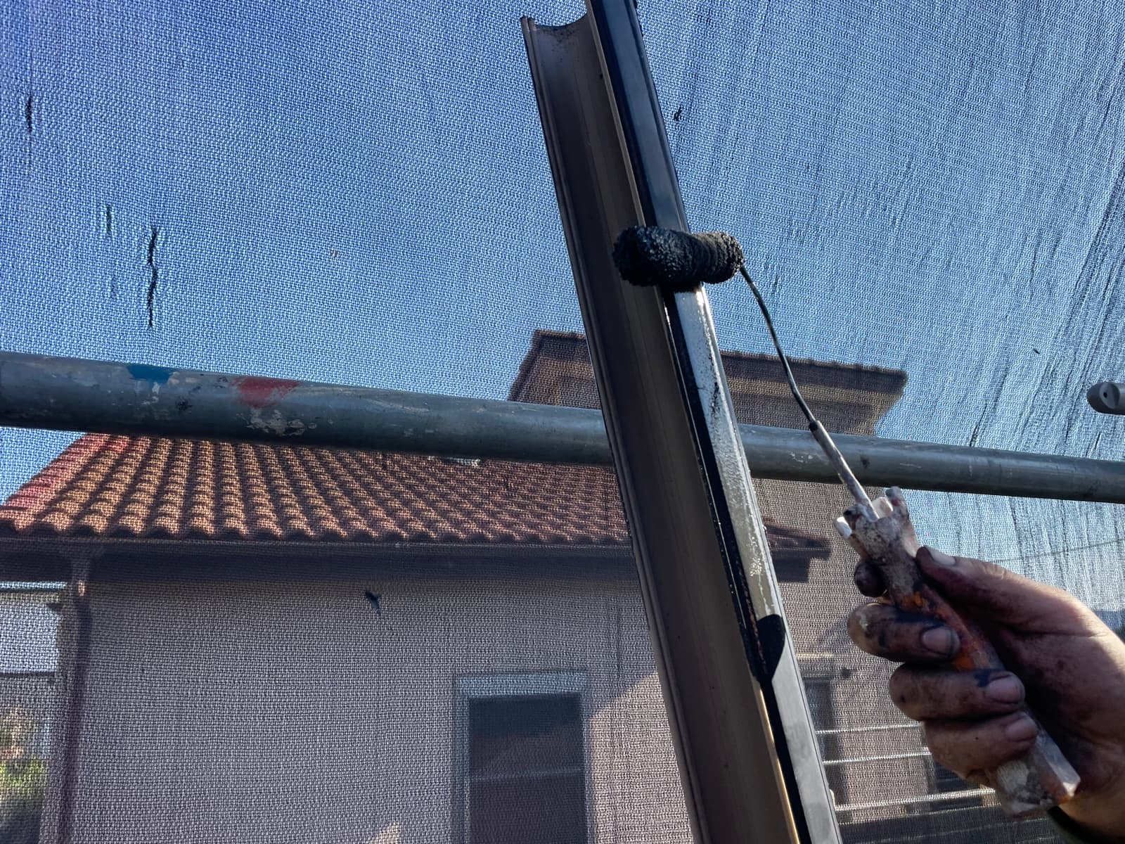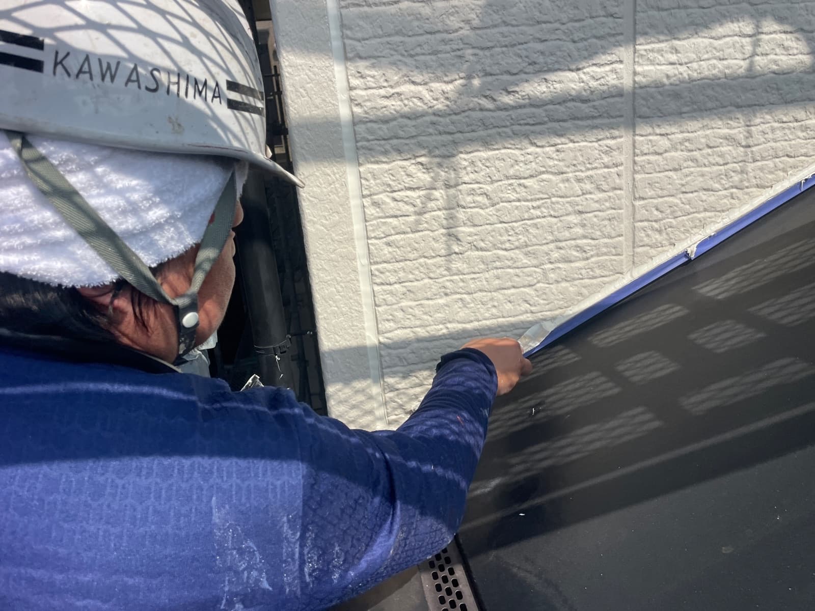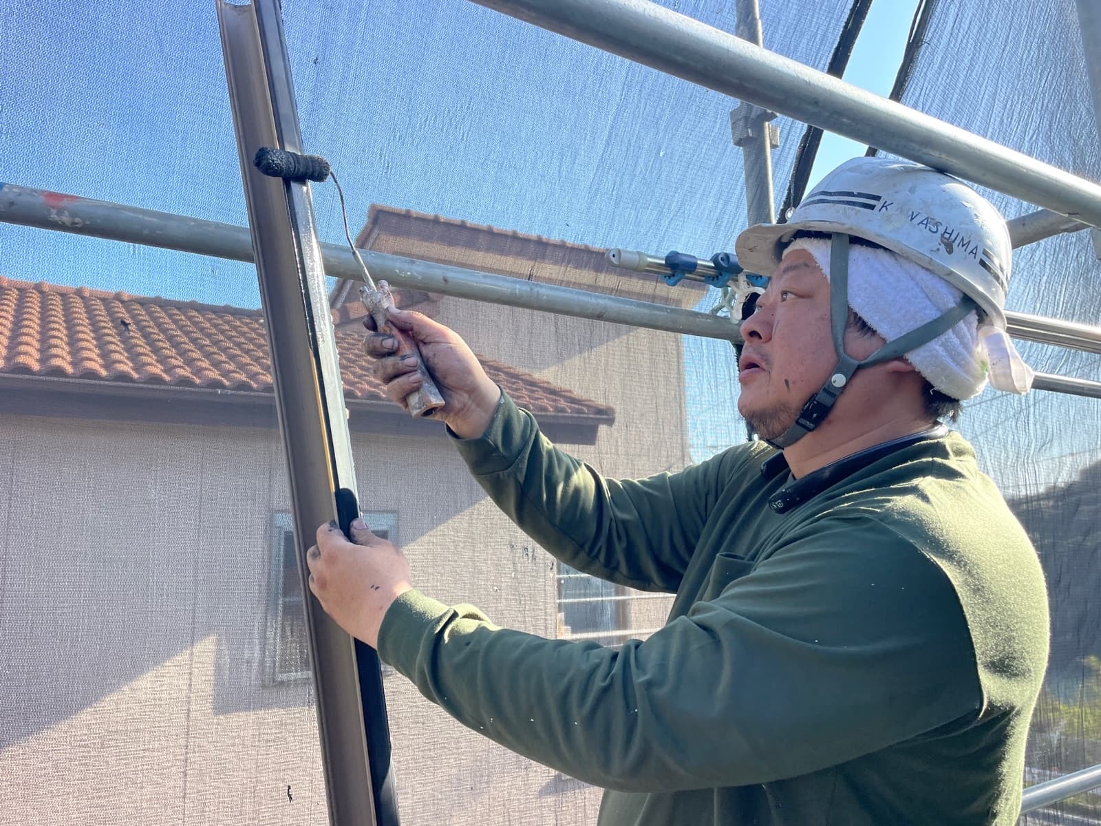 本日は外壁上塗り2回目、付帯部塗装、屋根上塗り1回目をさせて頂いております。