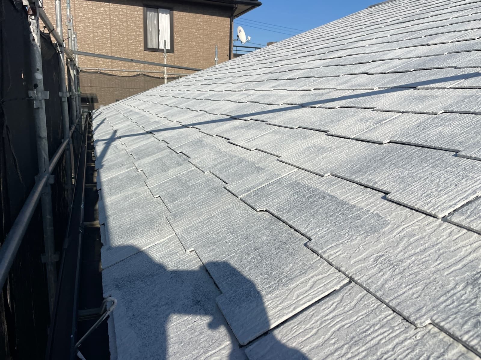 本日は外壁上塗り1回目、付帯部塗装、屋根下塗り2回目、中間検査をさせて頂いております。