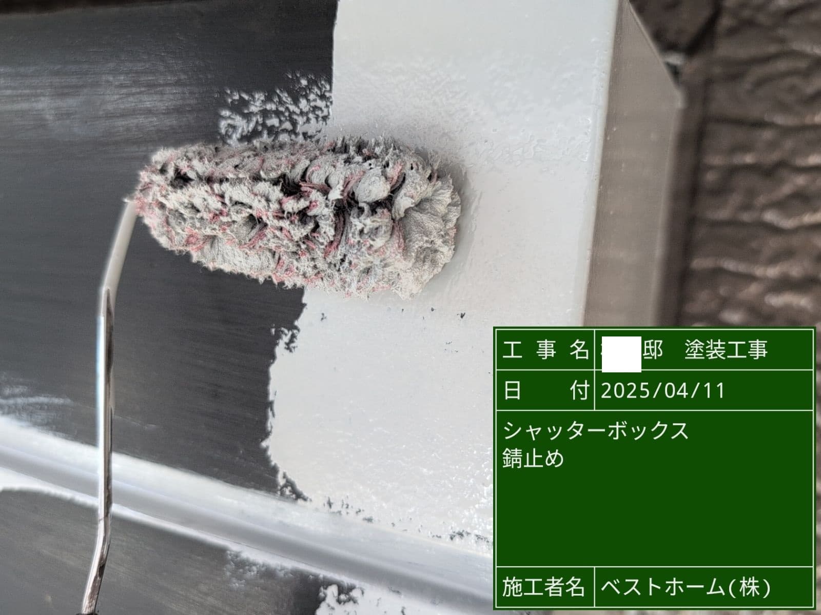 ●●外壁下塗り1回目、鉄部錆止め、軒天塗装