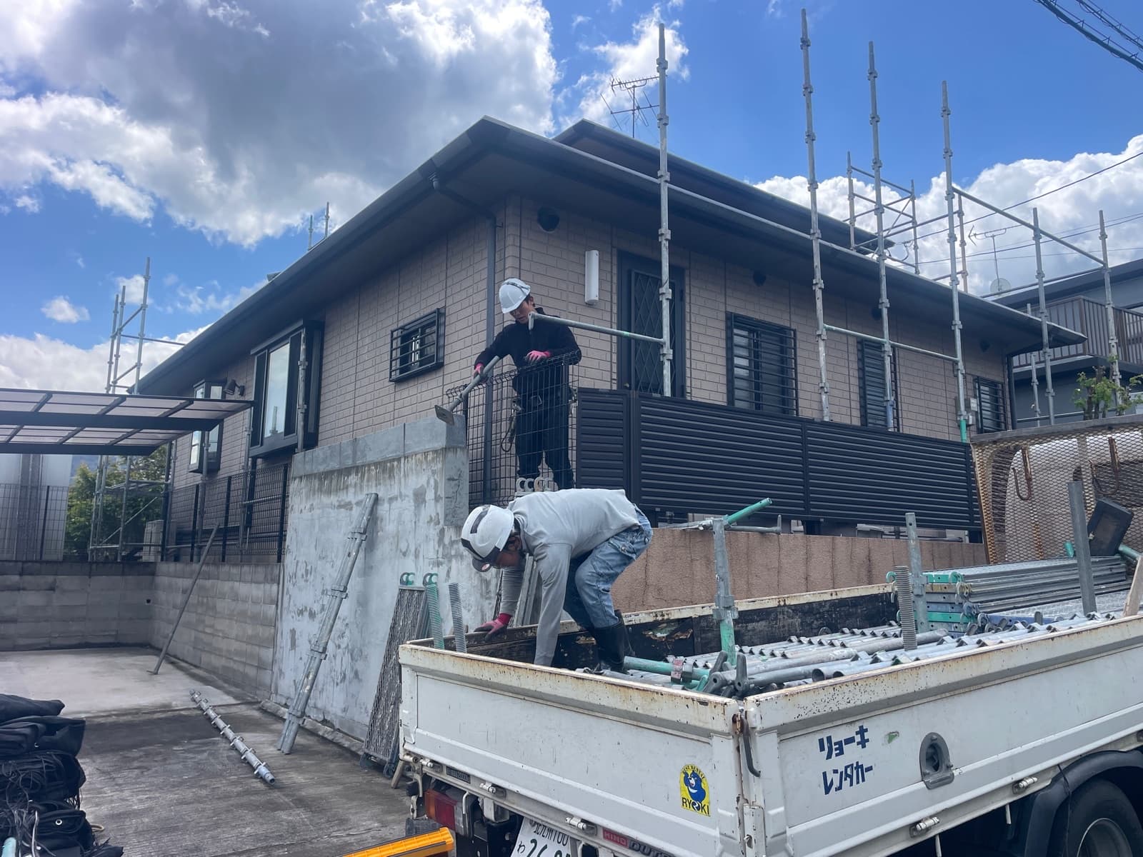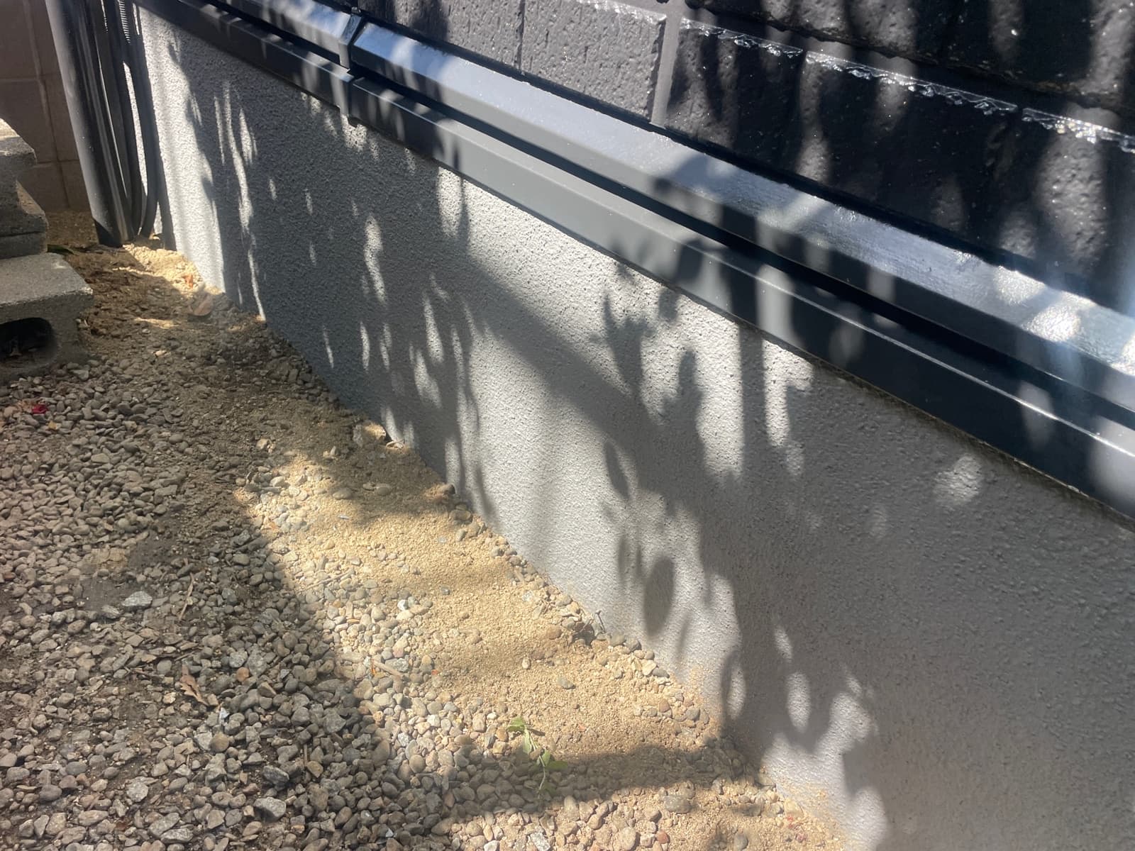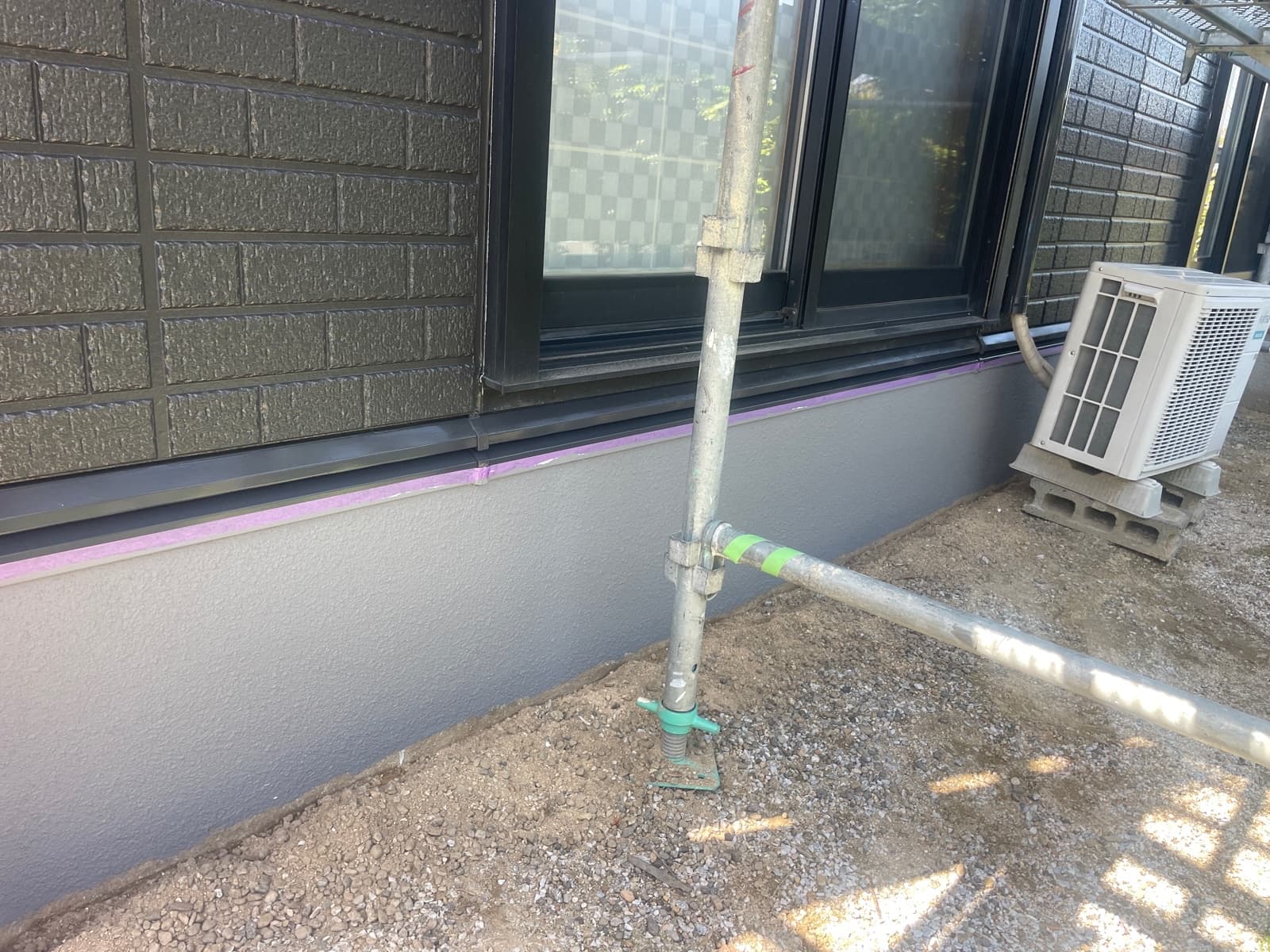 本日は塀塗装、基礎塗装、外壁仕上げ、足場解体前検査などをさせて頂いております。