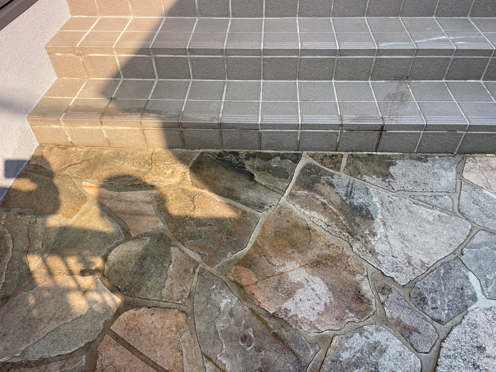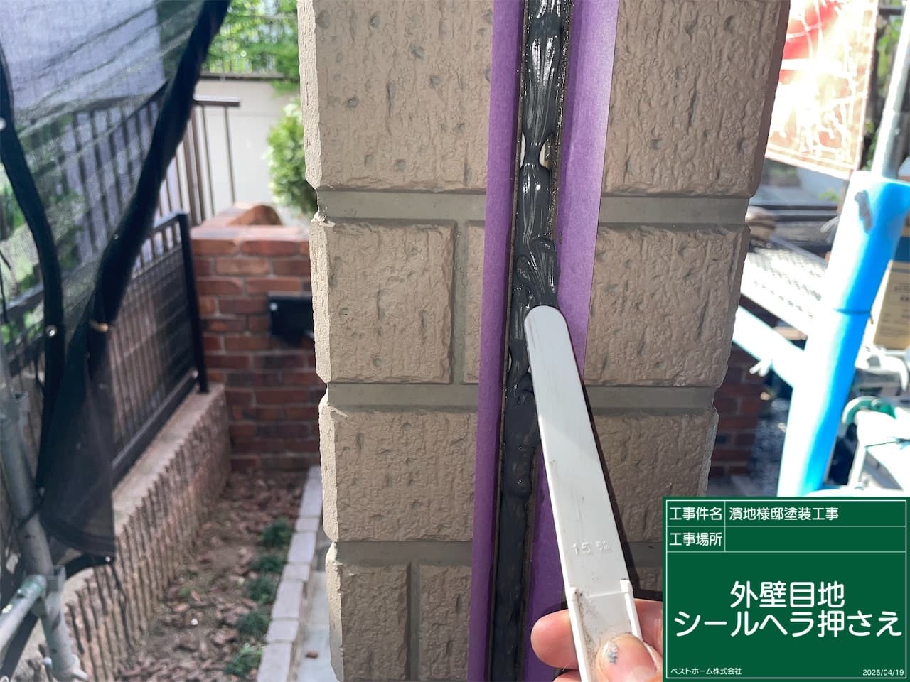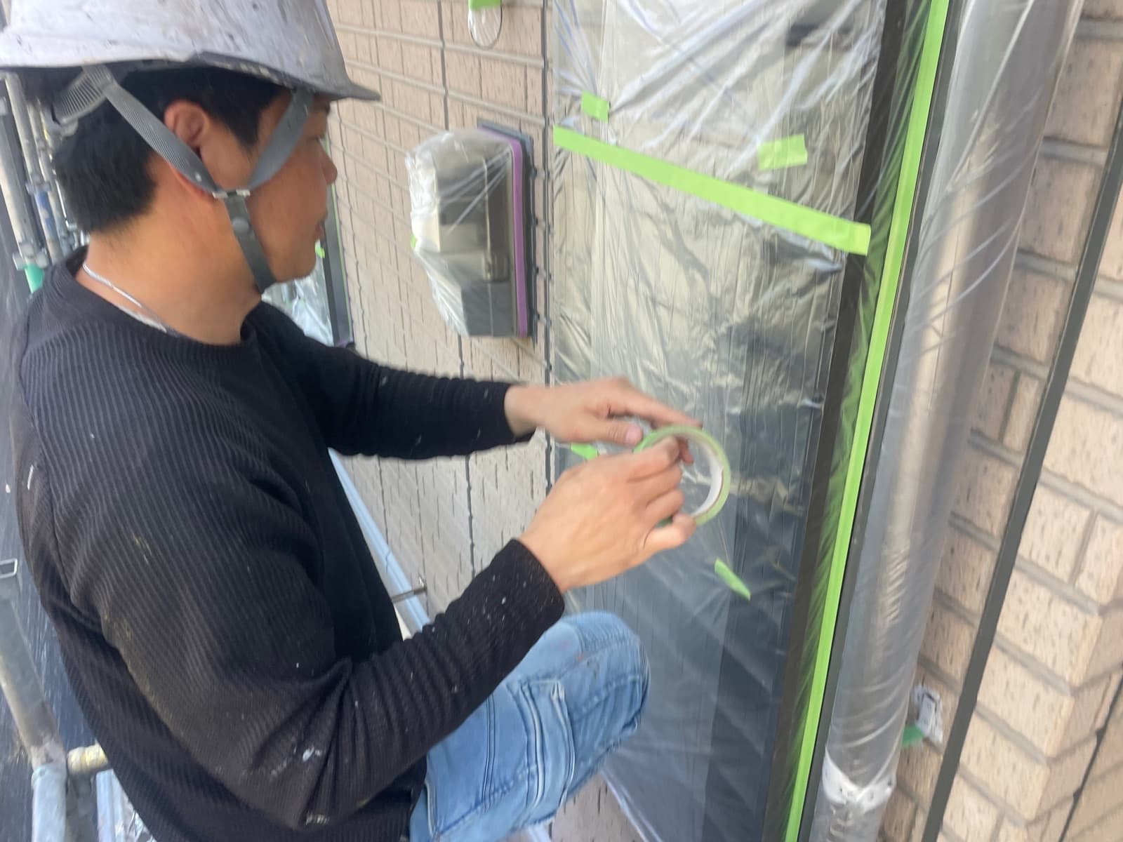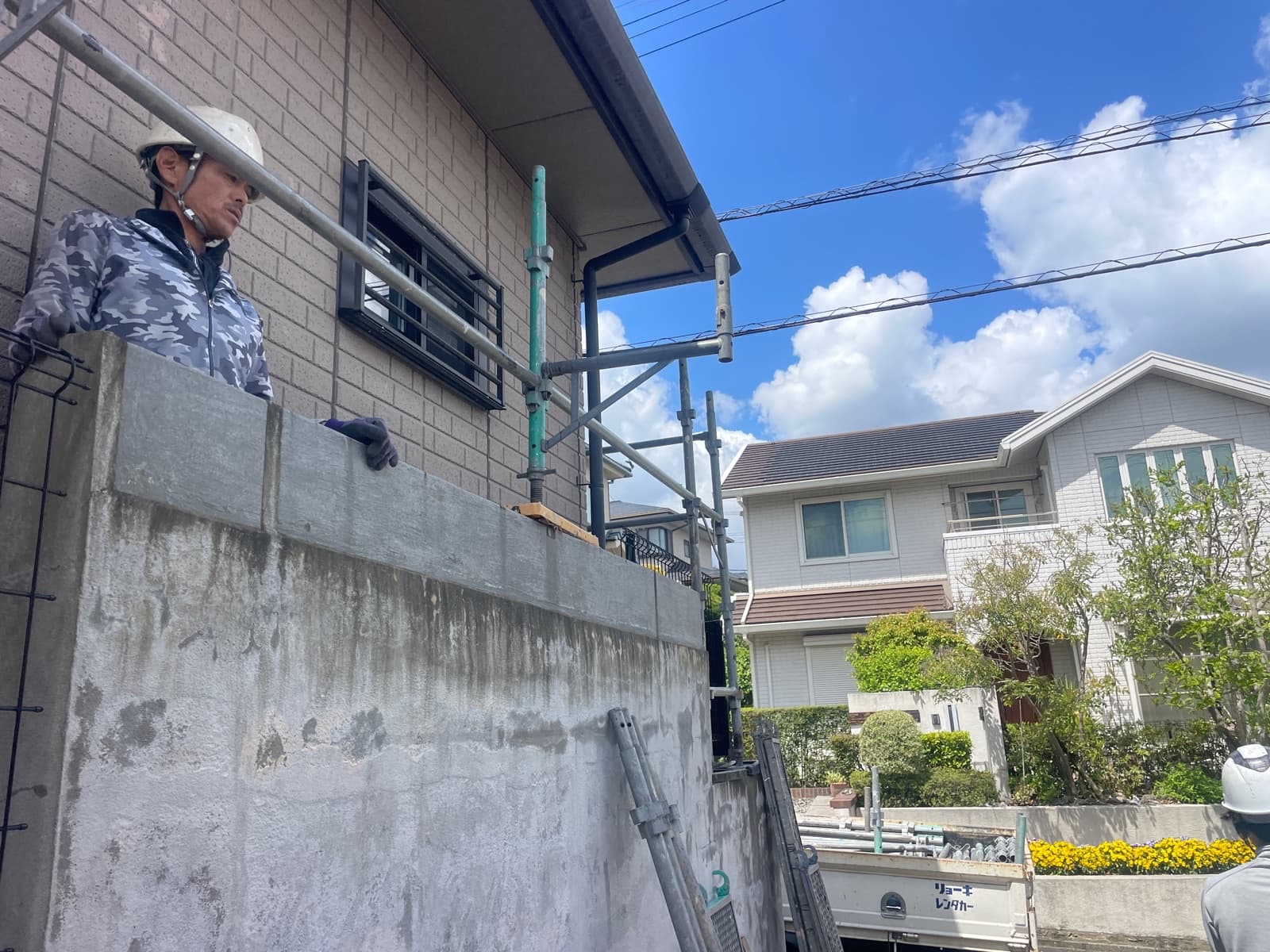本日は塀塗装、基礎塗装、外壁仕上げ、足場解体前検査などをさせて頂いております。