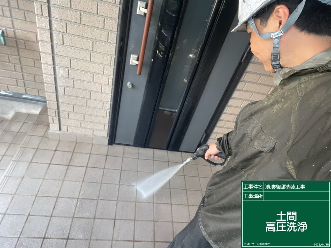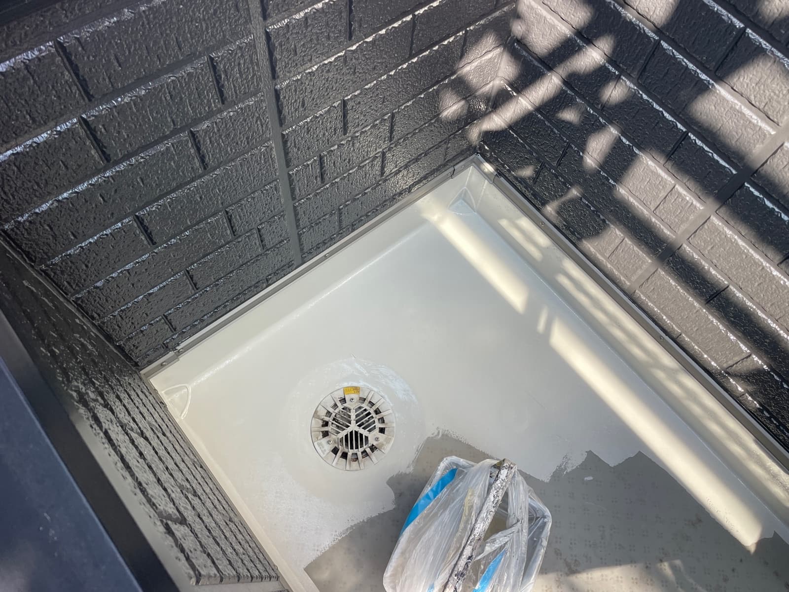 ●●塀塗装、基礎塗装、外壁仕上げ、足場解体前検査