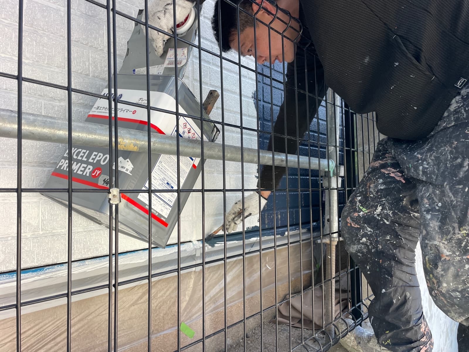 本日は軒天塗装、外壁下塗り2回目、中間検査をさせて頂いております。