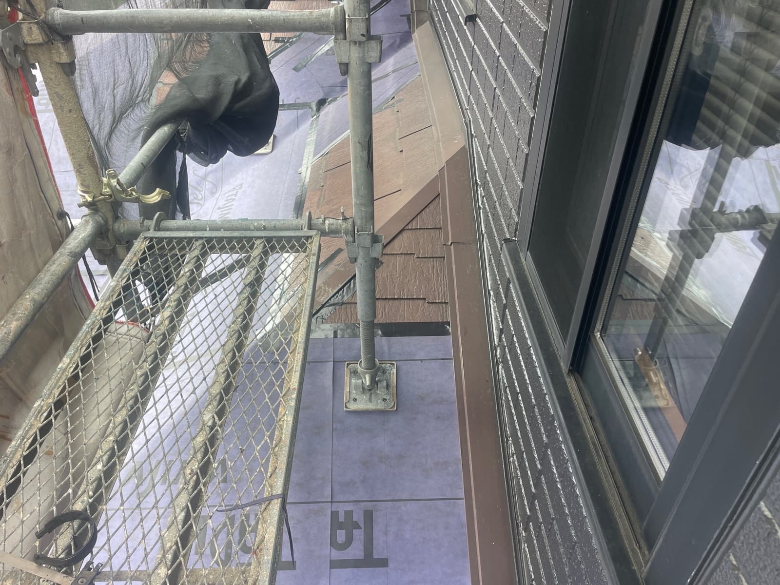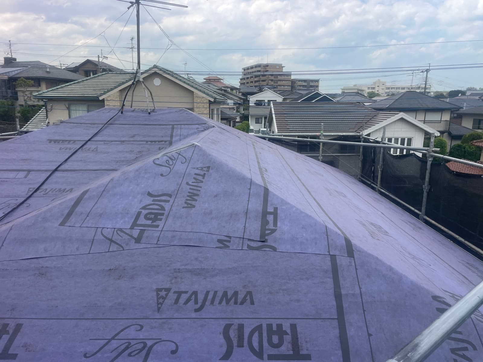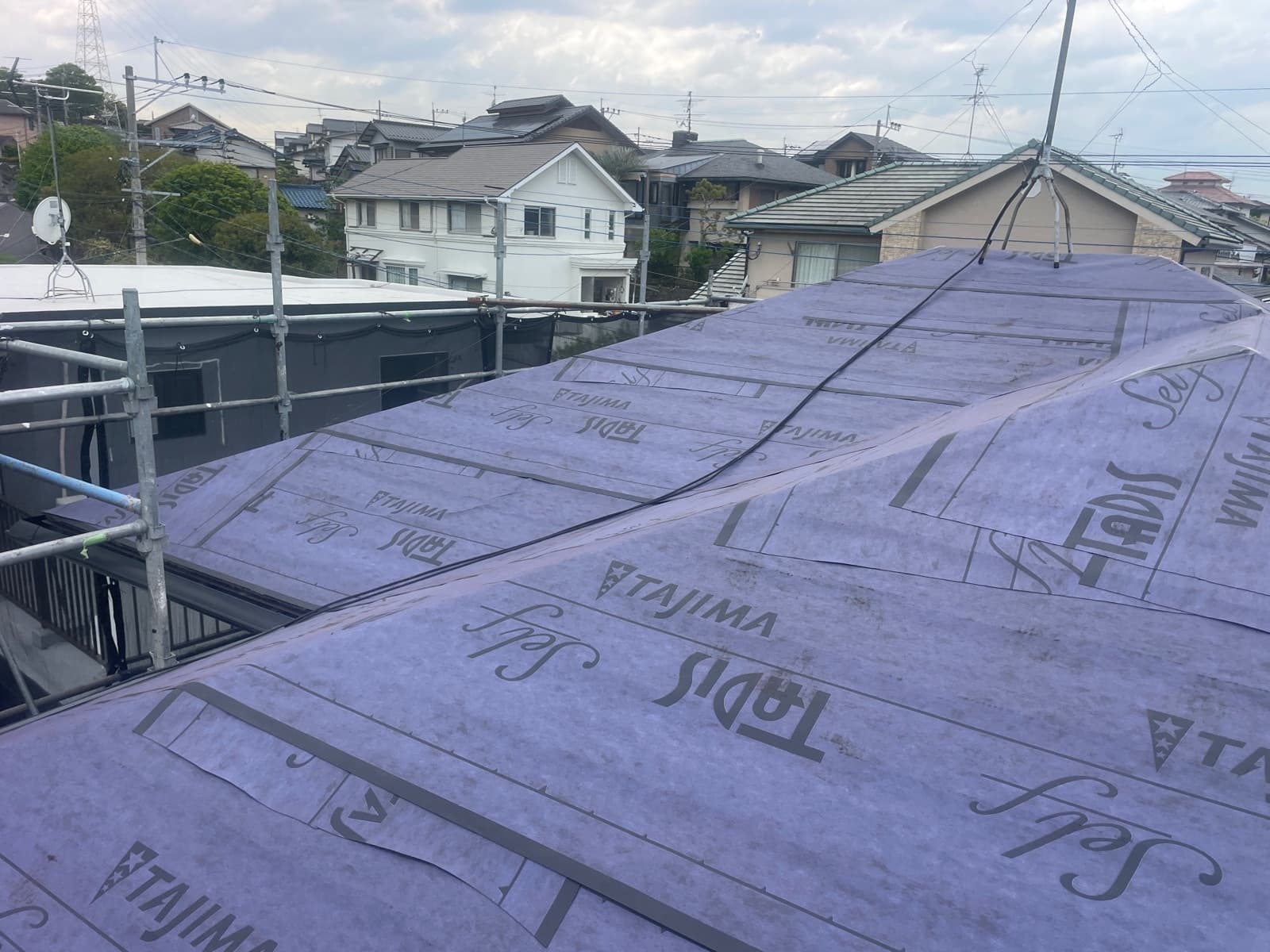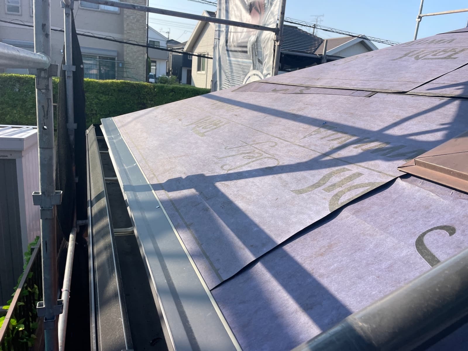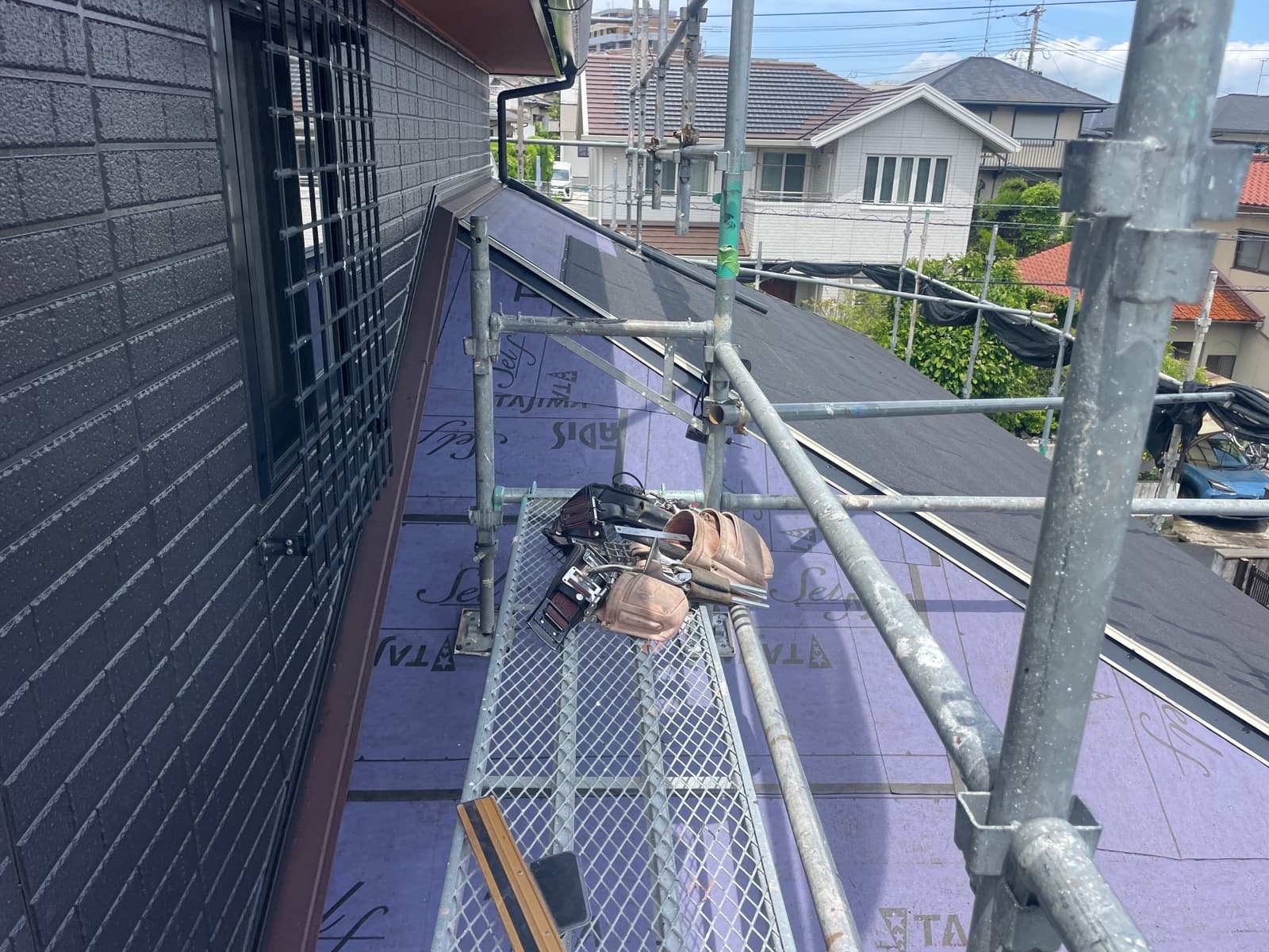 本日は付帯部塗装、屋根ルーフィング貼り(途中まで)をさせて頂いております。