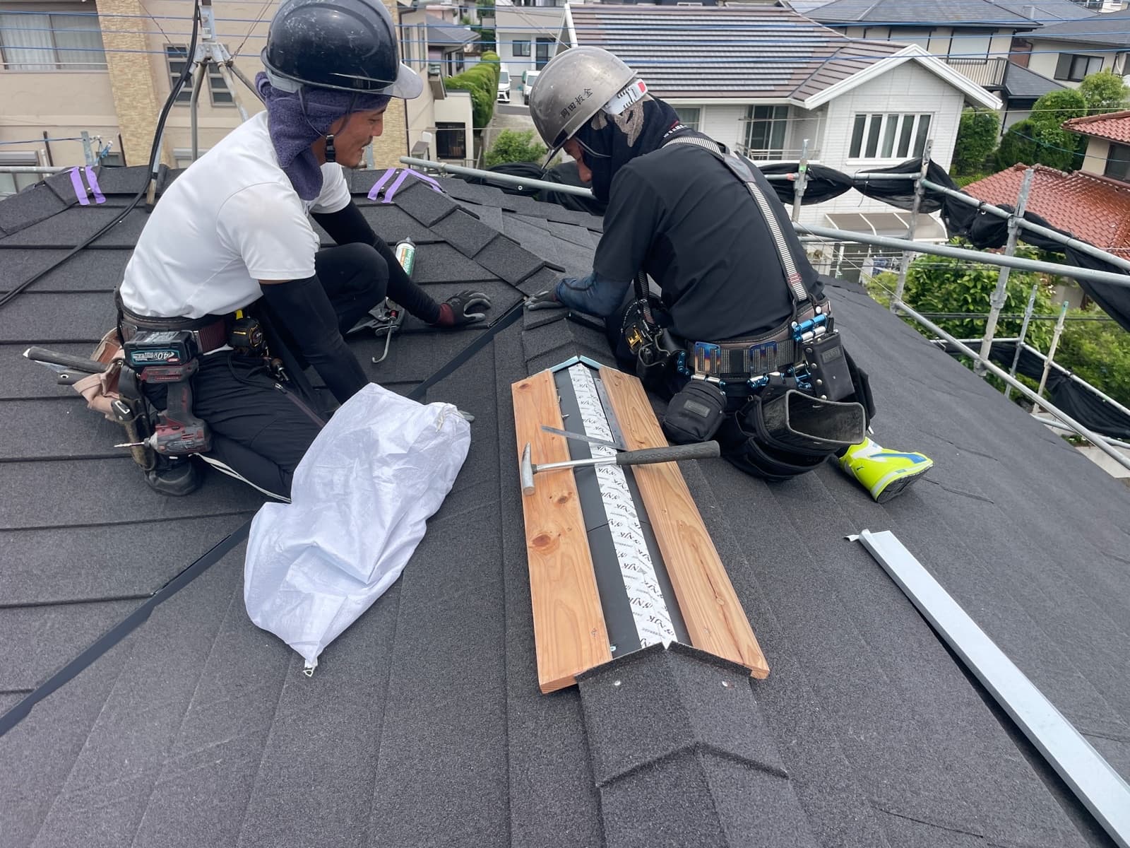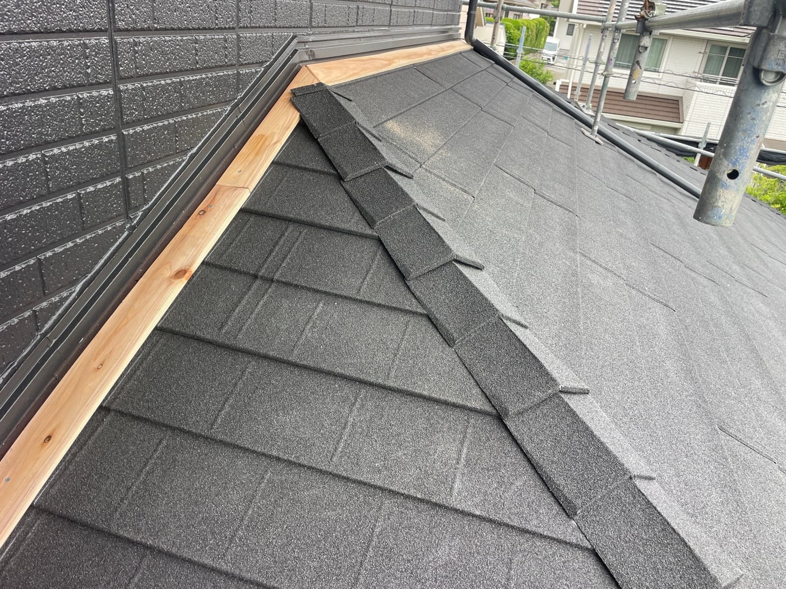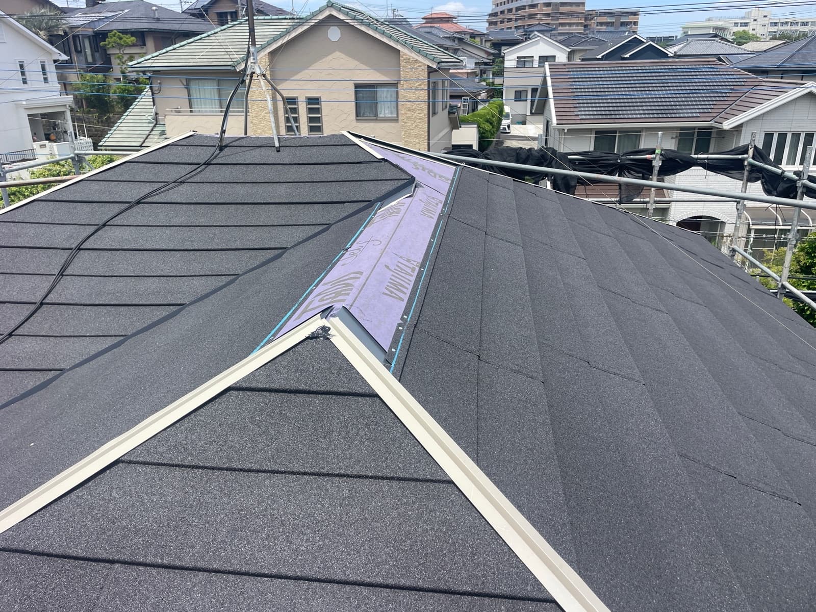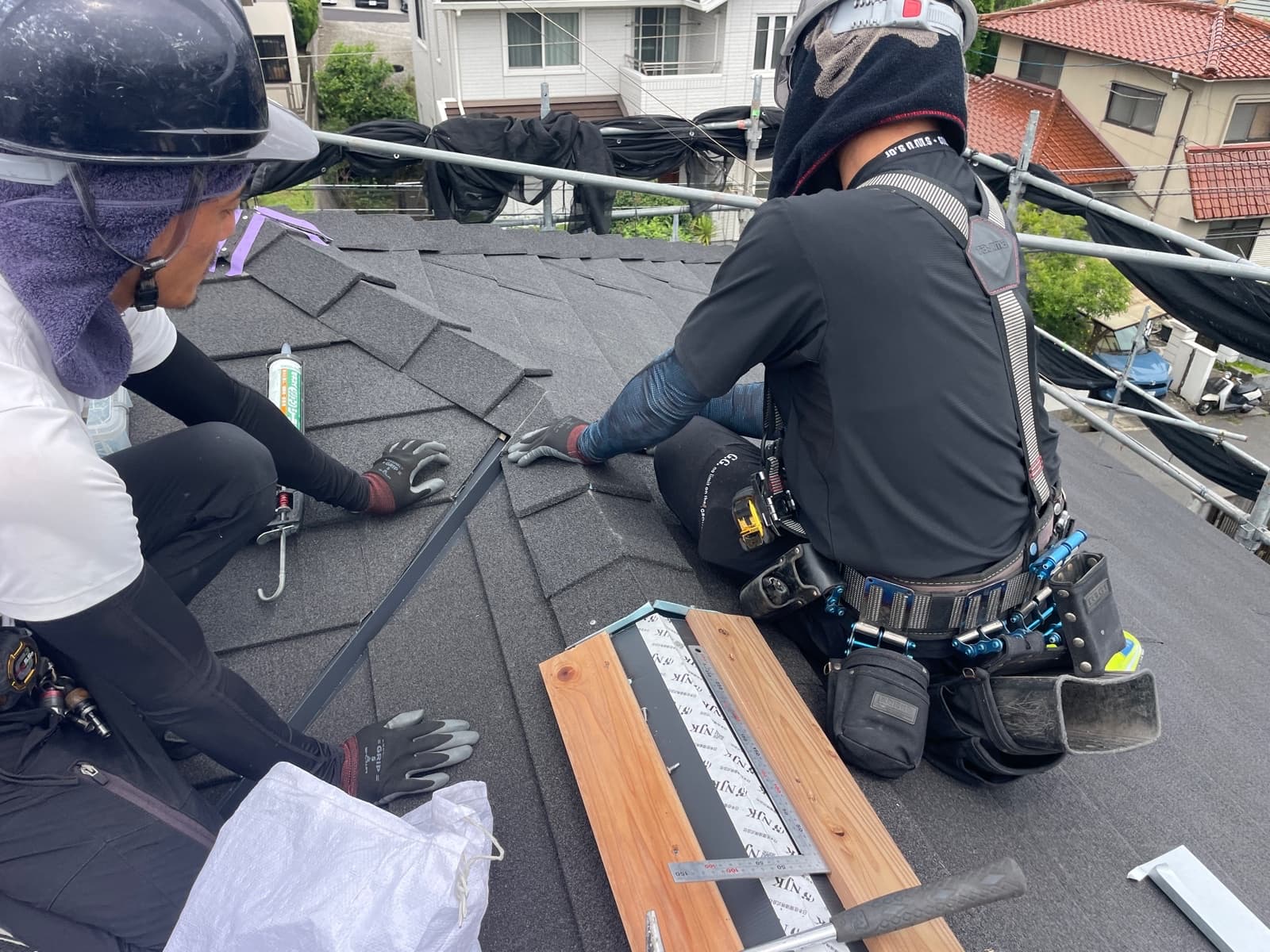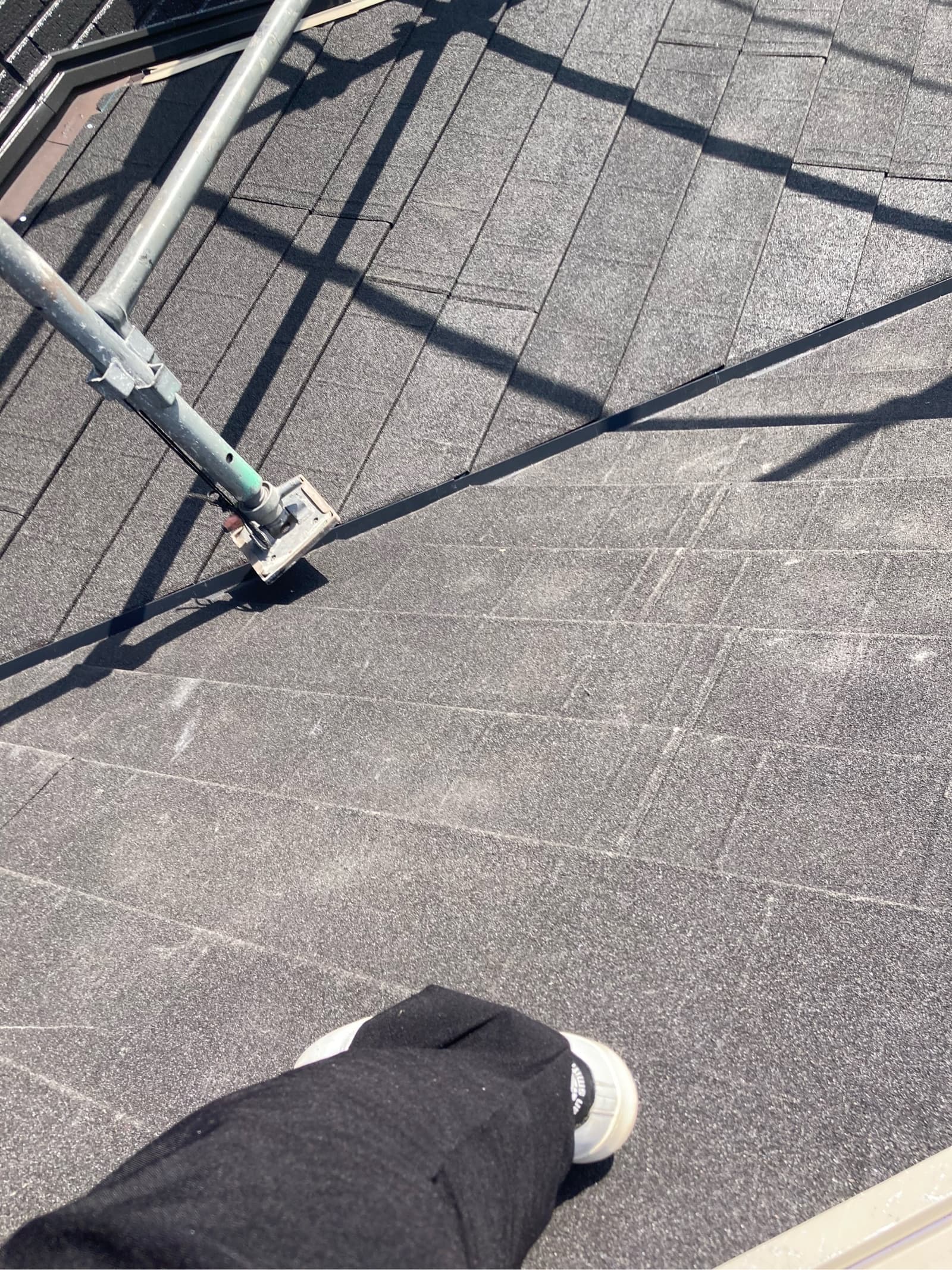 本日は付帯部塗装、屋根ルーフィング貼り(途中まで)をさせて頂いております。