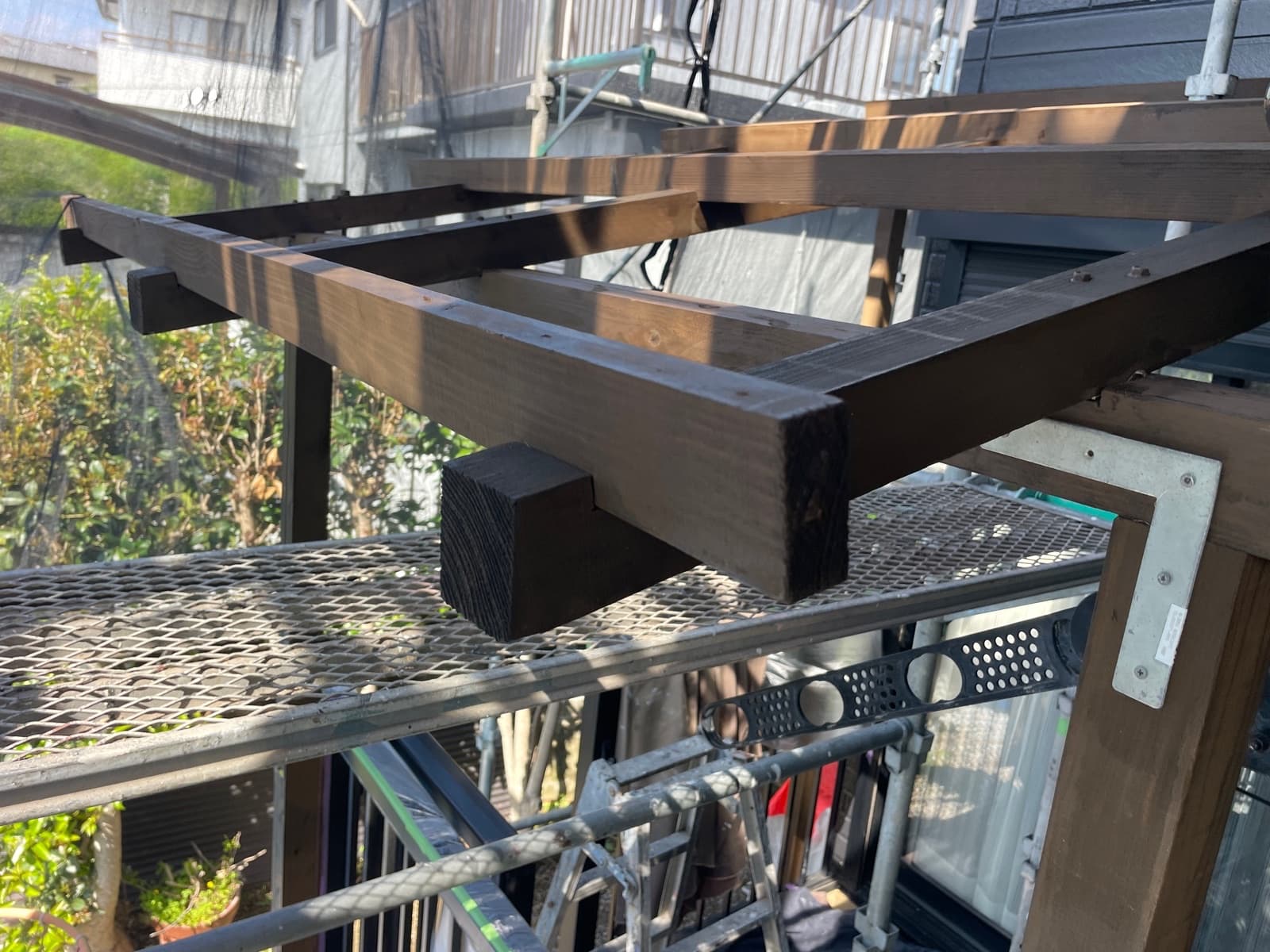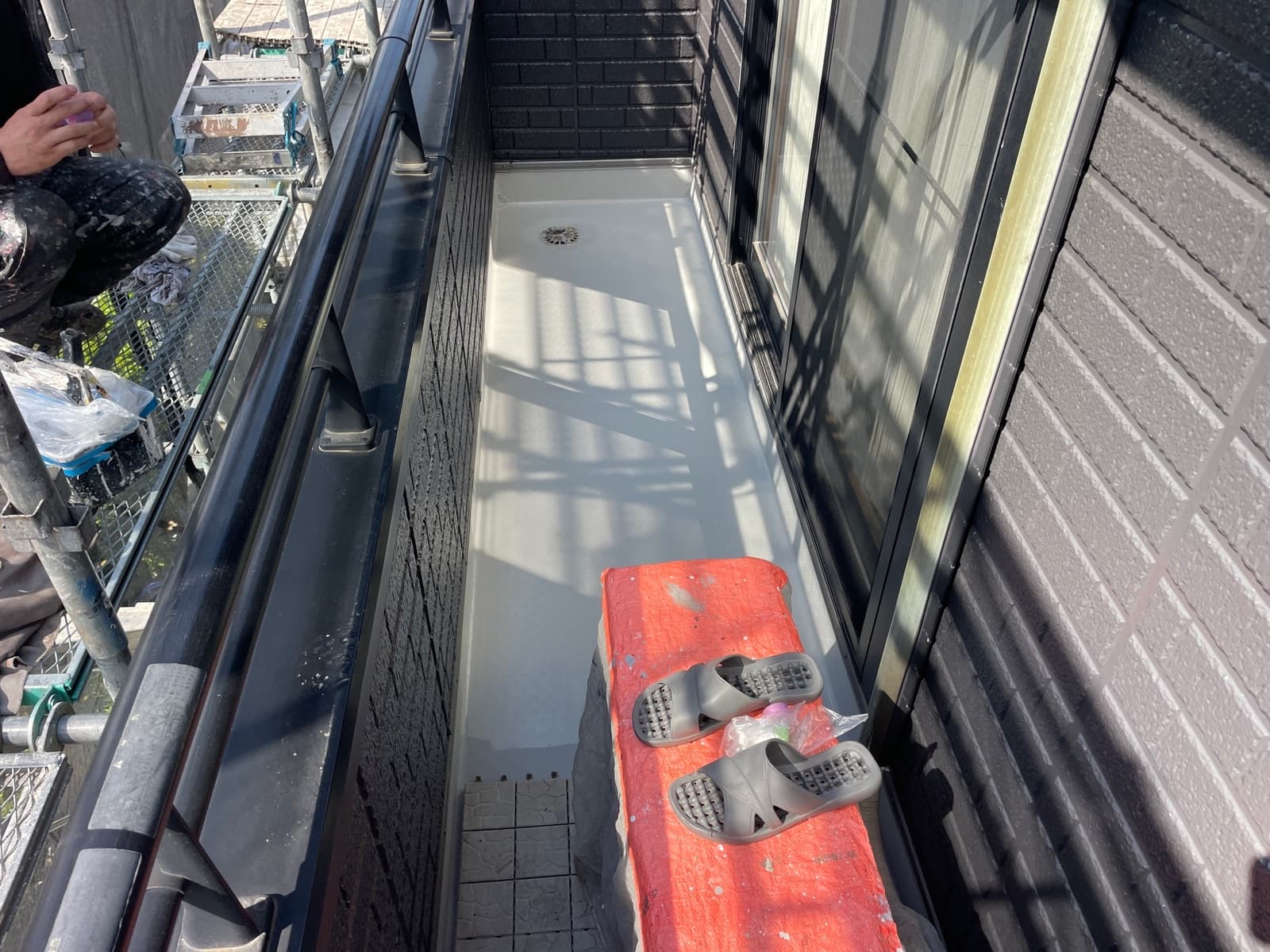 本日は手直し、ベランダ塗装、屋根カバー工事などをさせて頂いております。