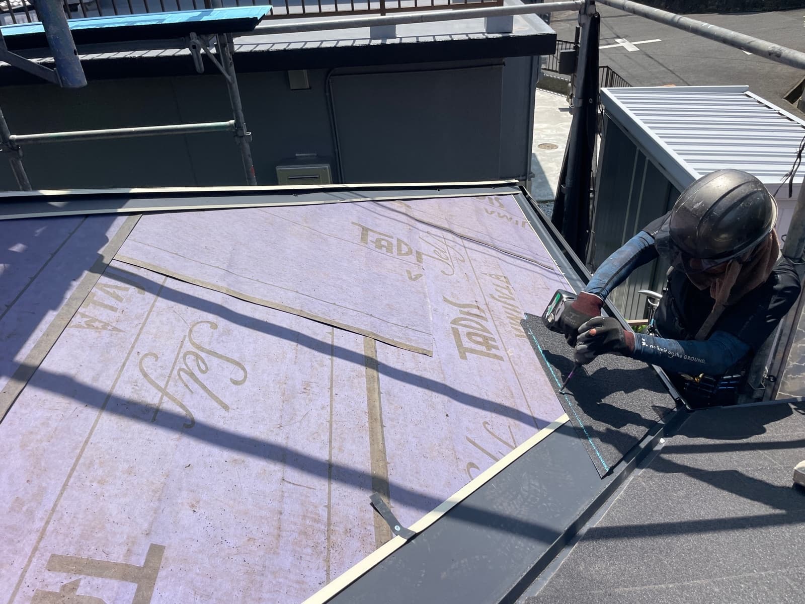 ●●付帯部塗装、屋根ルーフィング貼り(途中まで)