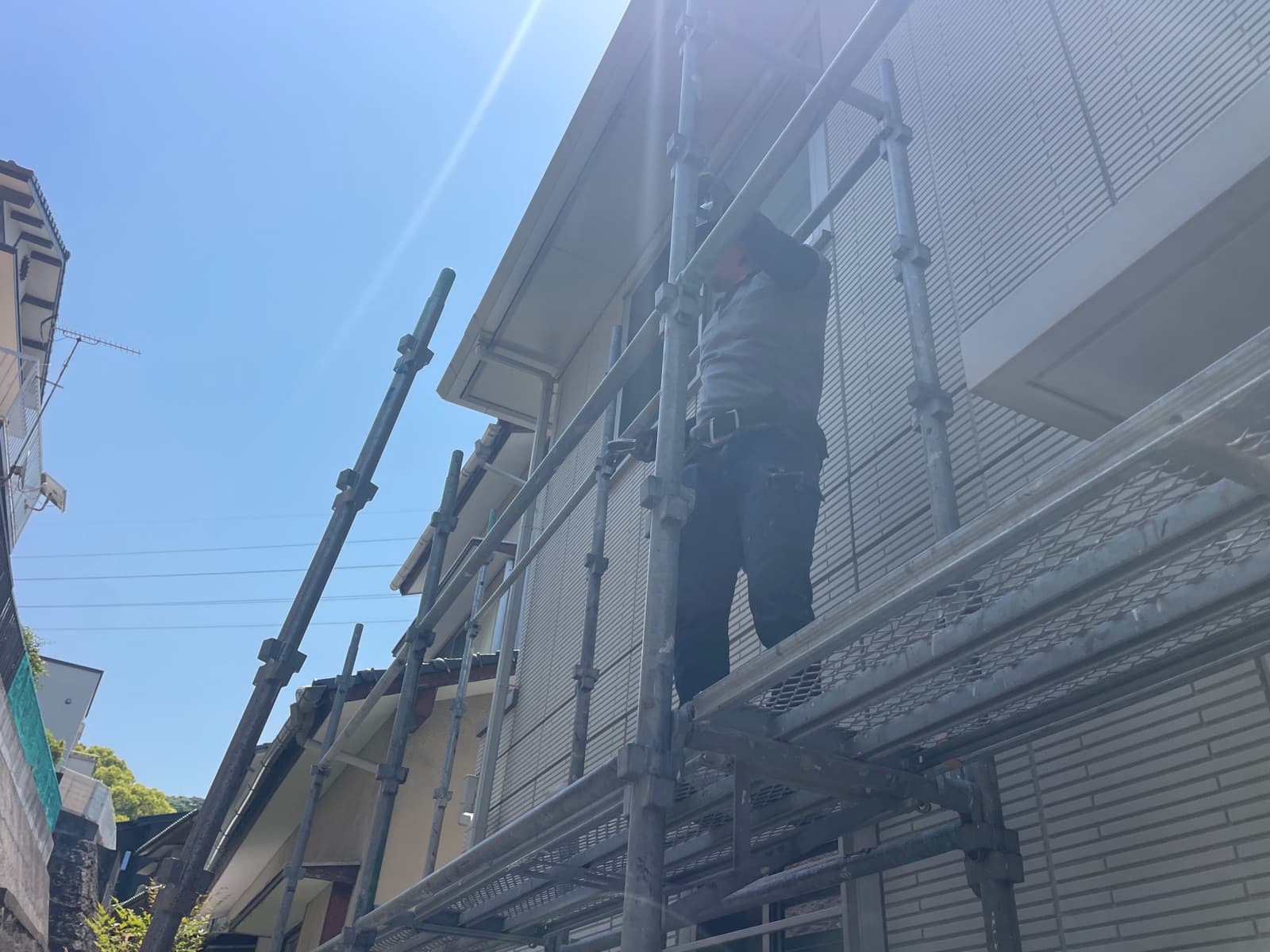 本日は錆止め、屋根下塗り1回目をさせて頂いております。
