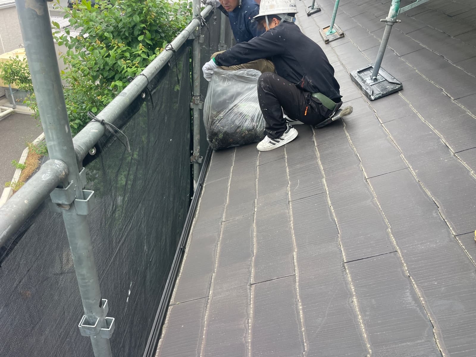 本日は鉄部のケレン、錆止め、樋の詰まり掃除をさせて頂いております。