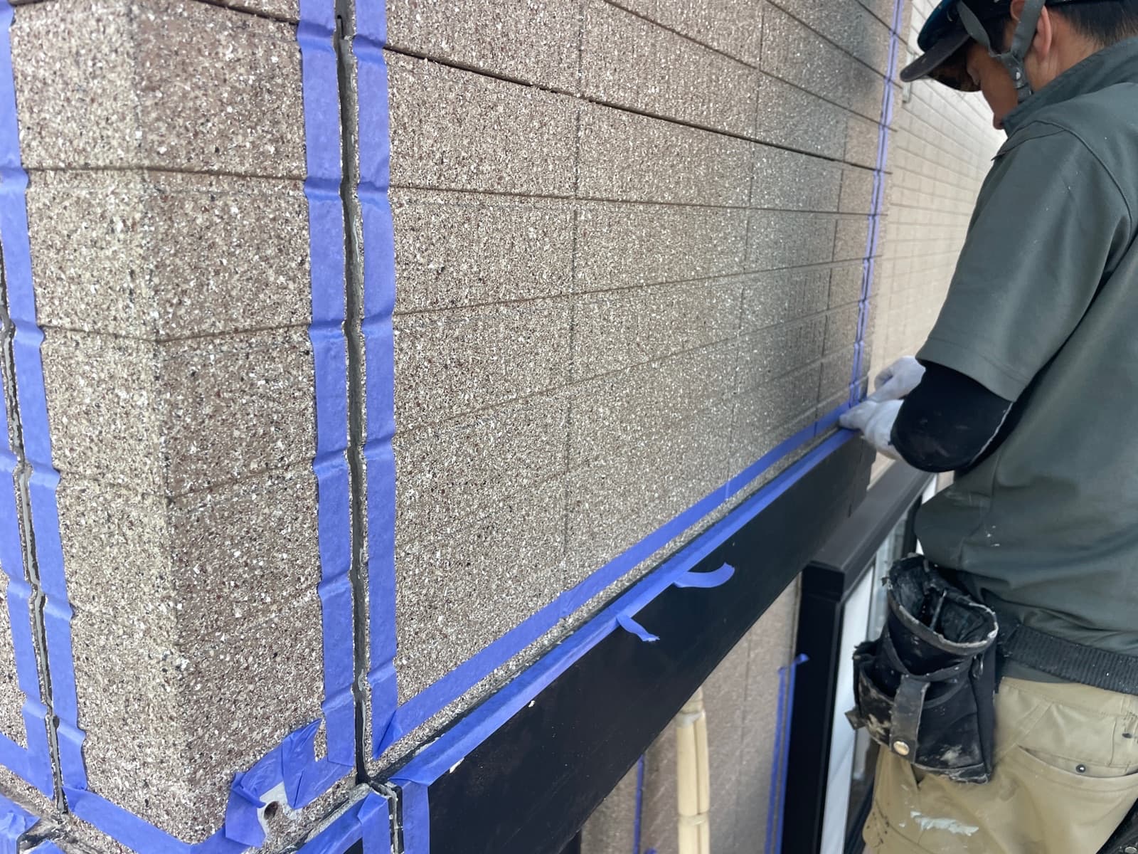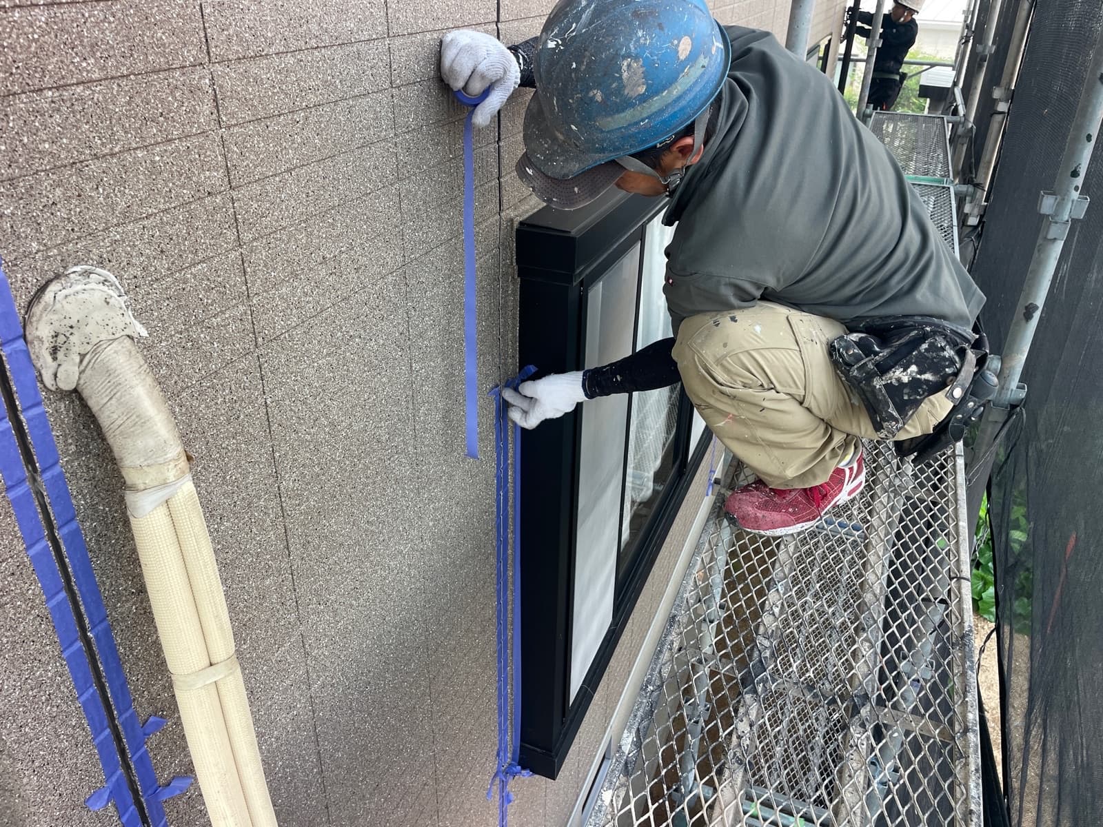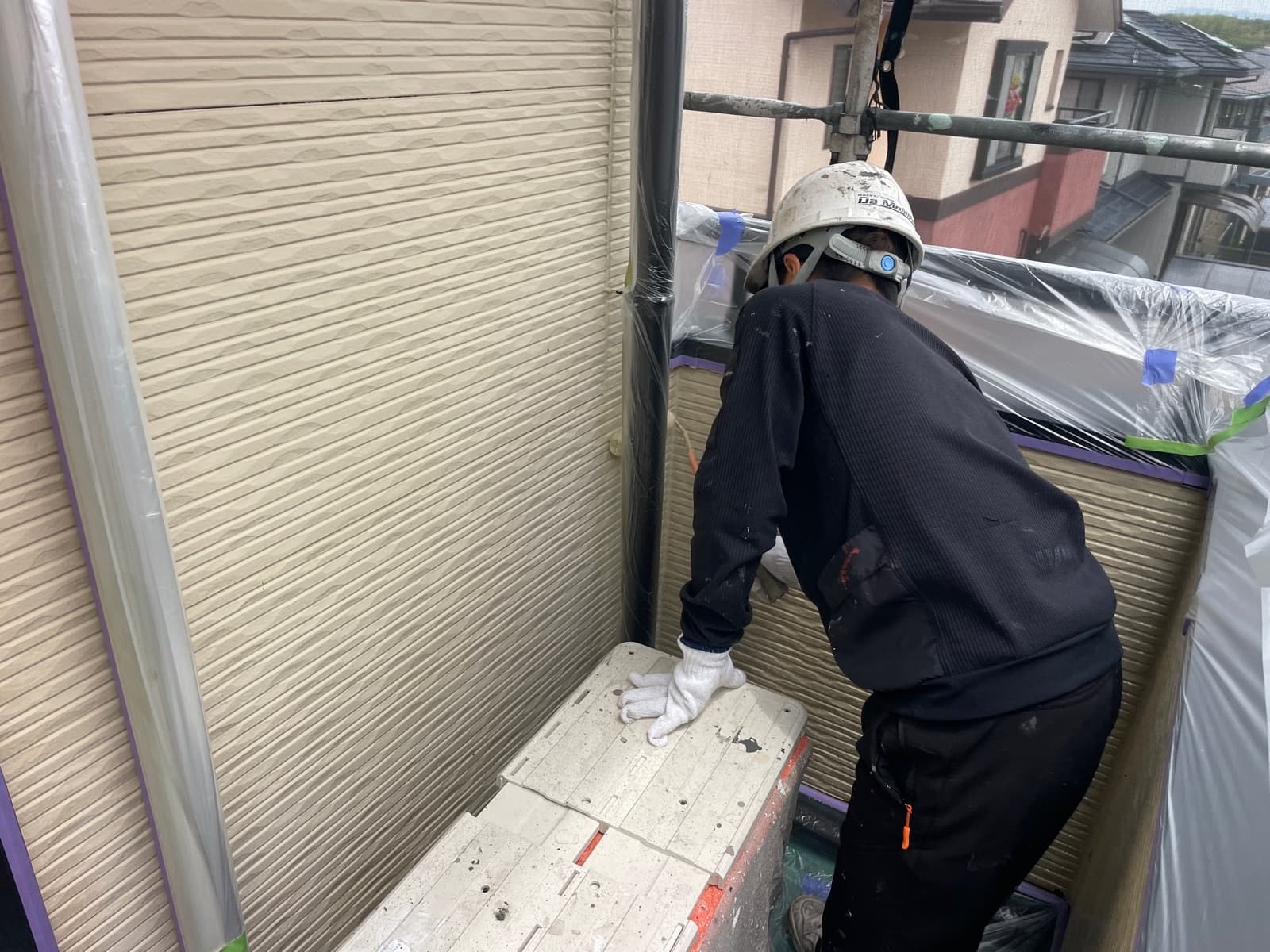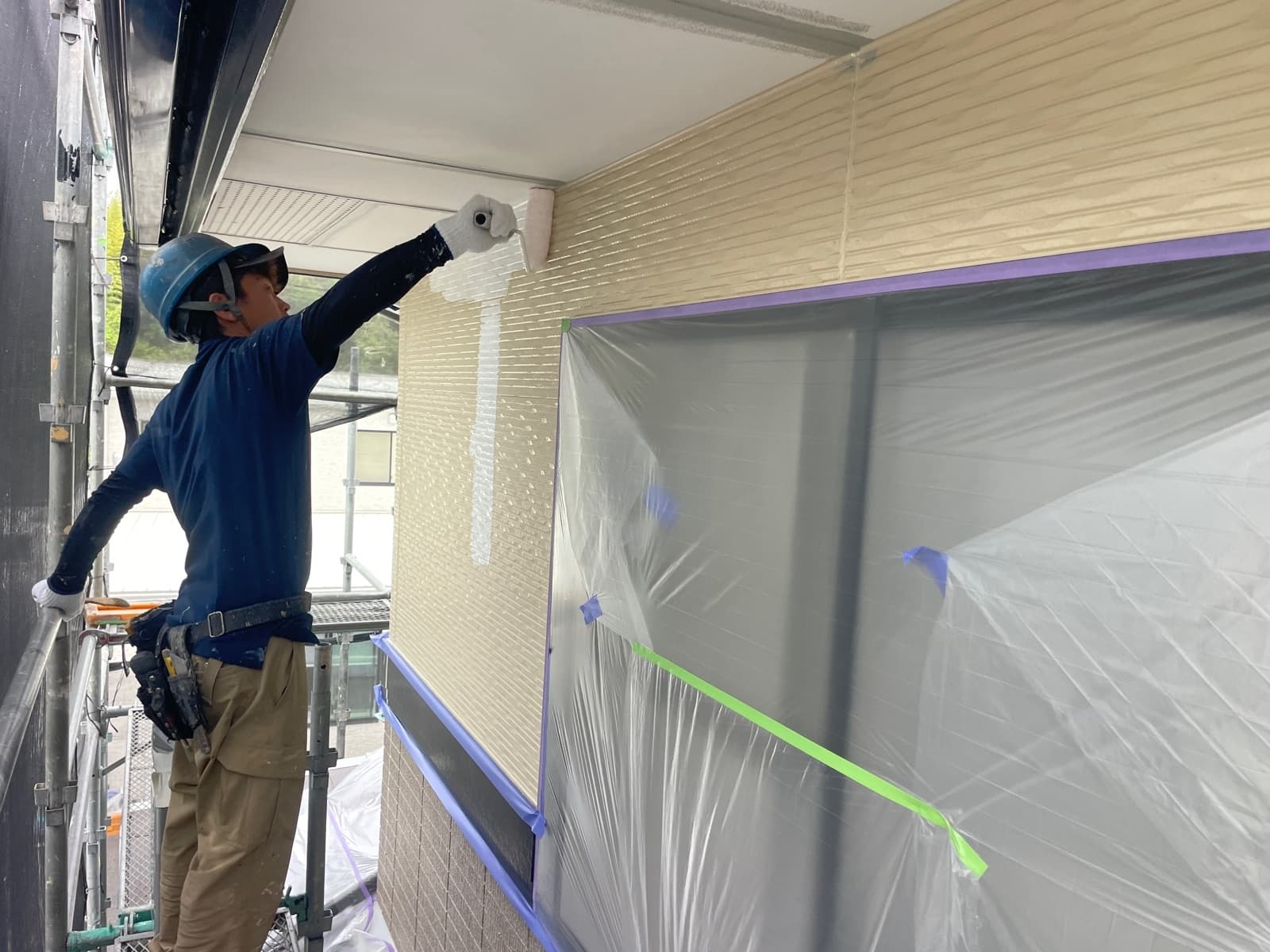 本日は養生、外壁バリアー及び下塗り1回目をさせて頂いております。