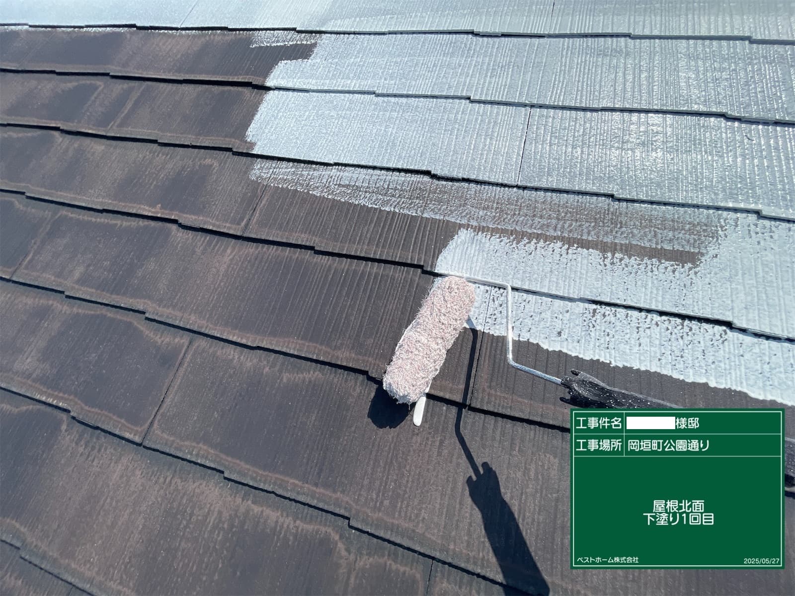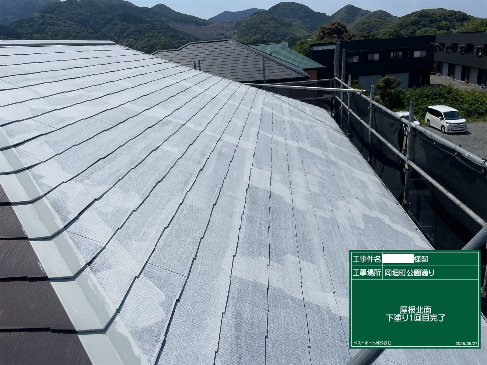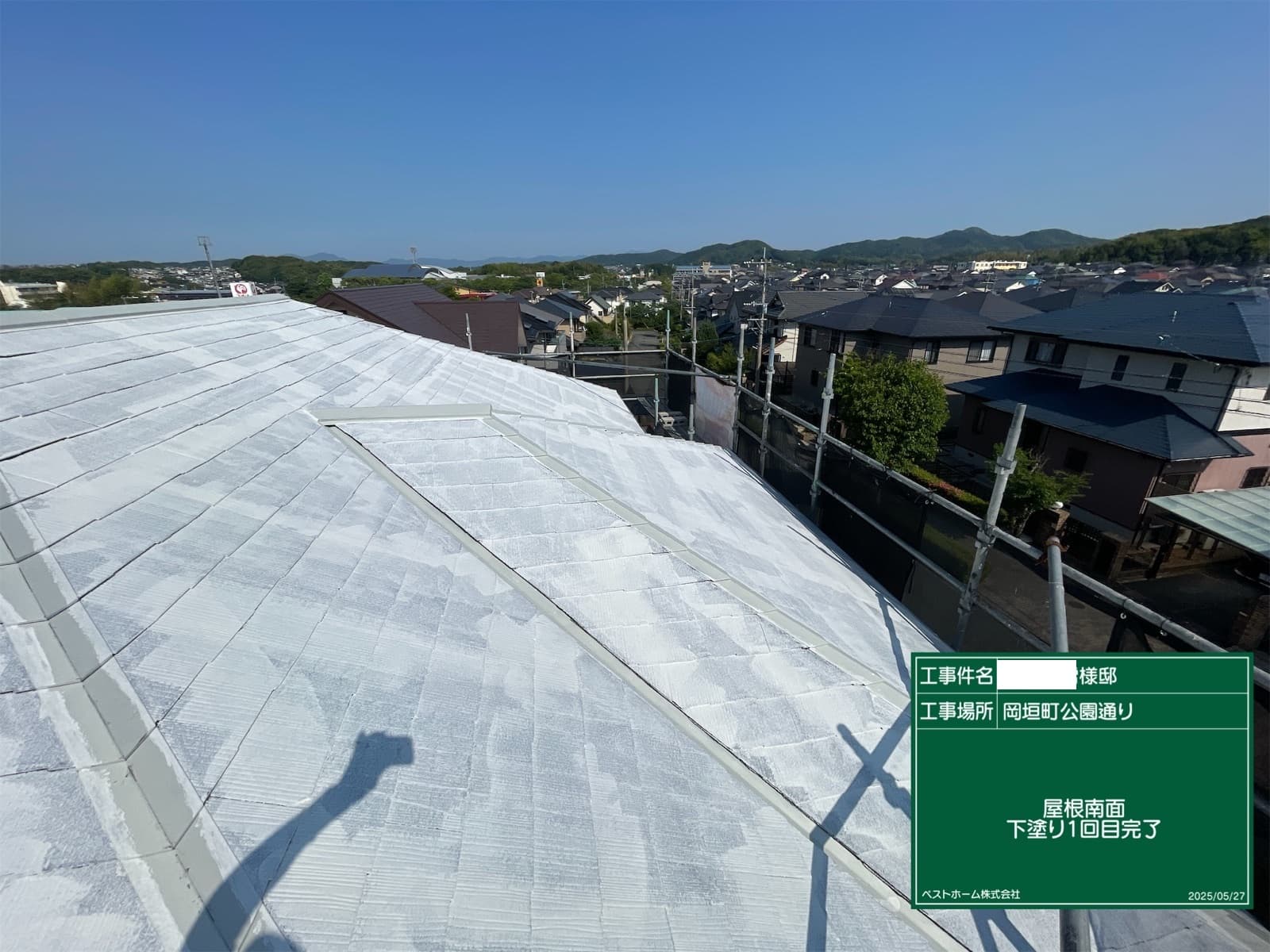 ●●屋根中間検査、屋根上塗り1回目、付帯部塗装