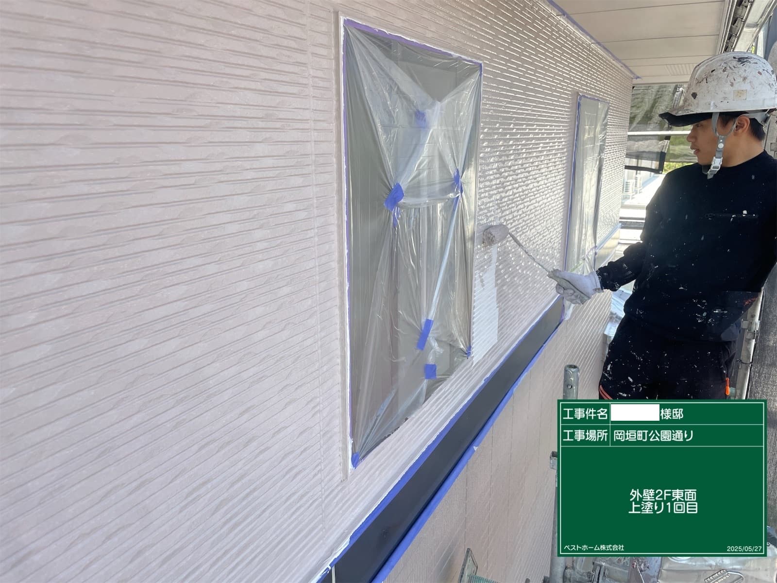●●軒天塗装、外壁下塗り2回目、外壁中間検査