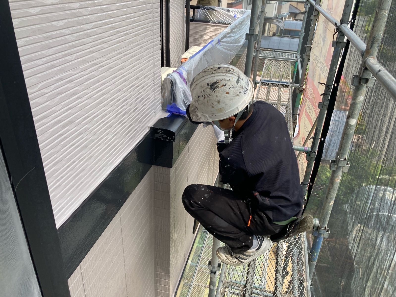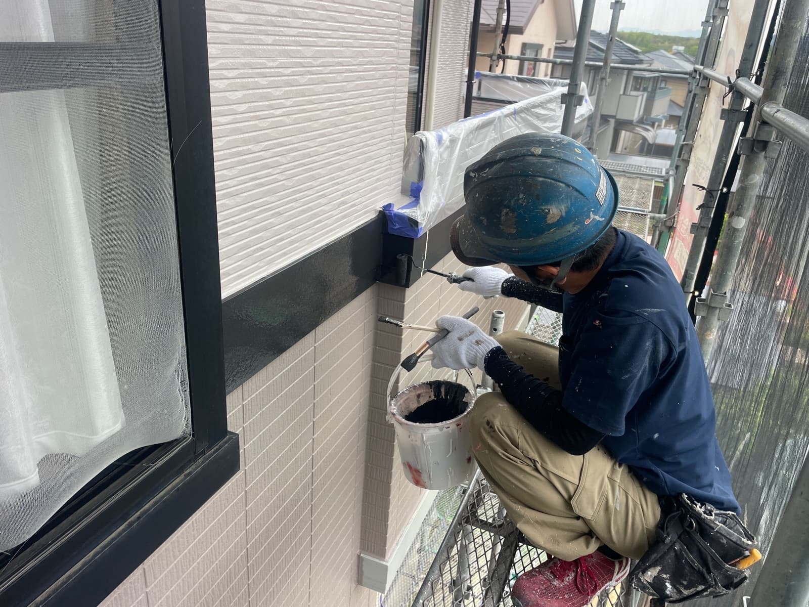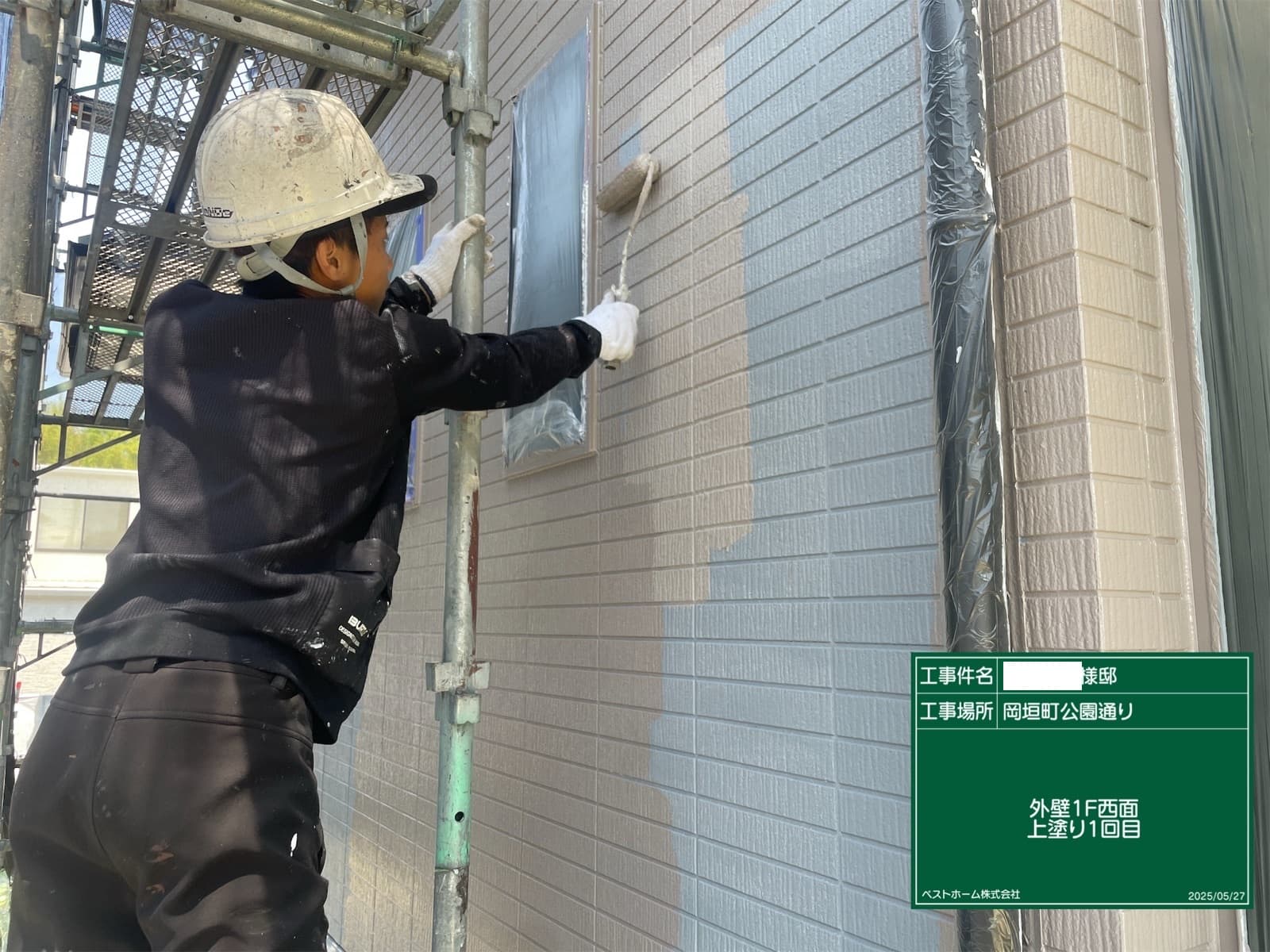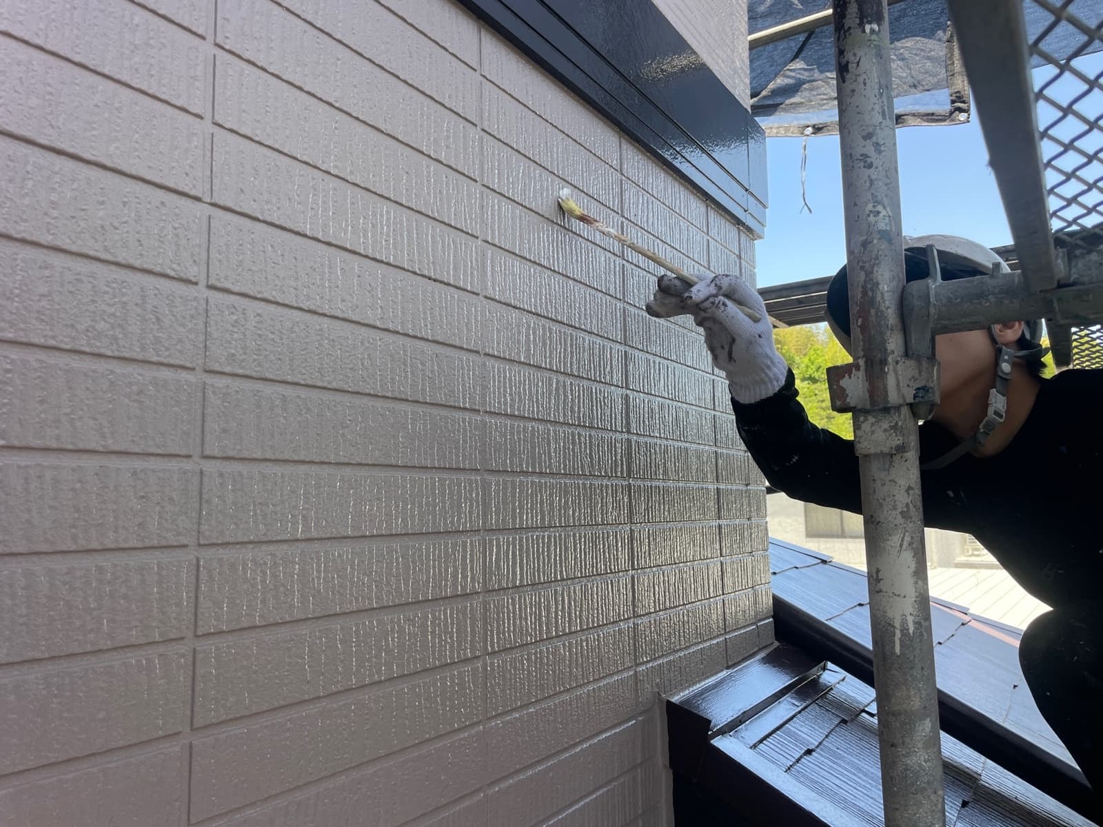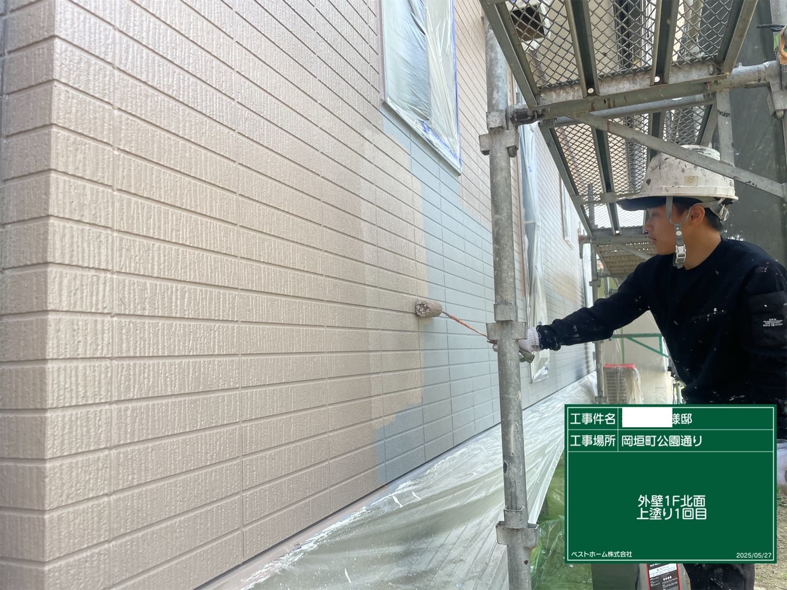 本日は外壁上塗り1回目、屋根下塗り1回目をさせて頂いております。