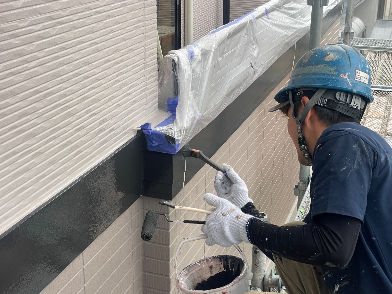 本日は屋根中間検査、屋根上塗り1回目、付帯部塗装をさせて頂いております。