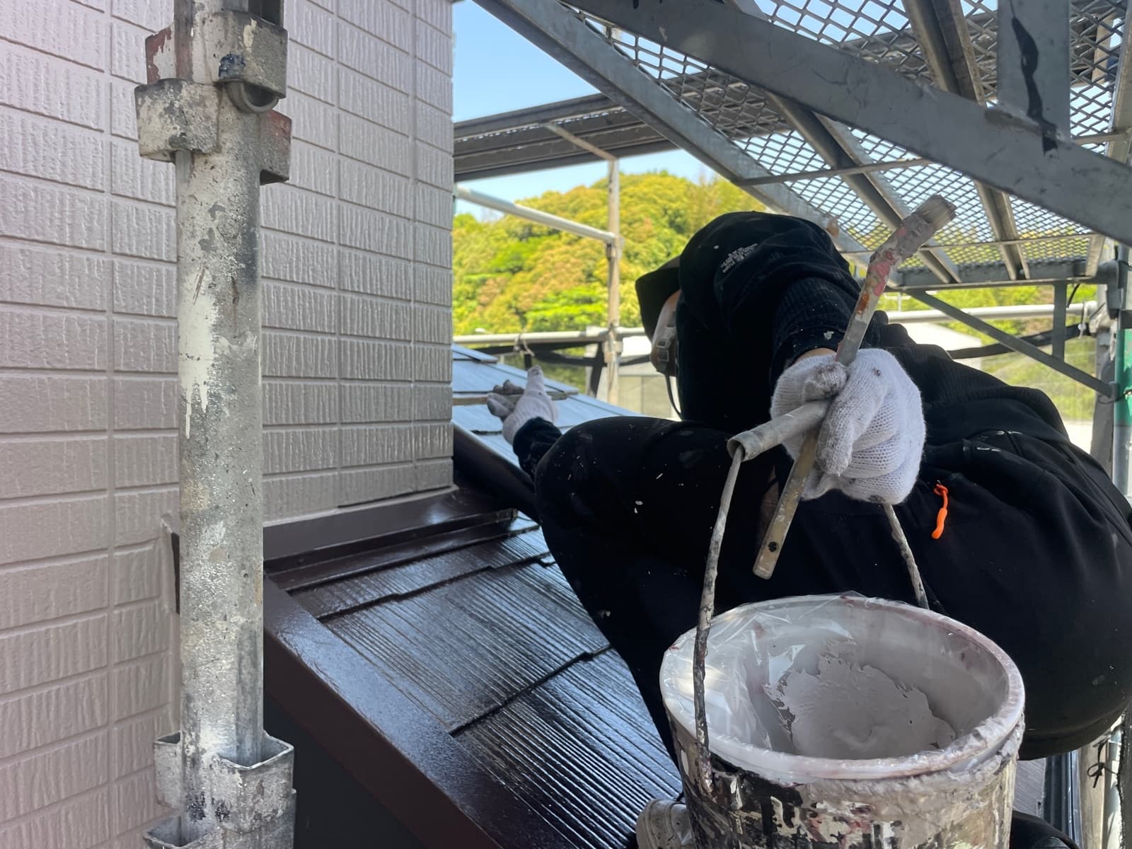 次回施工・・・屋根上塗り1回目、付帯塗装