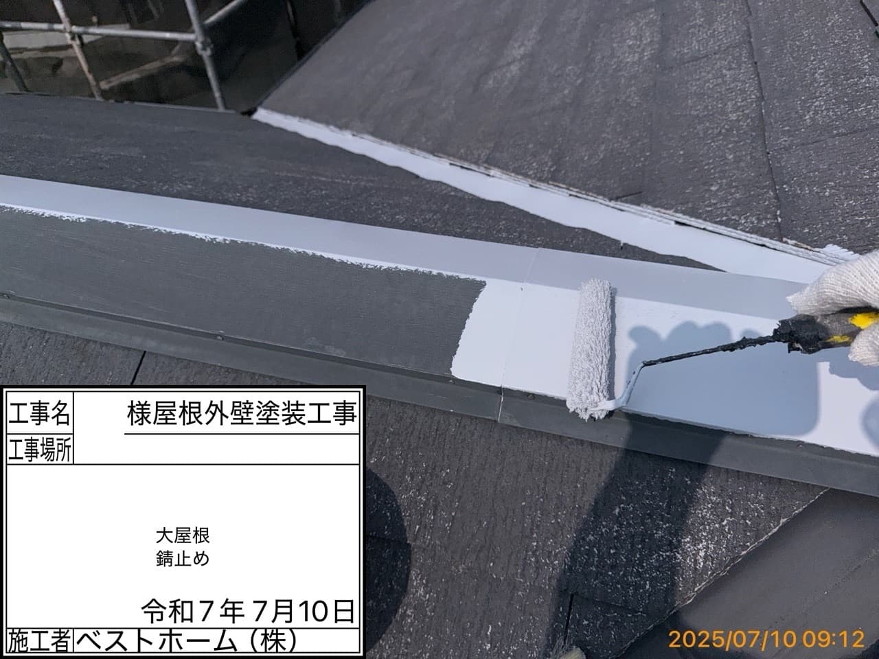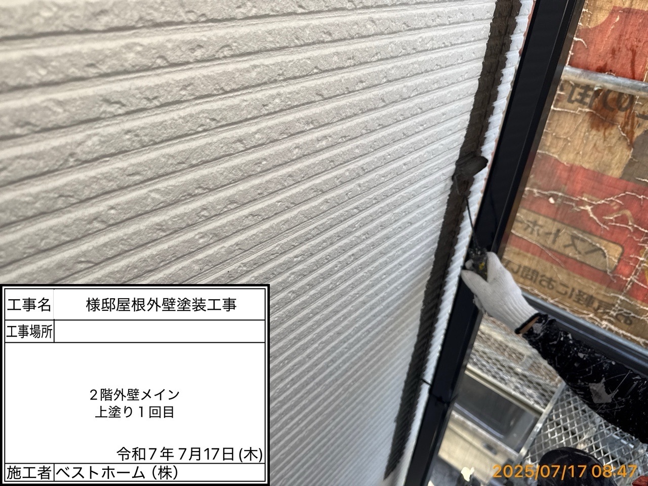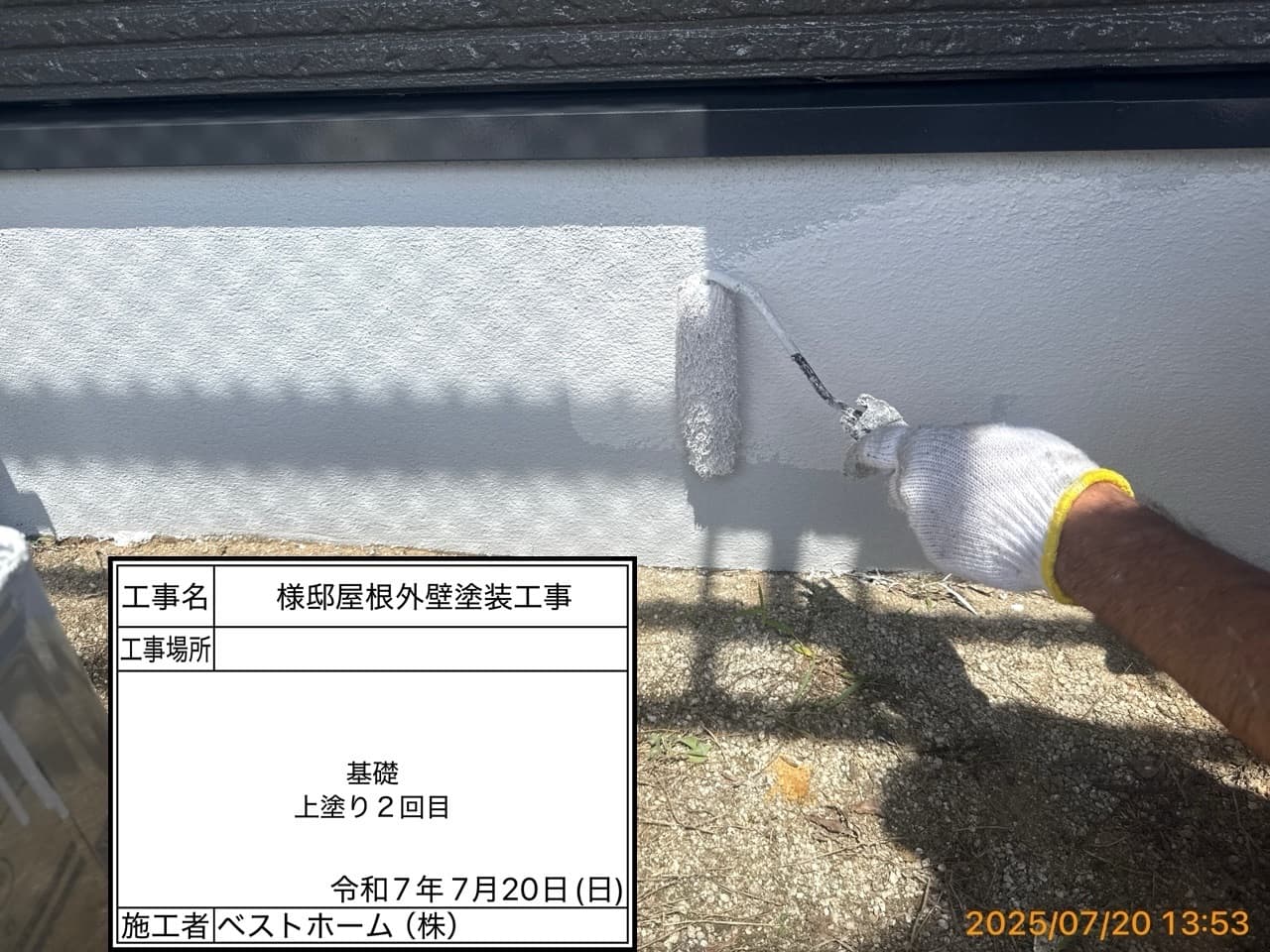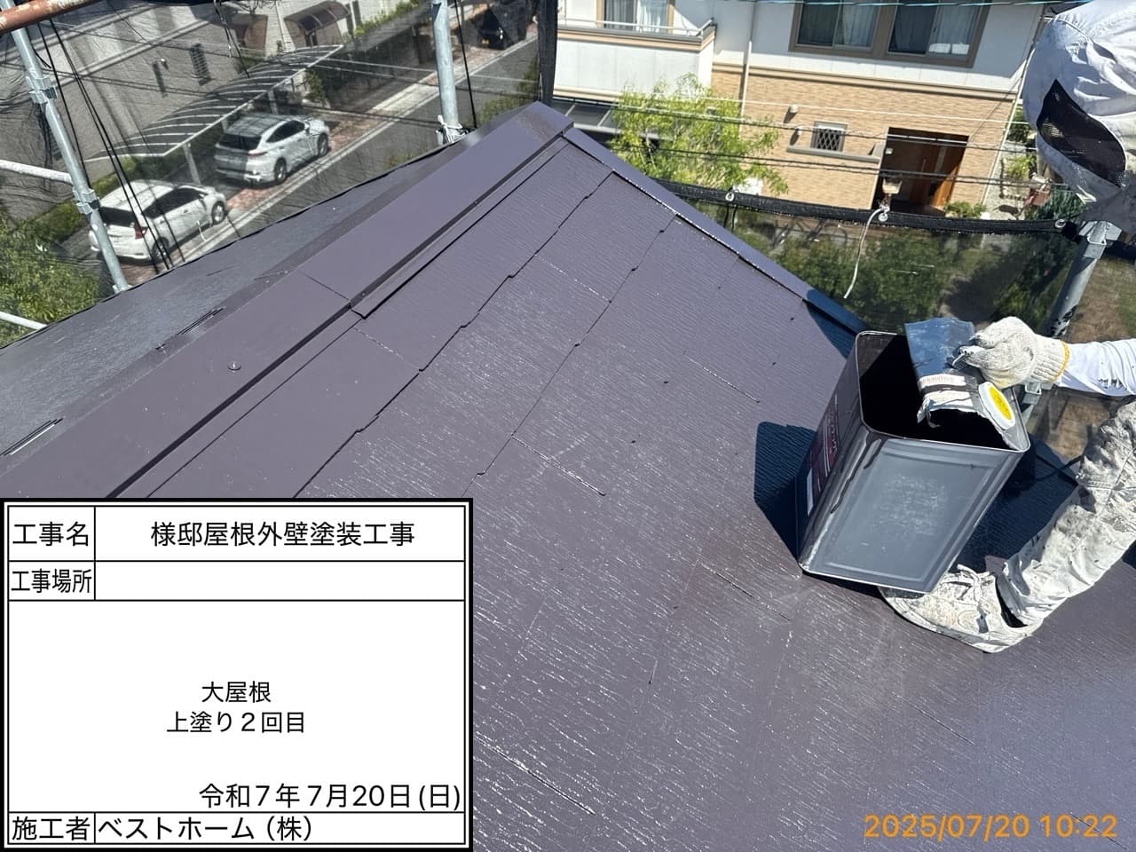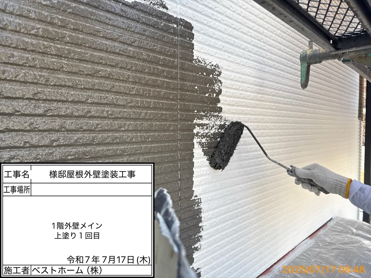 ●●屋根上塗り1回目、外壁下塗り2回目、外壁中間検査、付帯部塗装