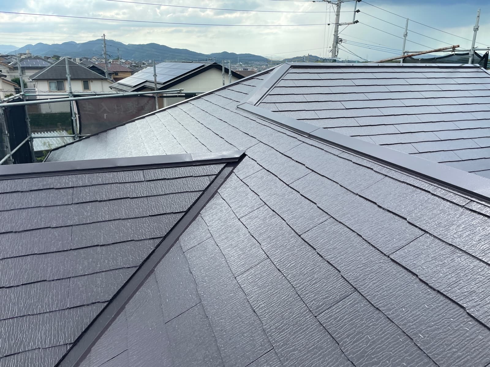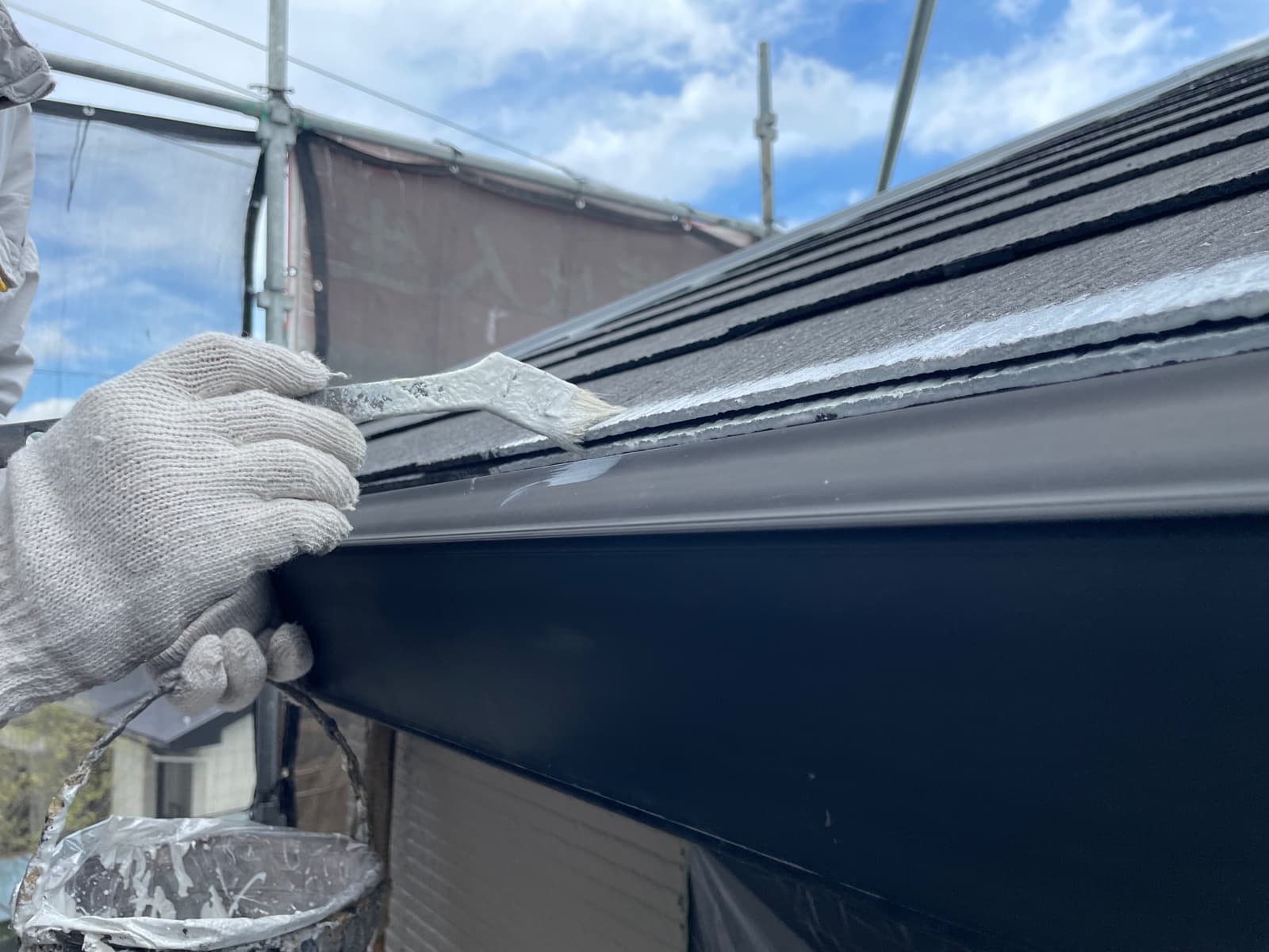 ●●大屋根上塗り2回目、付帯塗装