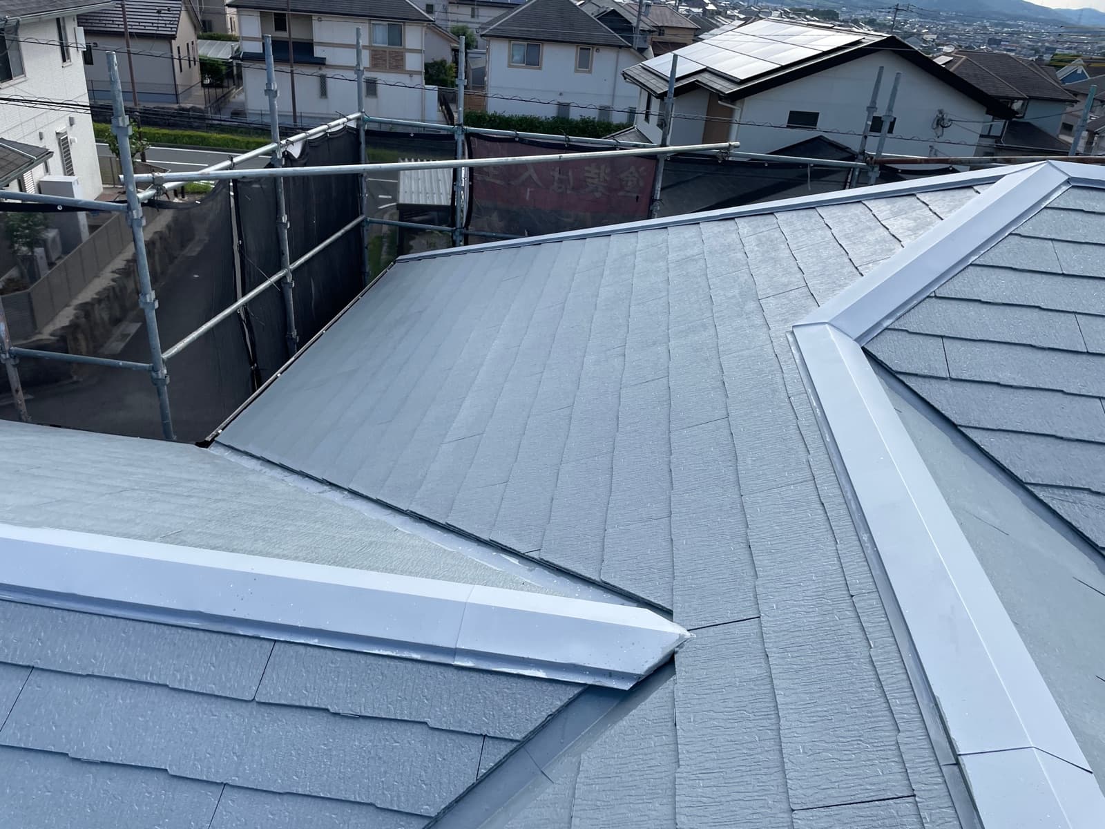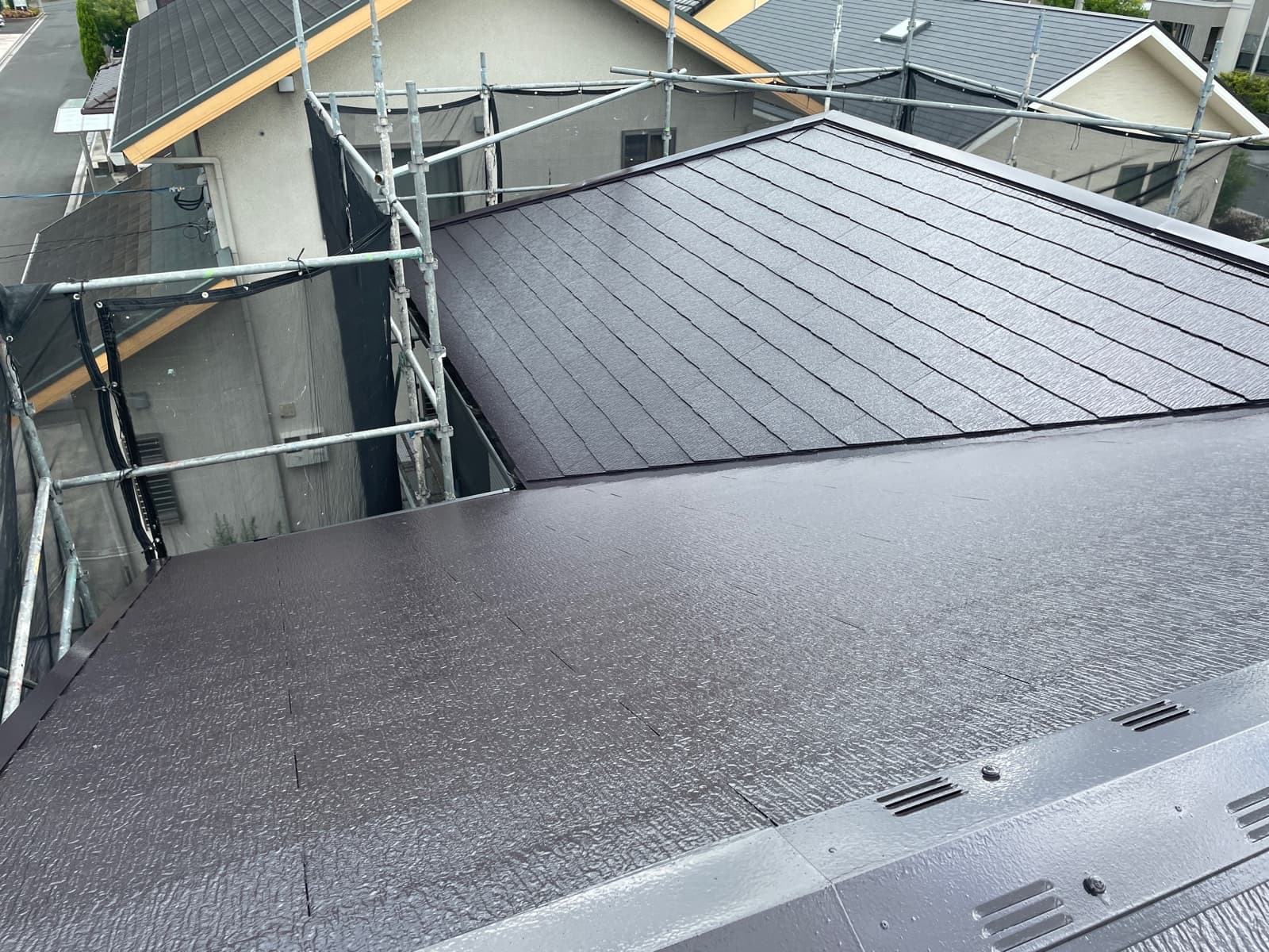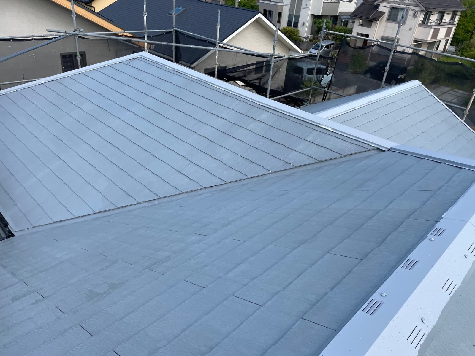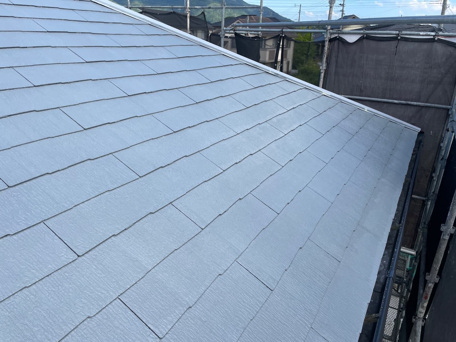 次回施工・・・屋根上塗り2回目、付帯塗装、シャッター磨き等