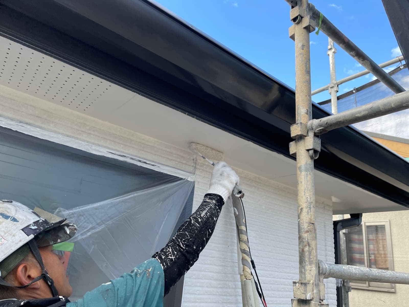 ●●屋根下塗り2回目、屋根中間検査、付帯部塗装、軒天塗装、外壁下塗り1回目