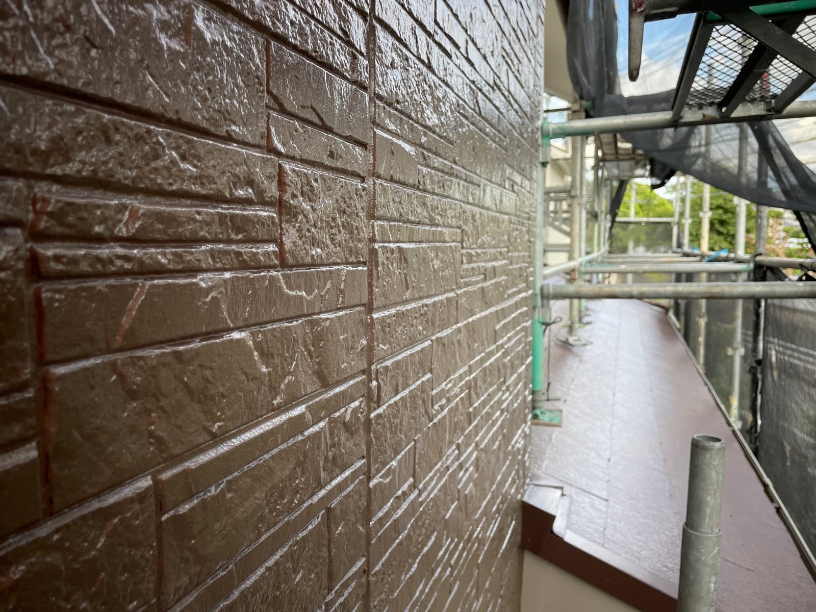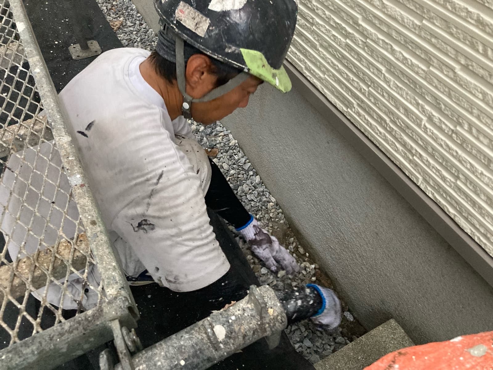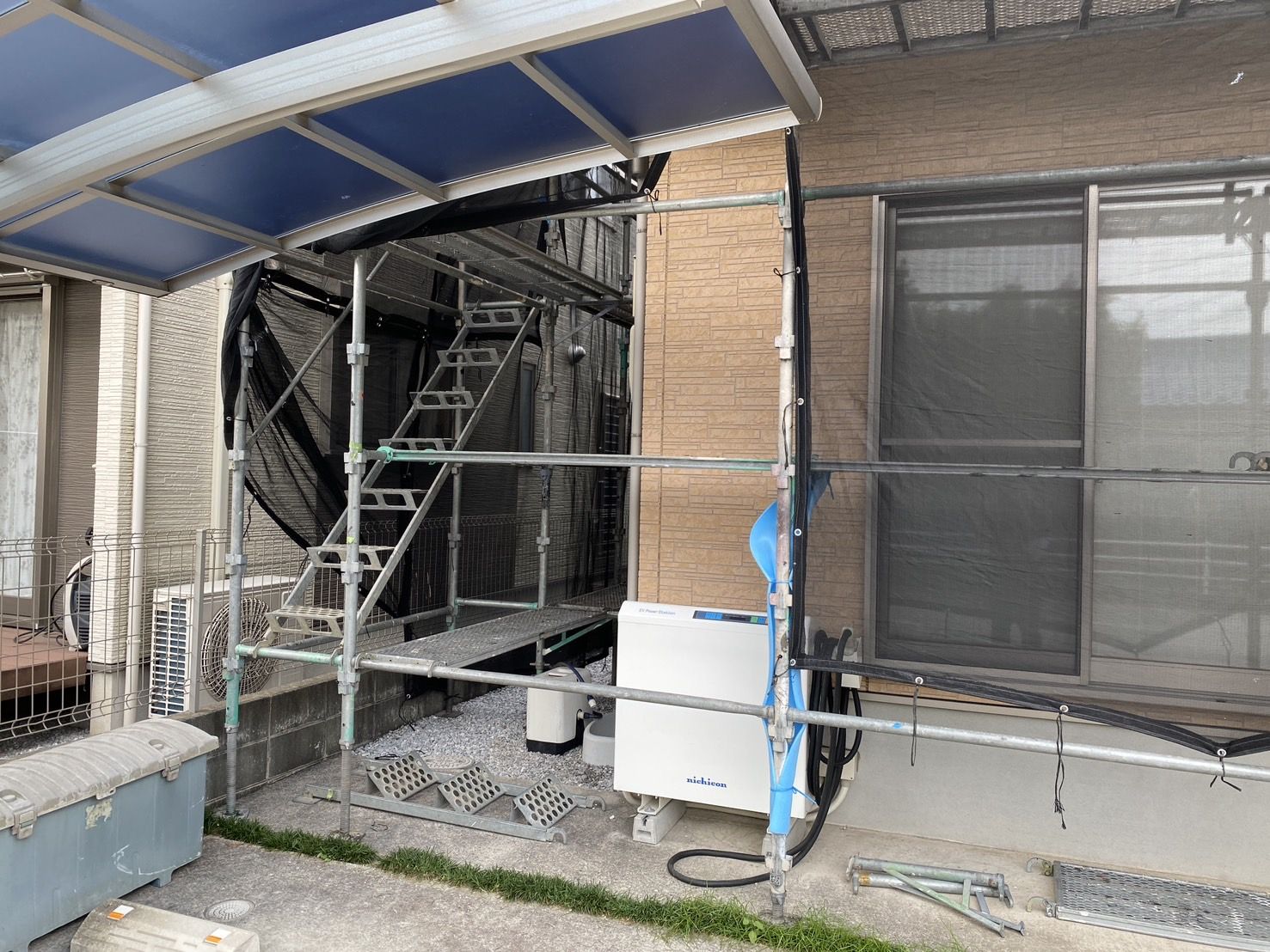 本日は基礎塗装、ベランダ塗装、手直し、足場解体前検査をさせて頂いております。