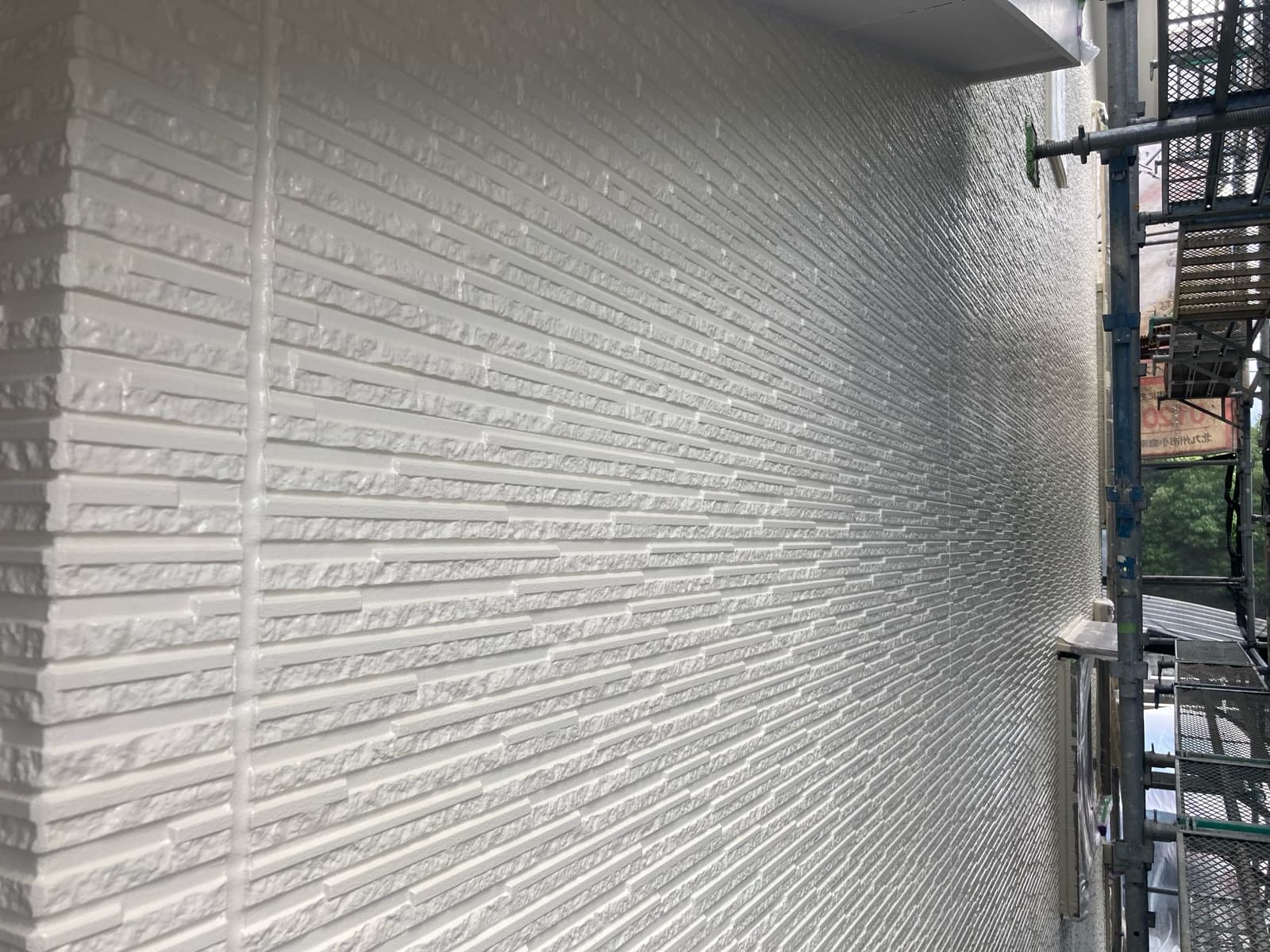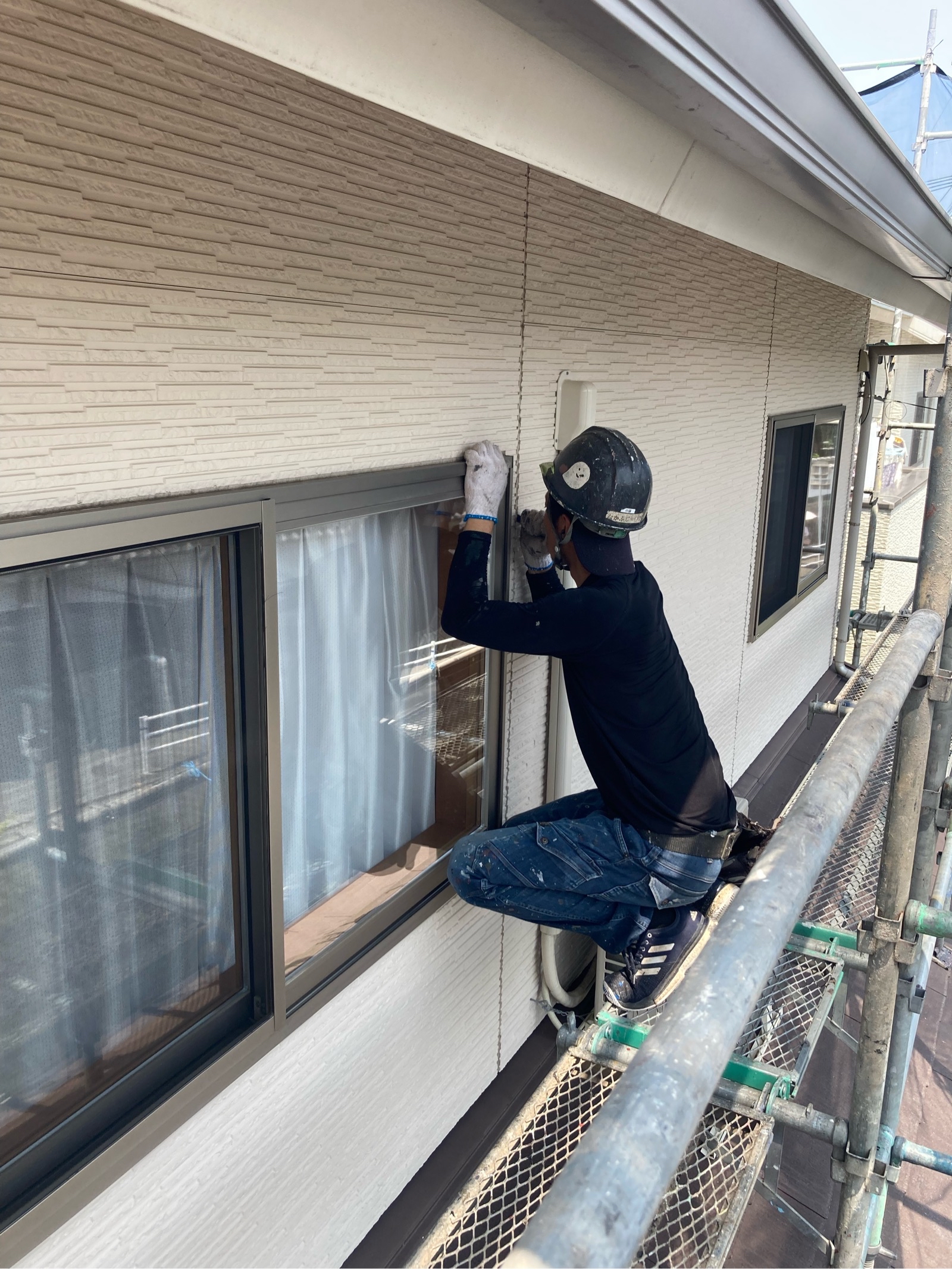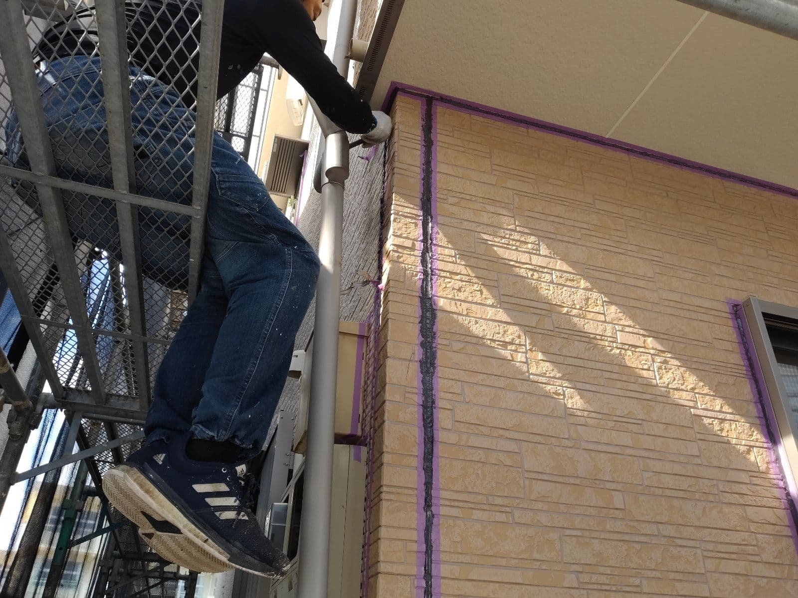 本日は基礎塗装、ベランダ塗装、手直し、足場解体前検査をさせて頂いております。
