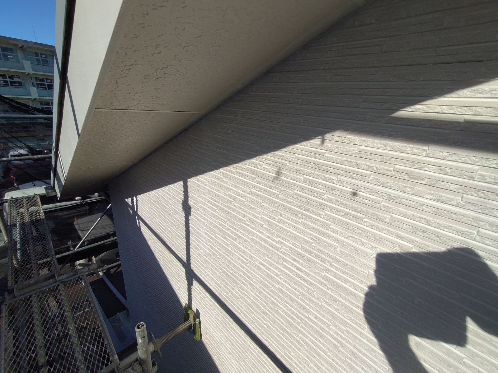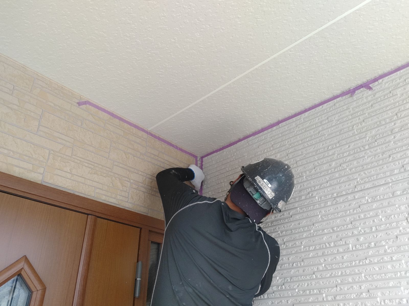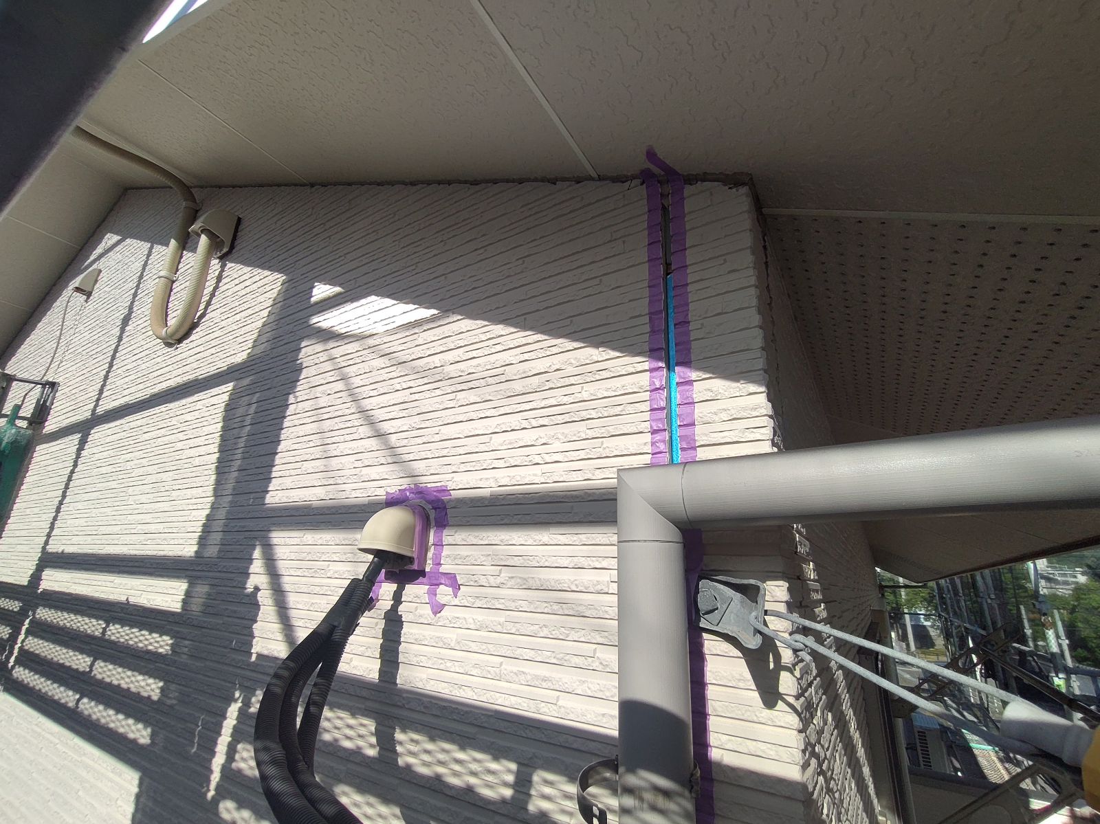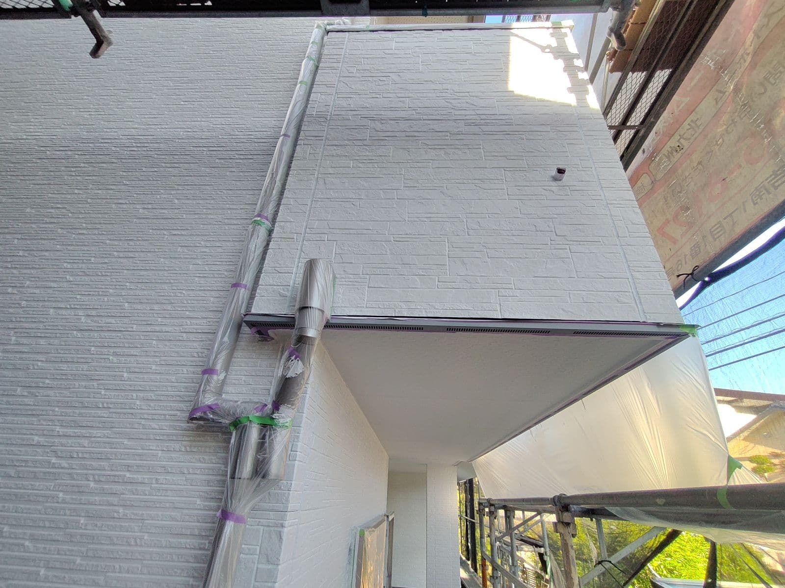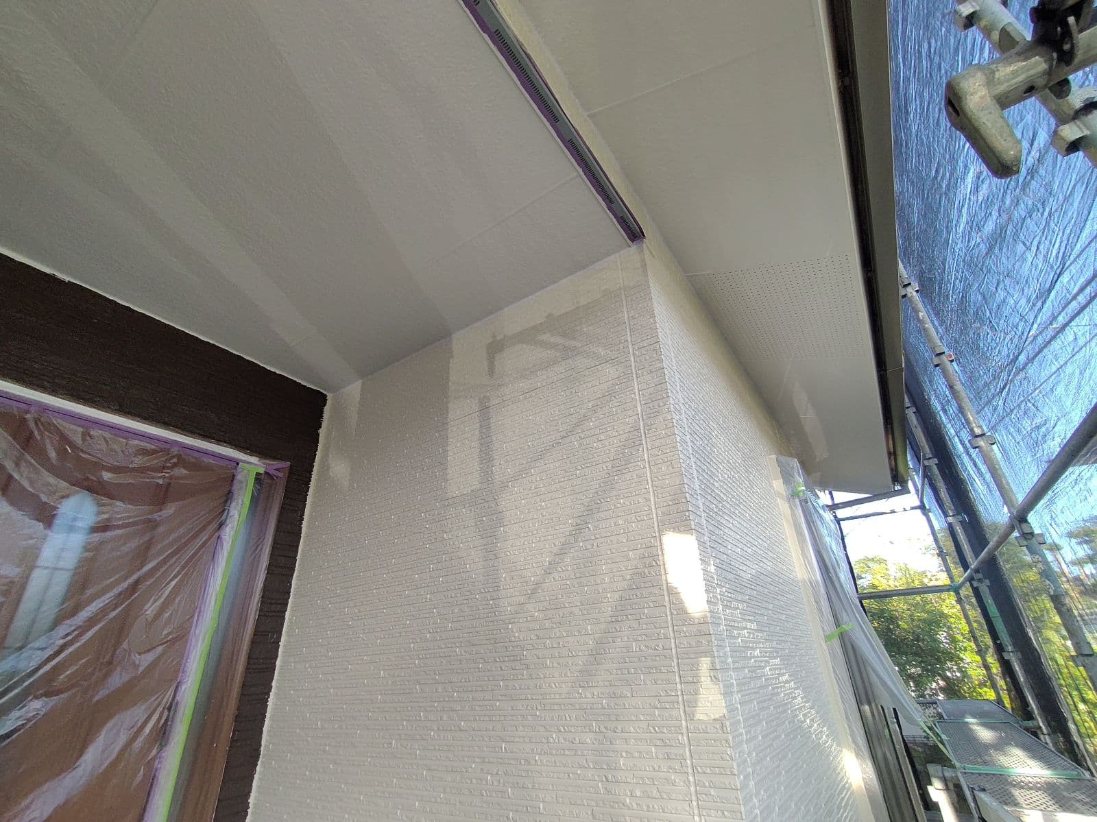本日は外壁下塗り2回目、中間検査、軒天塗装等をさせて頂いております。