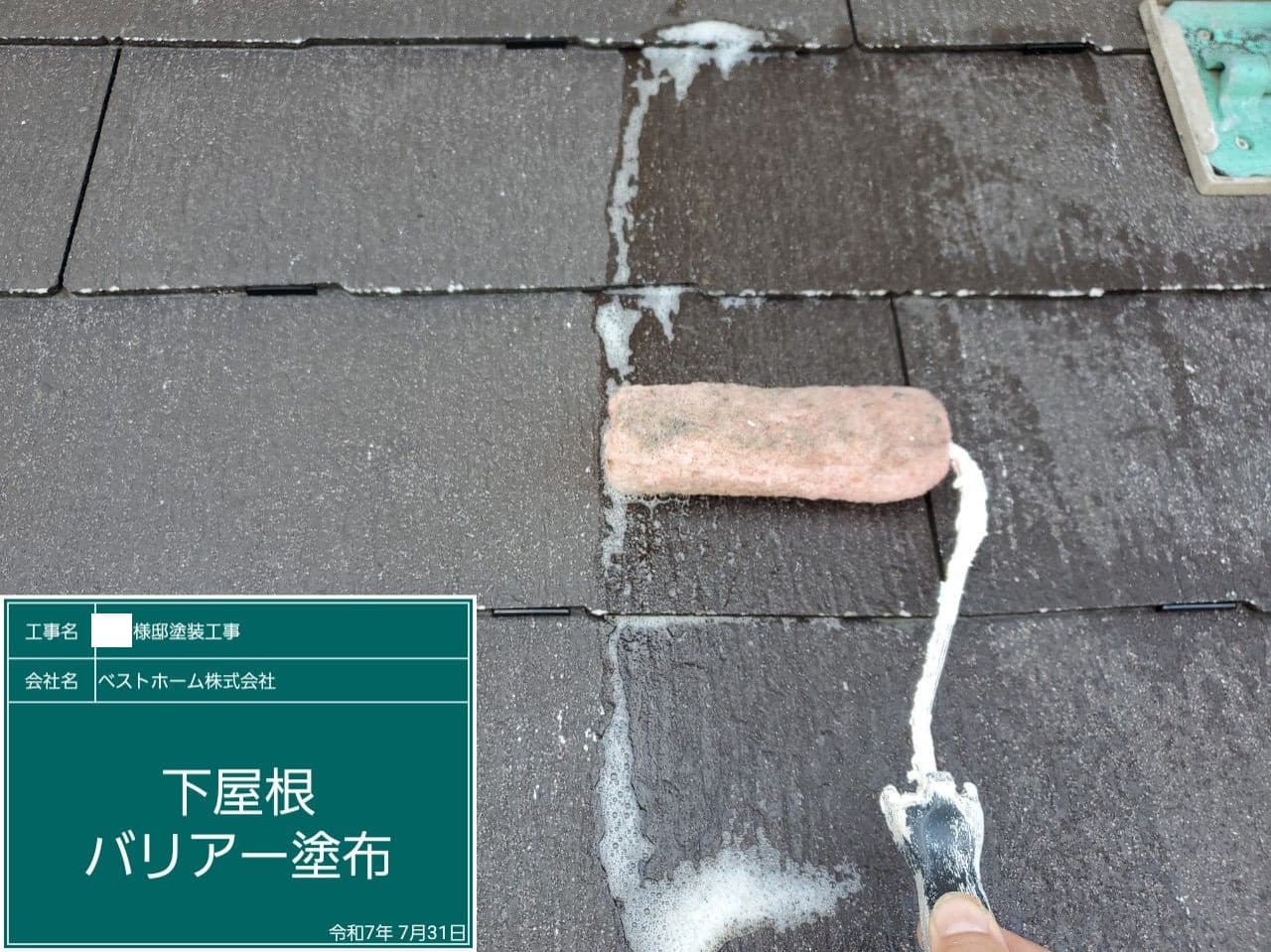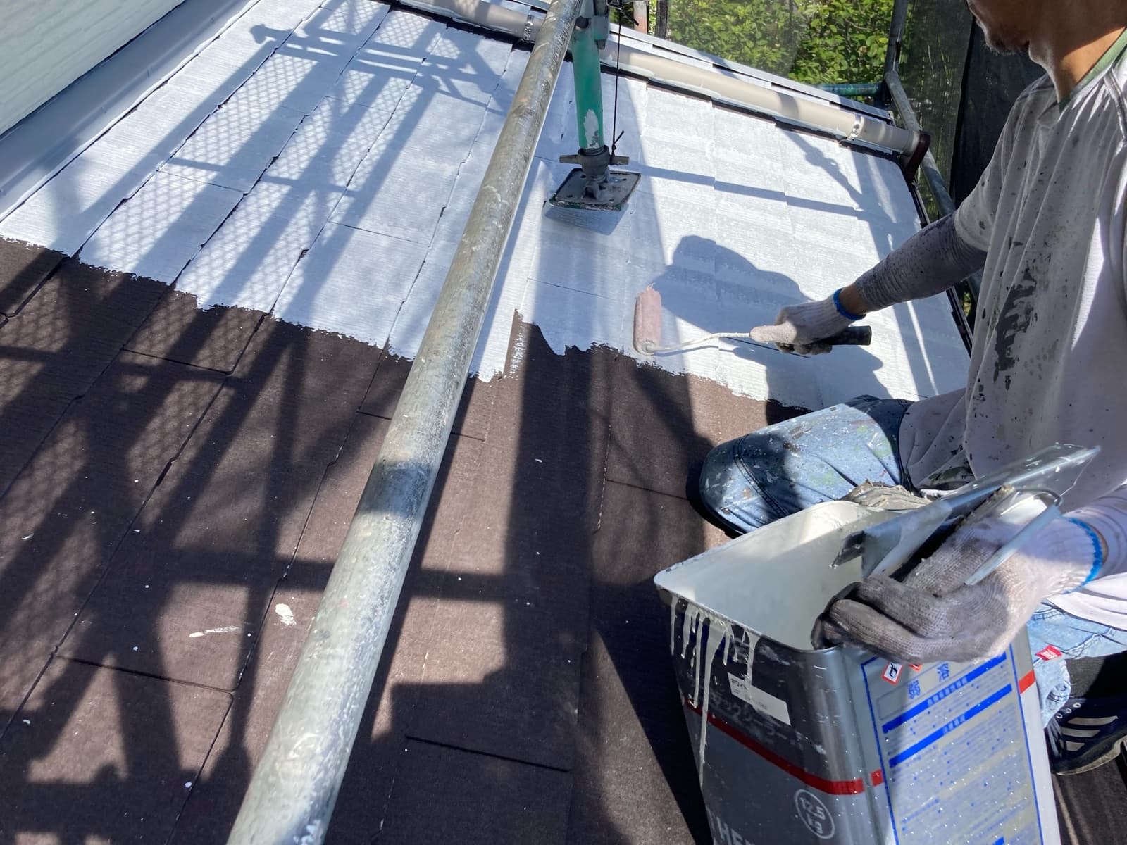 本日は屋根 バリアー塗布、下塗り1回目をさせて頂いております。