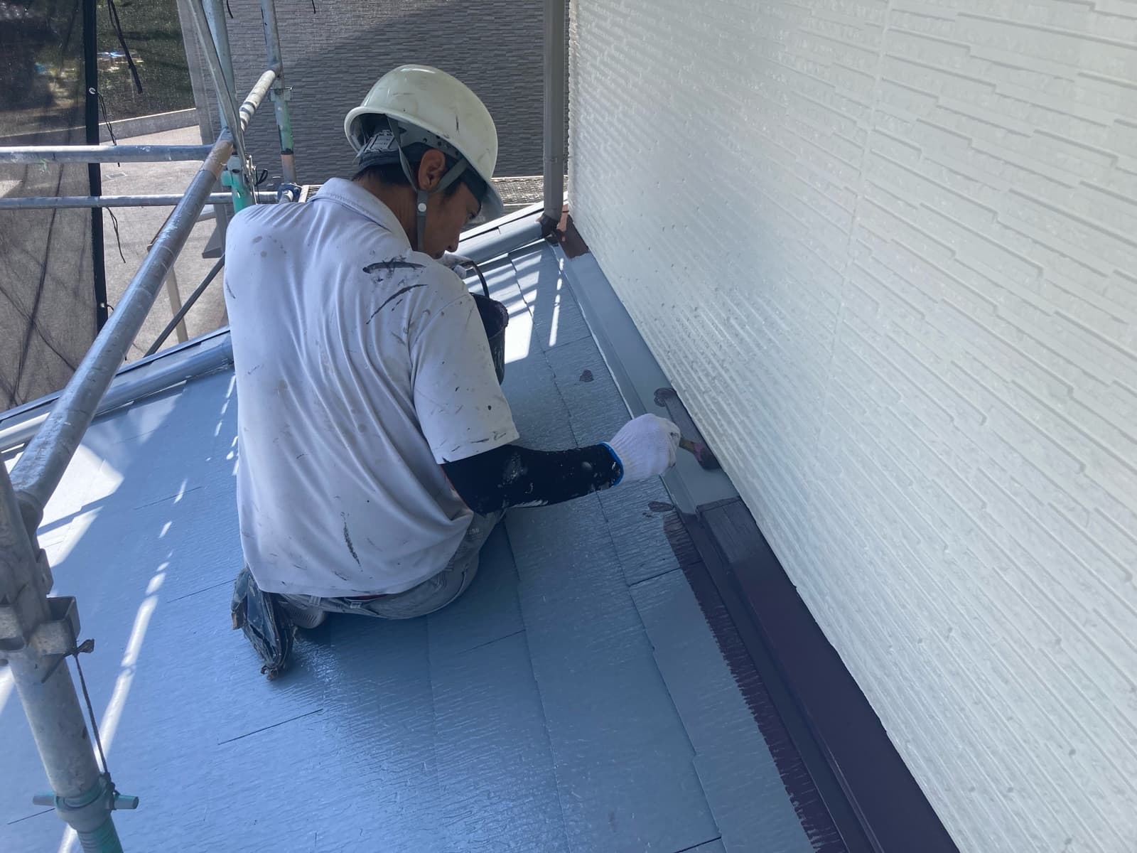 本日は屋根上塗り2回目、基礎塗装、ベランダ塗装をさせて頂いております。
