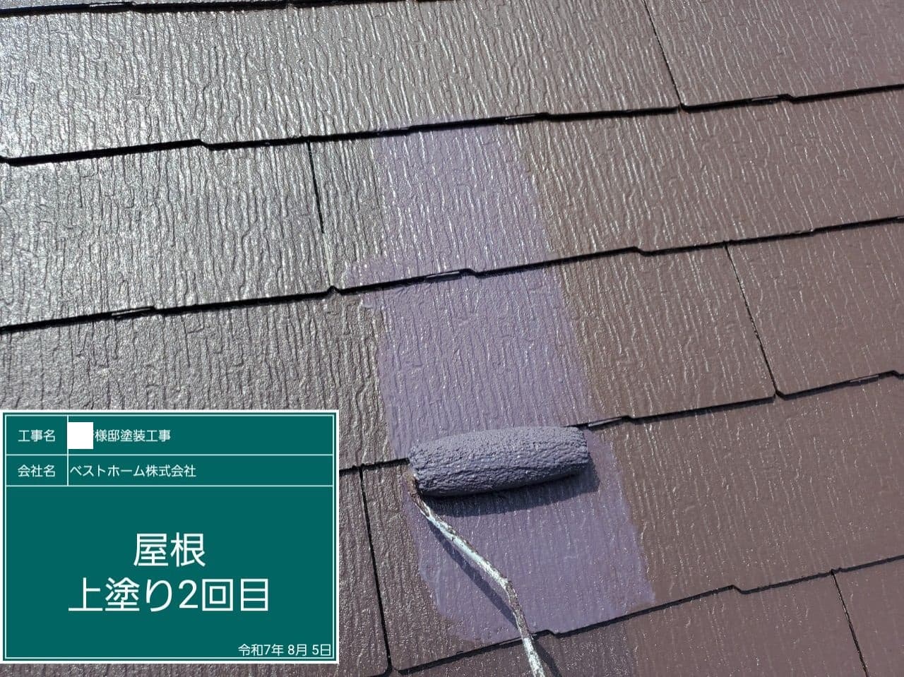 ●●屋根上塗り2回目、基礎塗装、ベランダ塗装