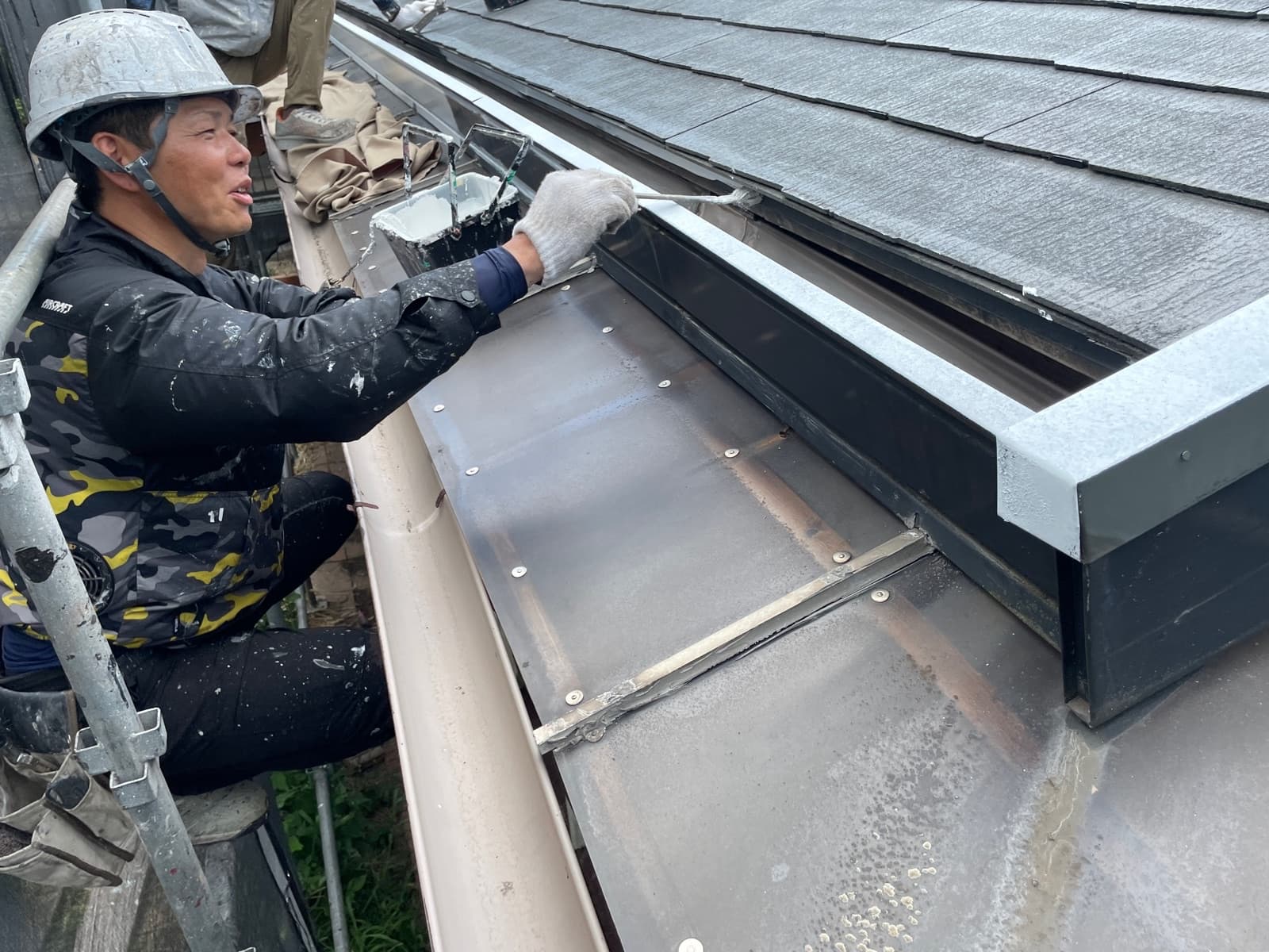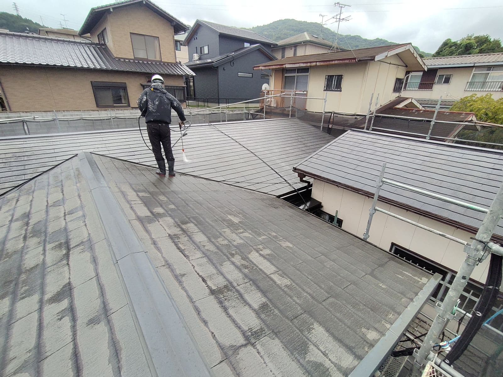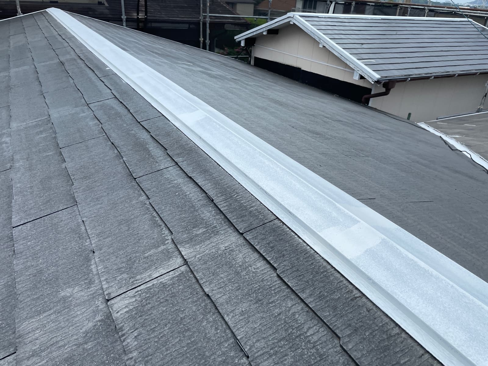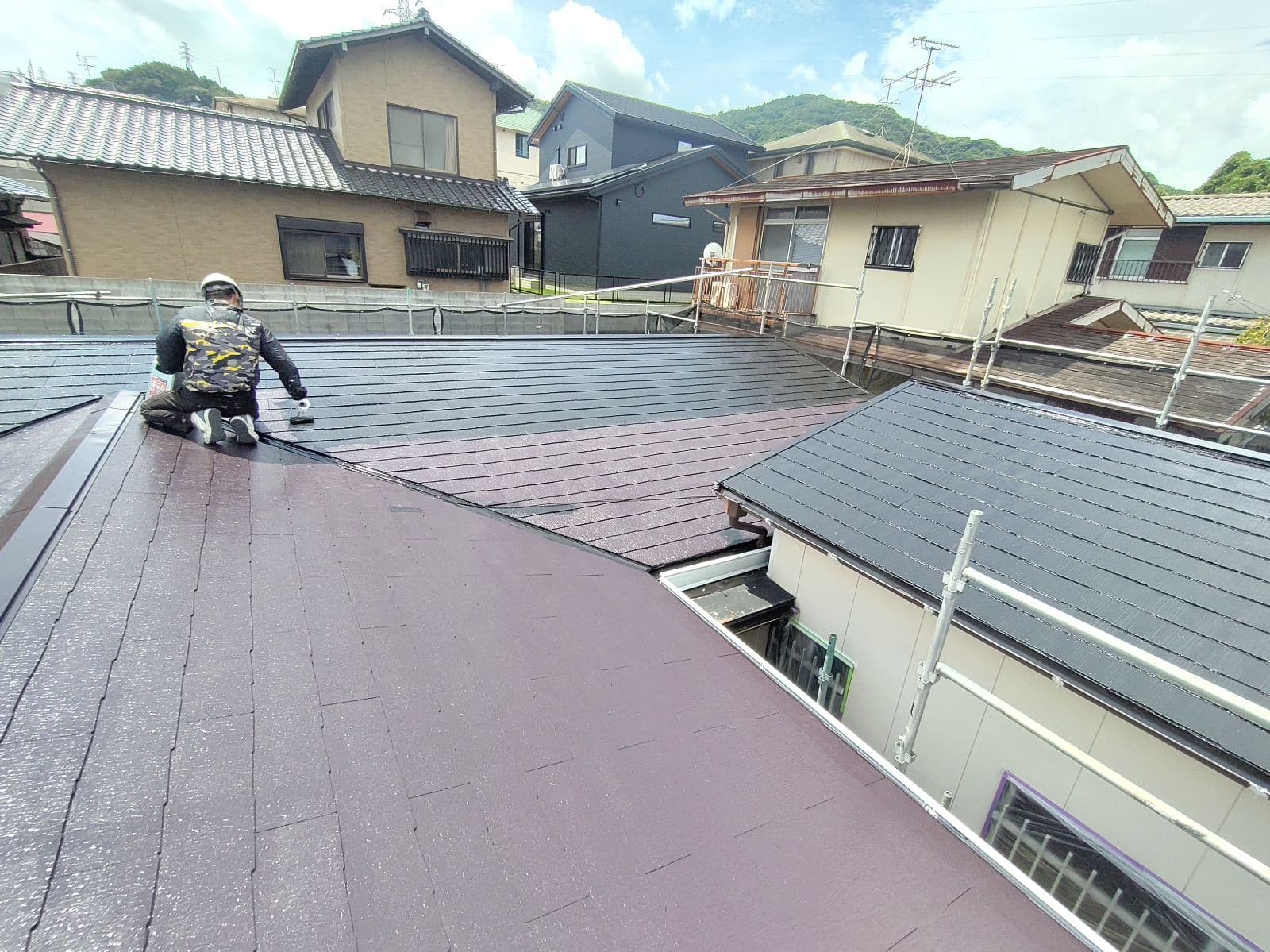 本日は屋根上塗り、付帯部塗装、軒天塗装をさせて頂いております。