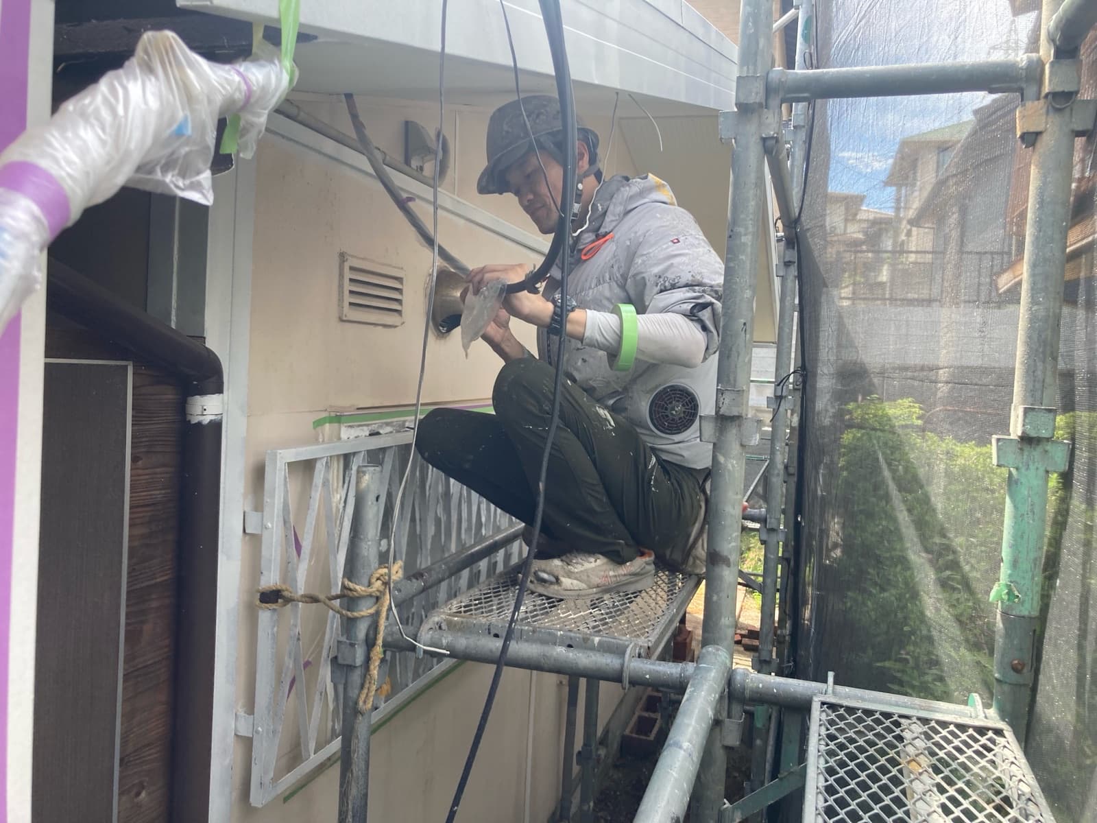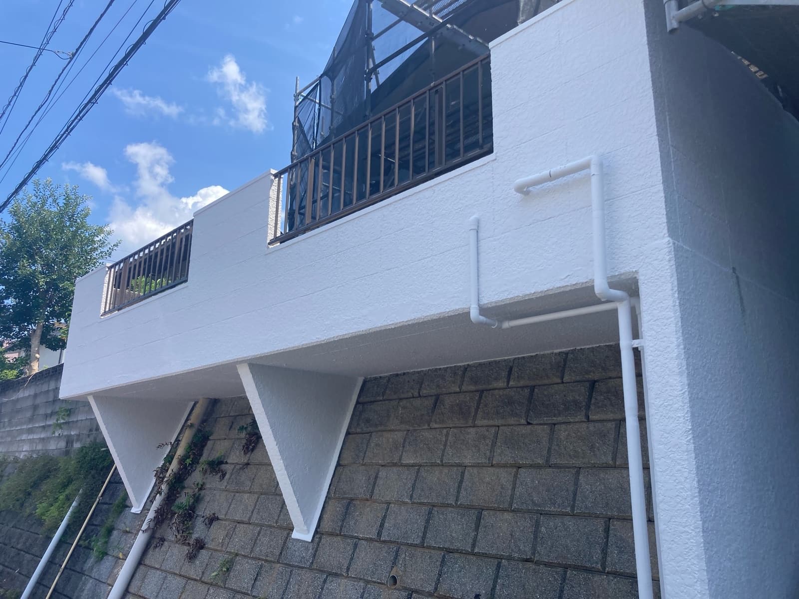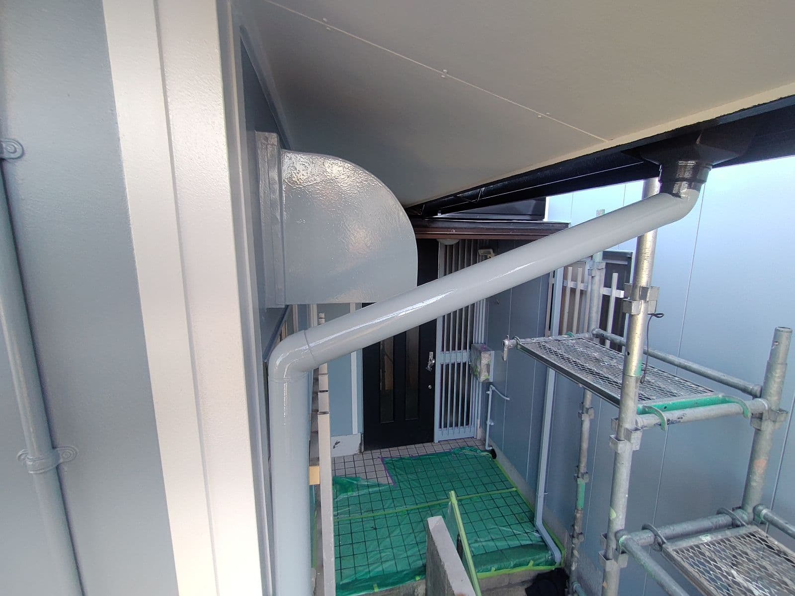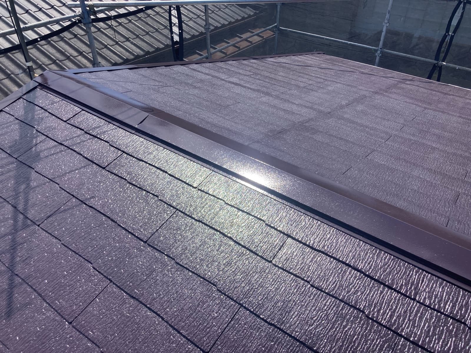 本日は屋根上塗り、付帯部塗装、軒天塗装をさせて頂いております。
