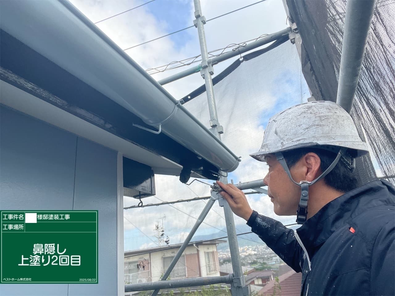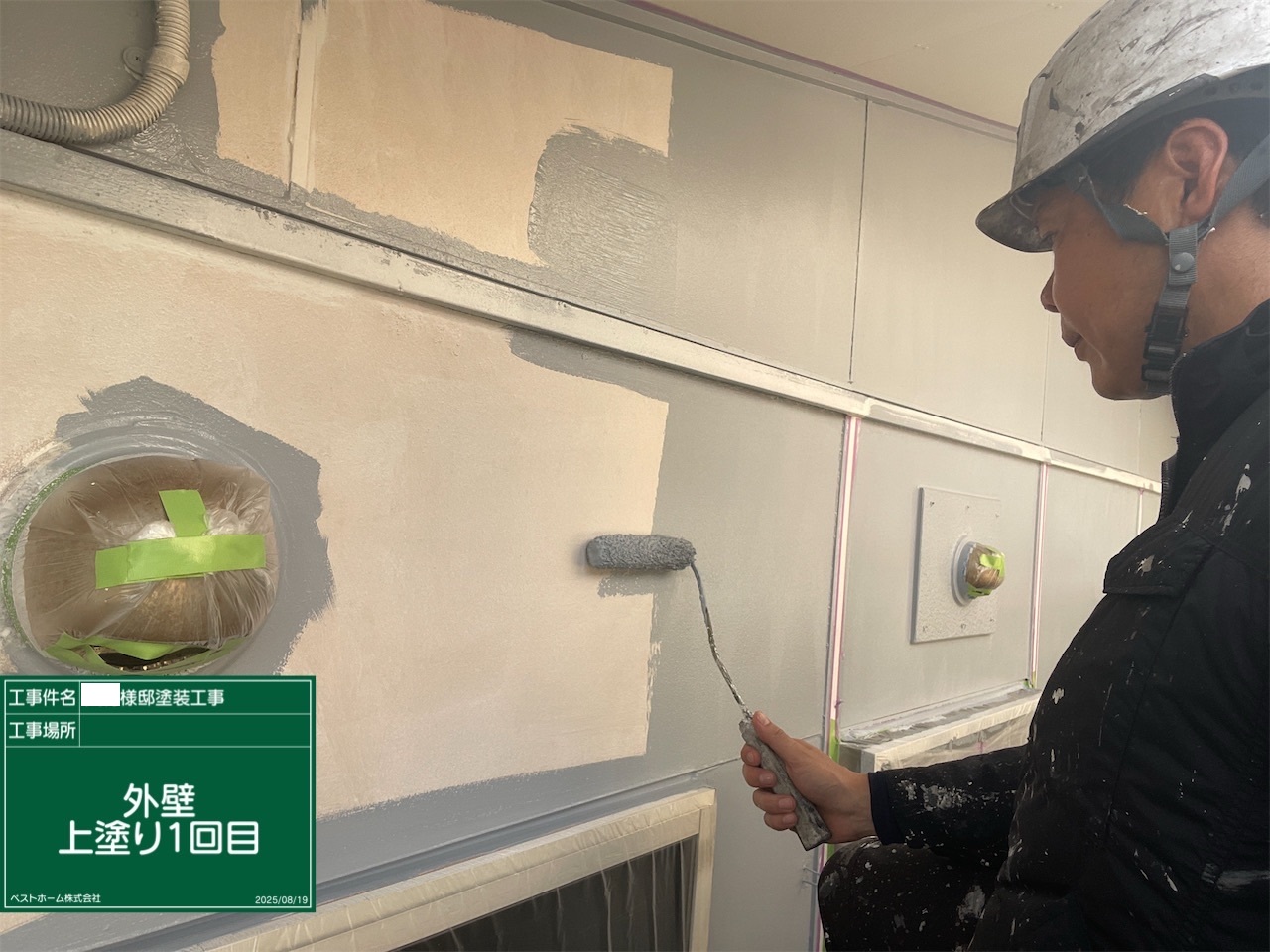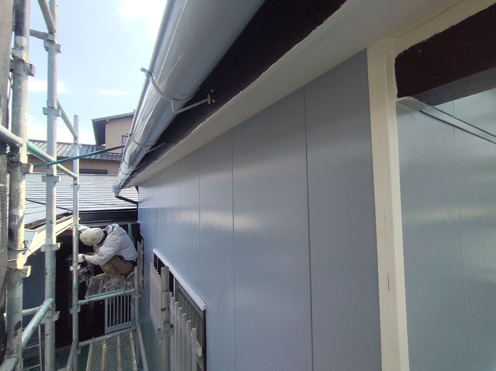 ●●外壁中間検査、外壁上塗り、付帯部塗装