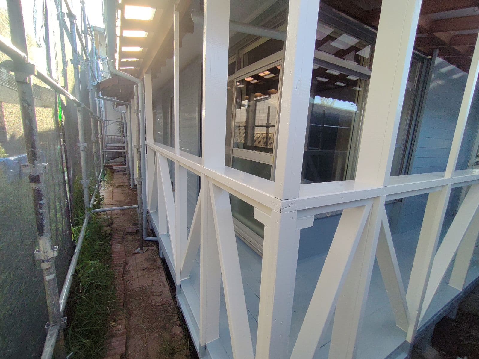 本日は外壁中間検査、外壁上塗り、付帯部塗装をさせて頂いております。