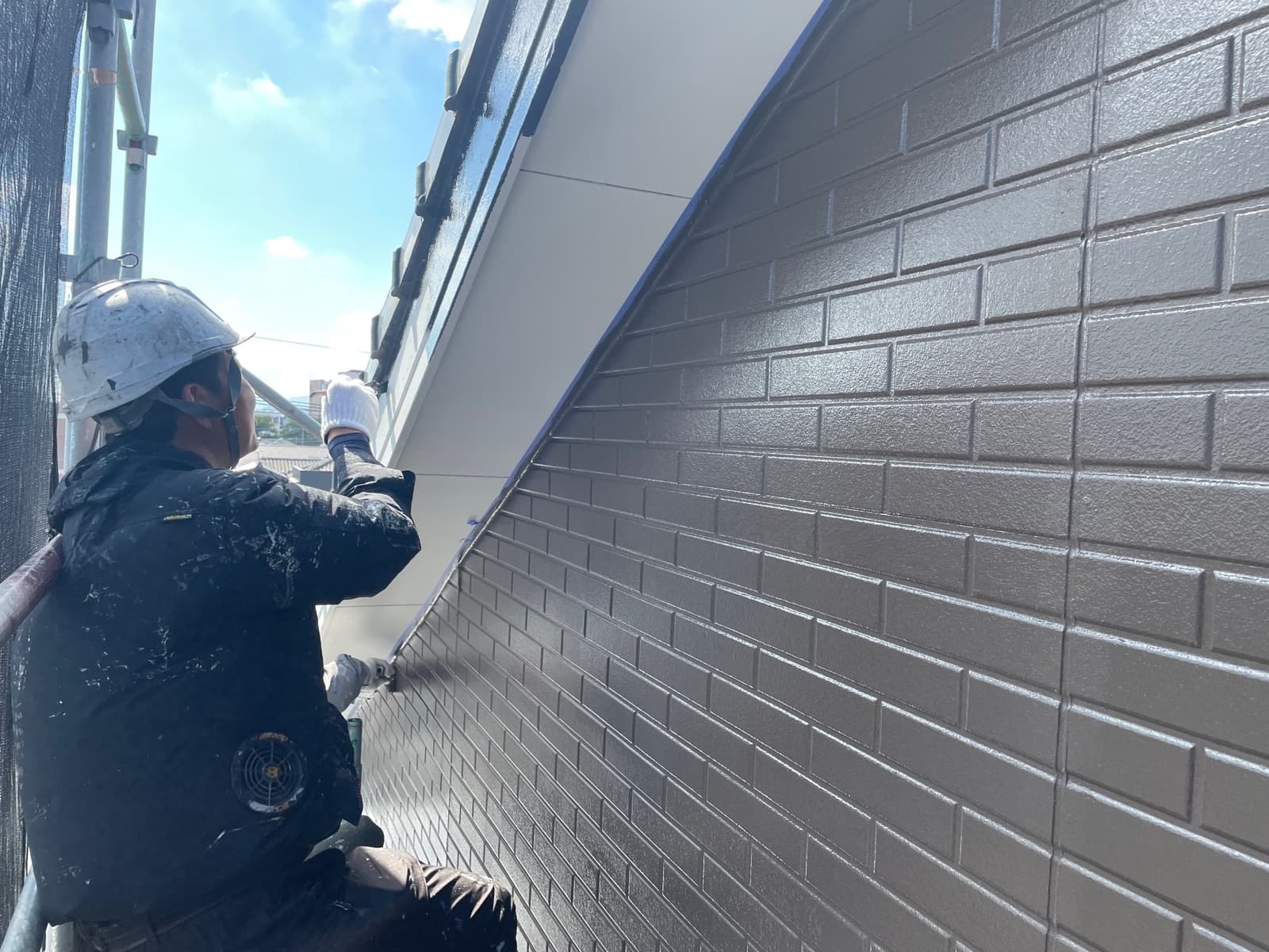 本日は外壁上塗り2回目をさせて頂いております。