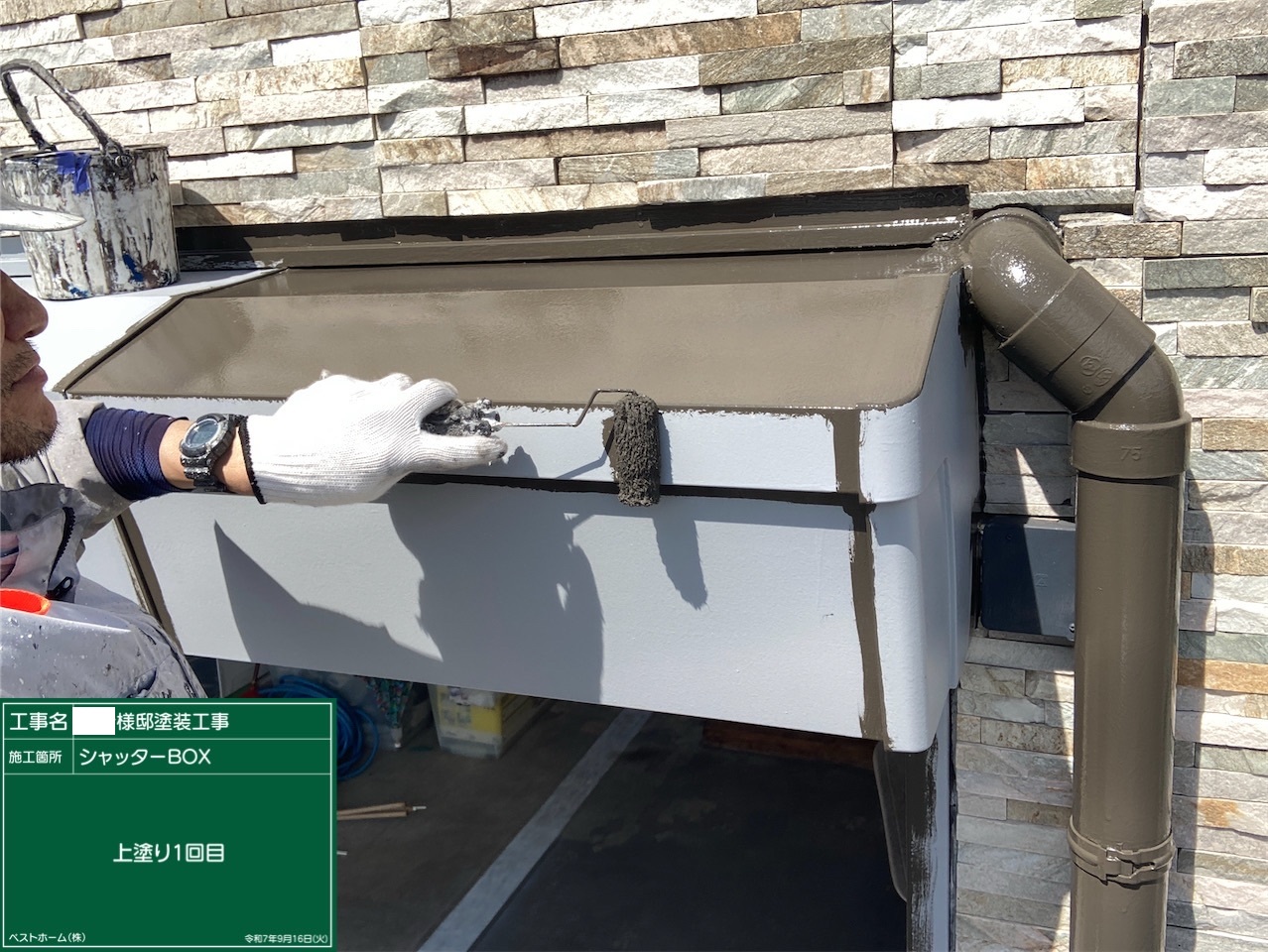 本日はグラナート部トップ、付帯塗装、基礎塗装をさせて頂いております。