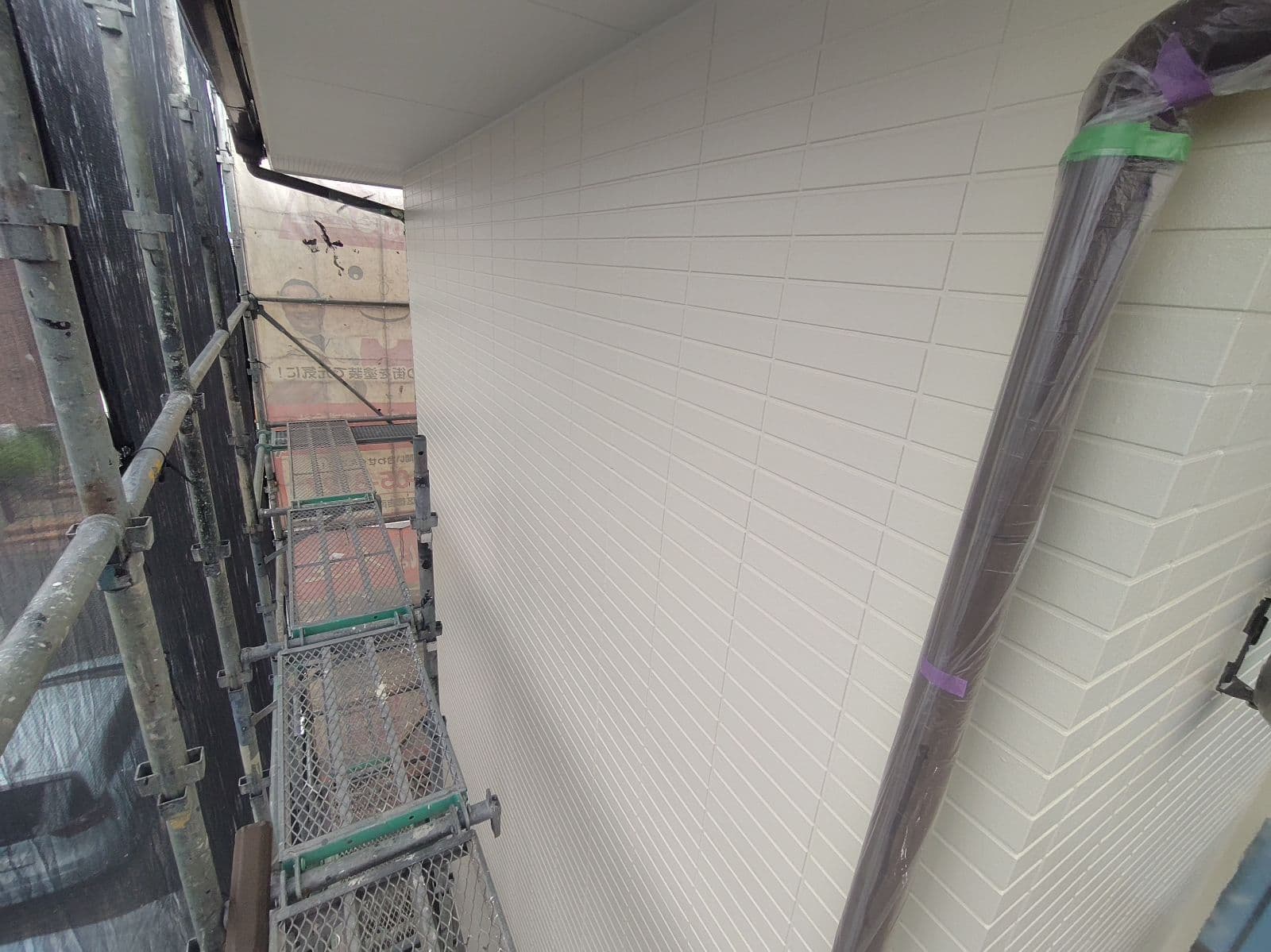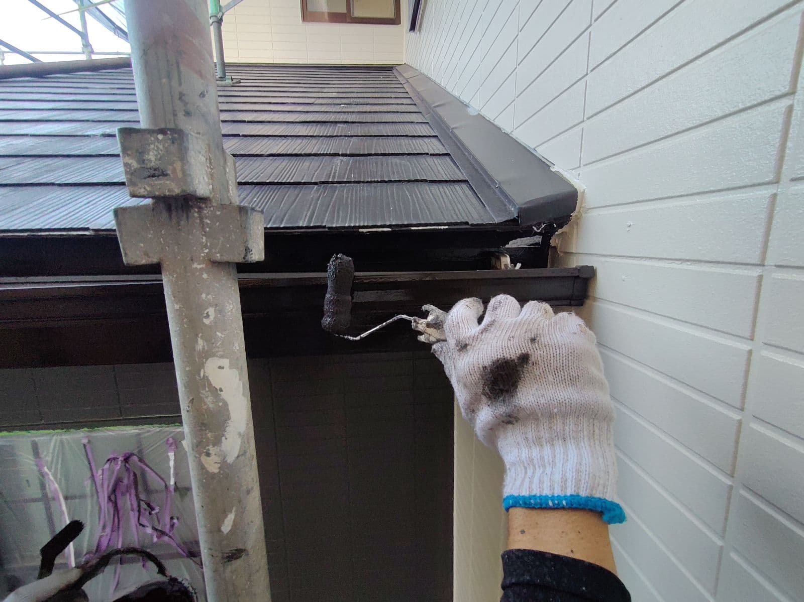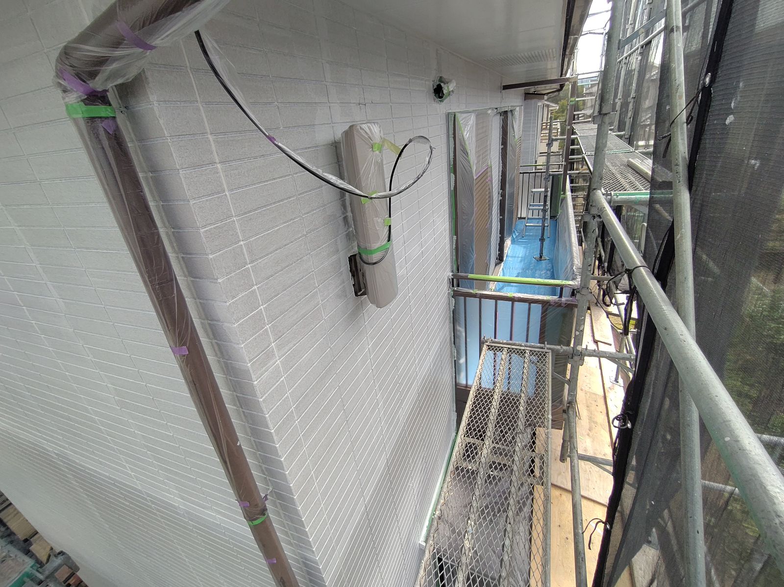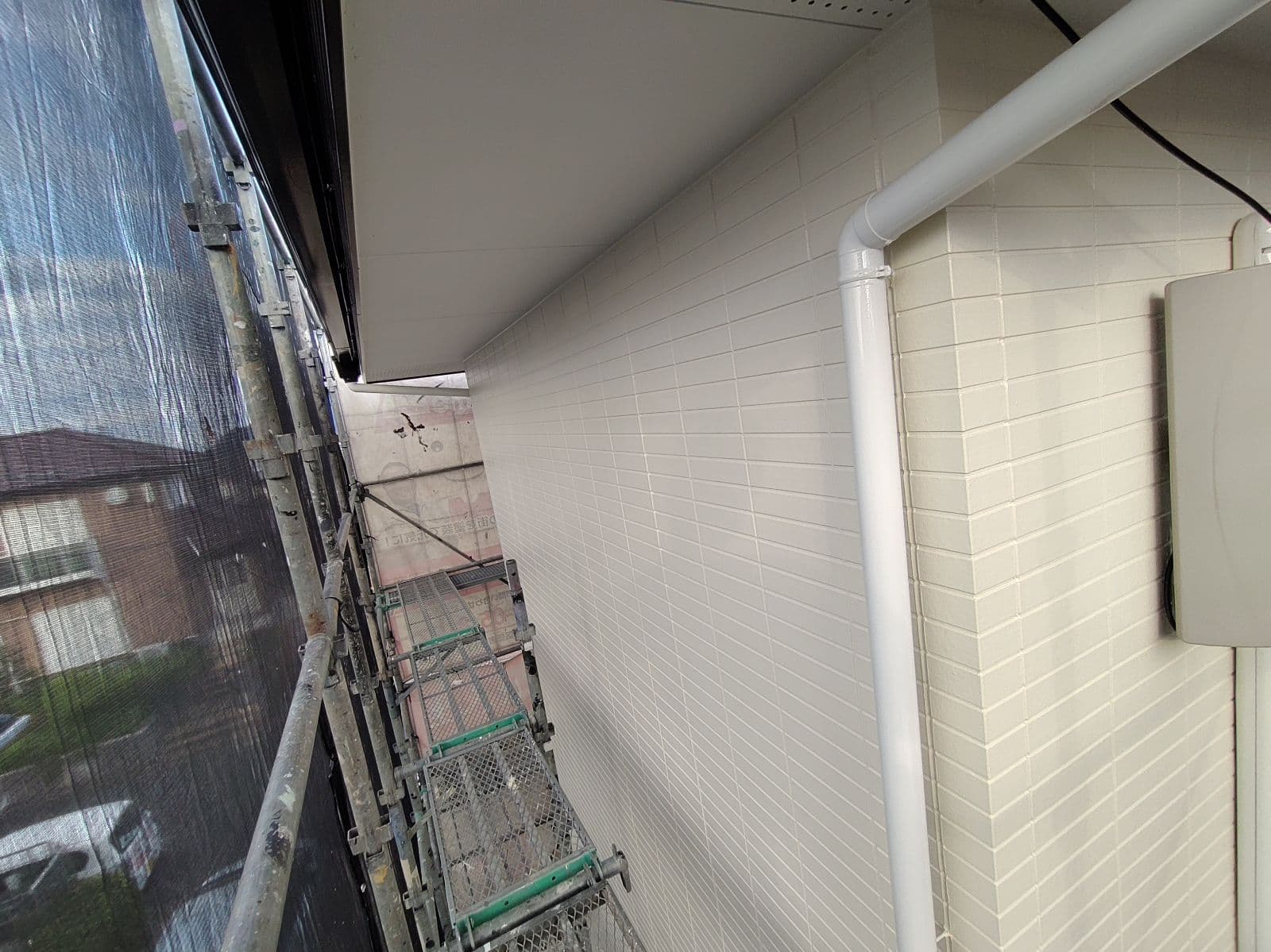 本日はタスペーサー取付、軒天塗装、外壁中間検査等をさせて頂いております。