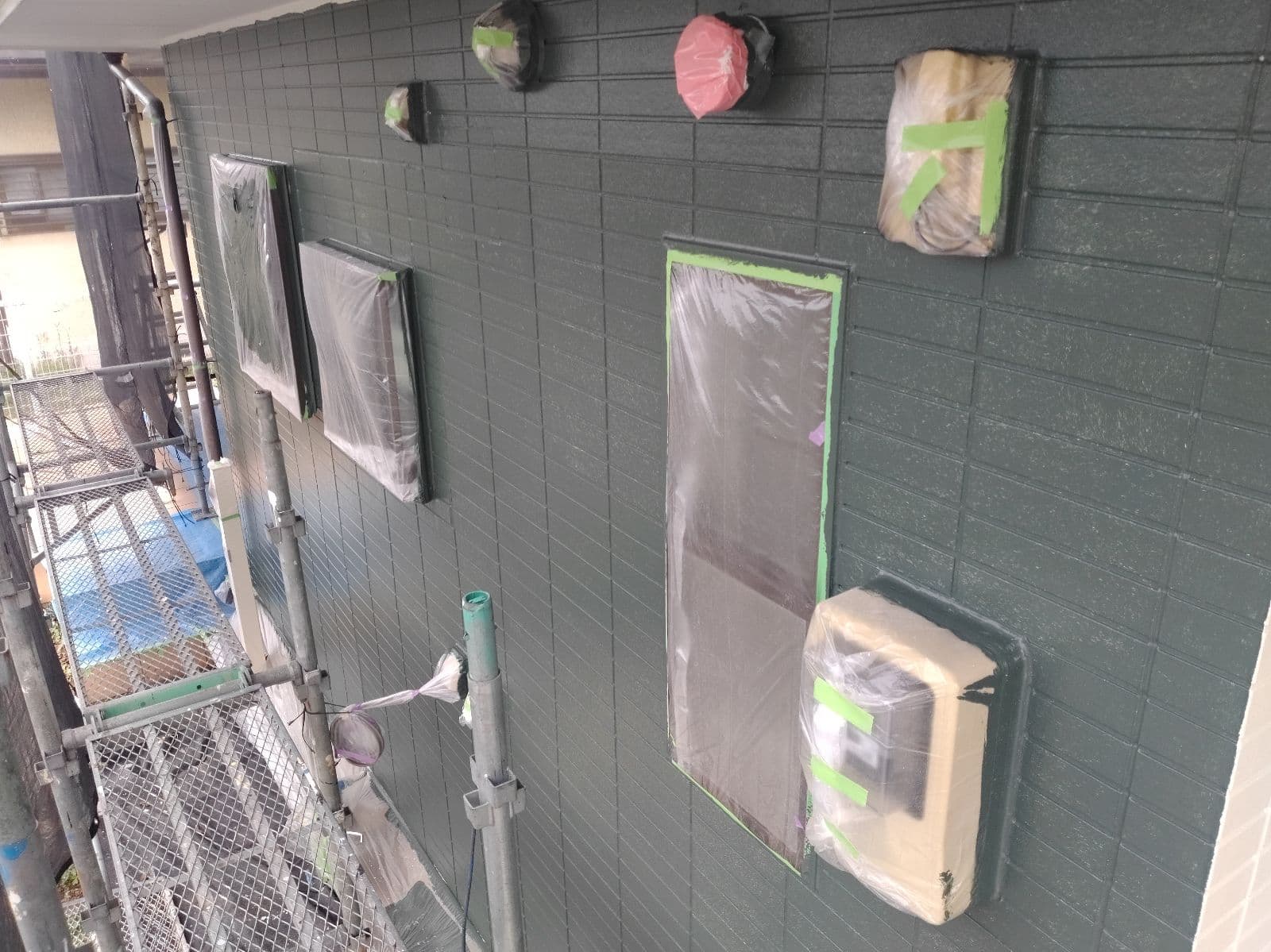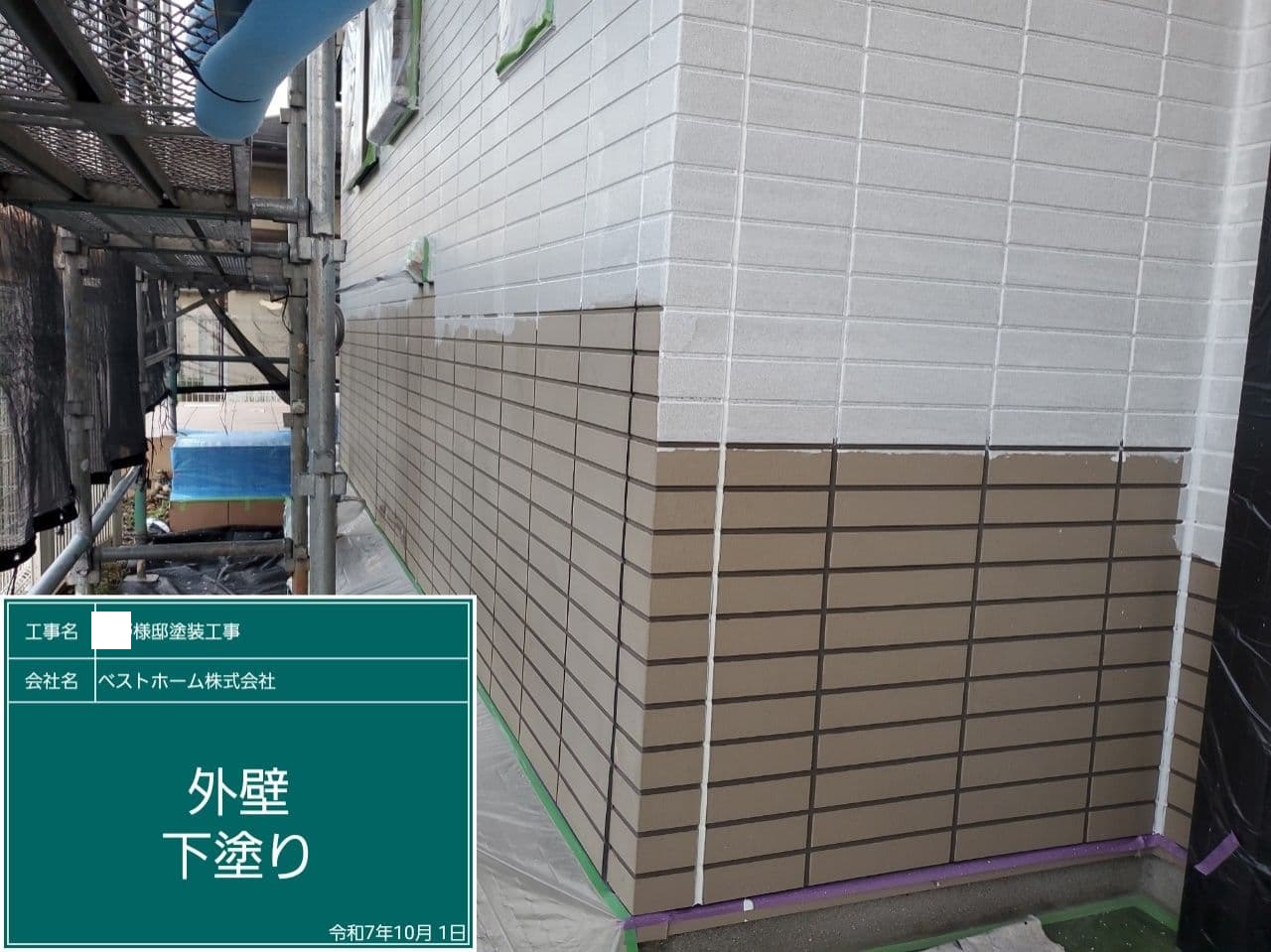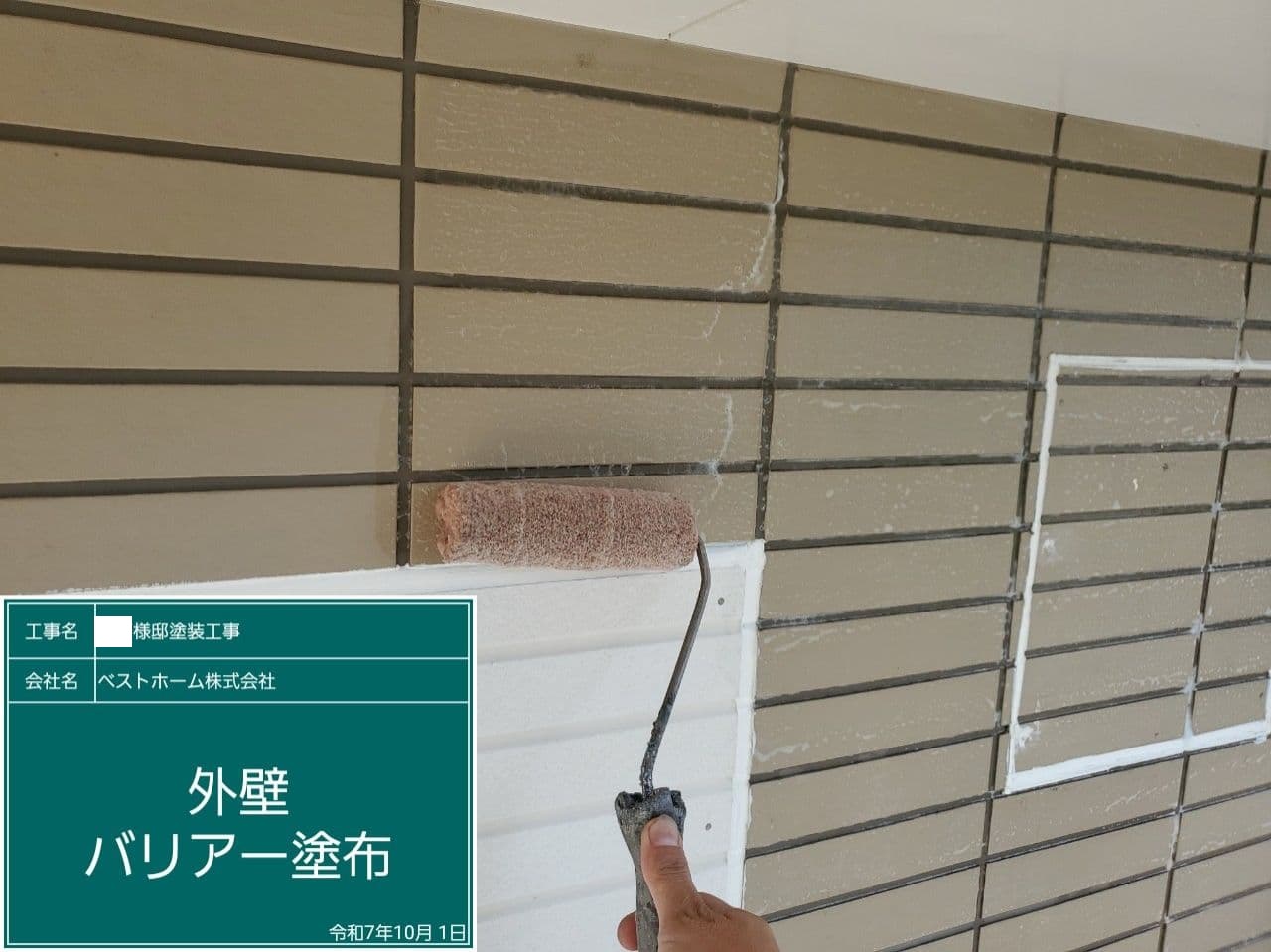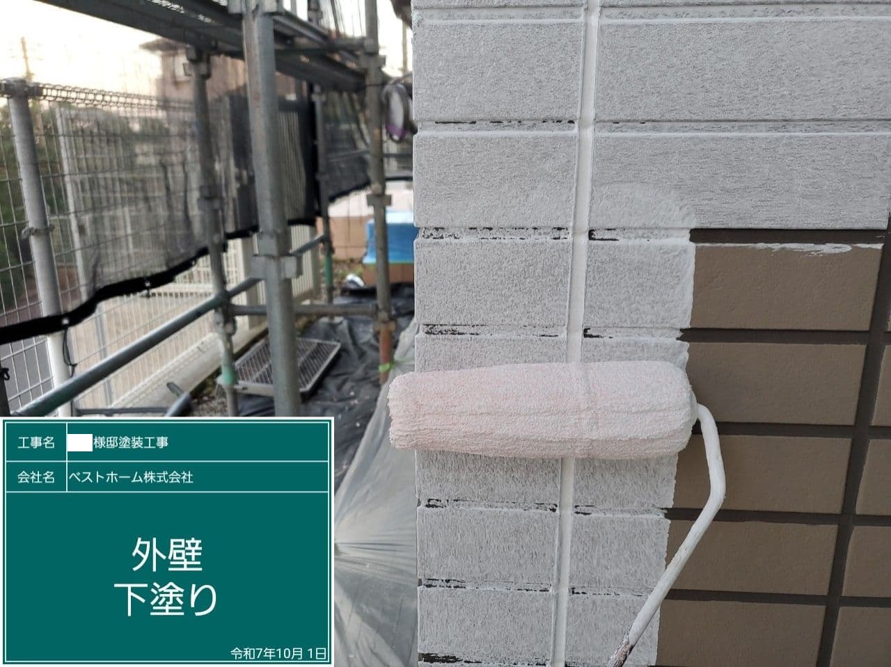 本日はタスペーサー取付、軒天塗装、外壁中間検査等をさせて頂いております。