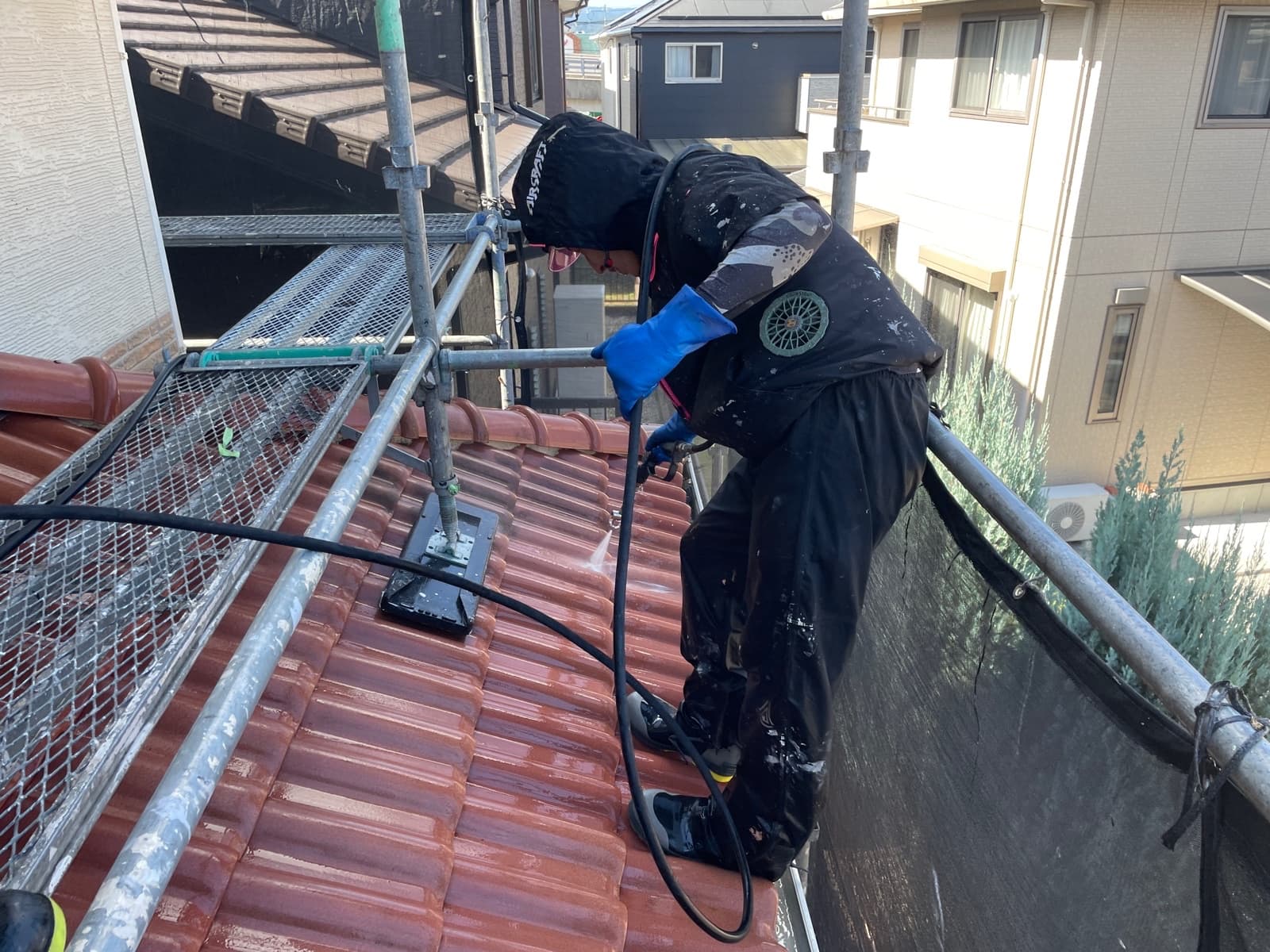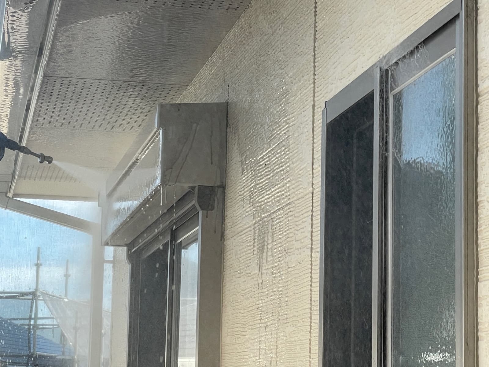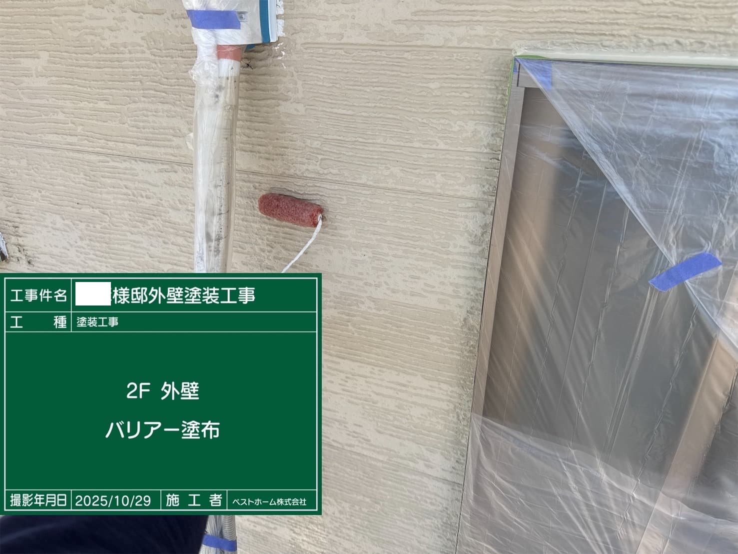 本日は外壁バリアー塗布、下塗り1回目をさせて頂いております。