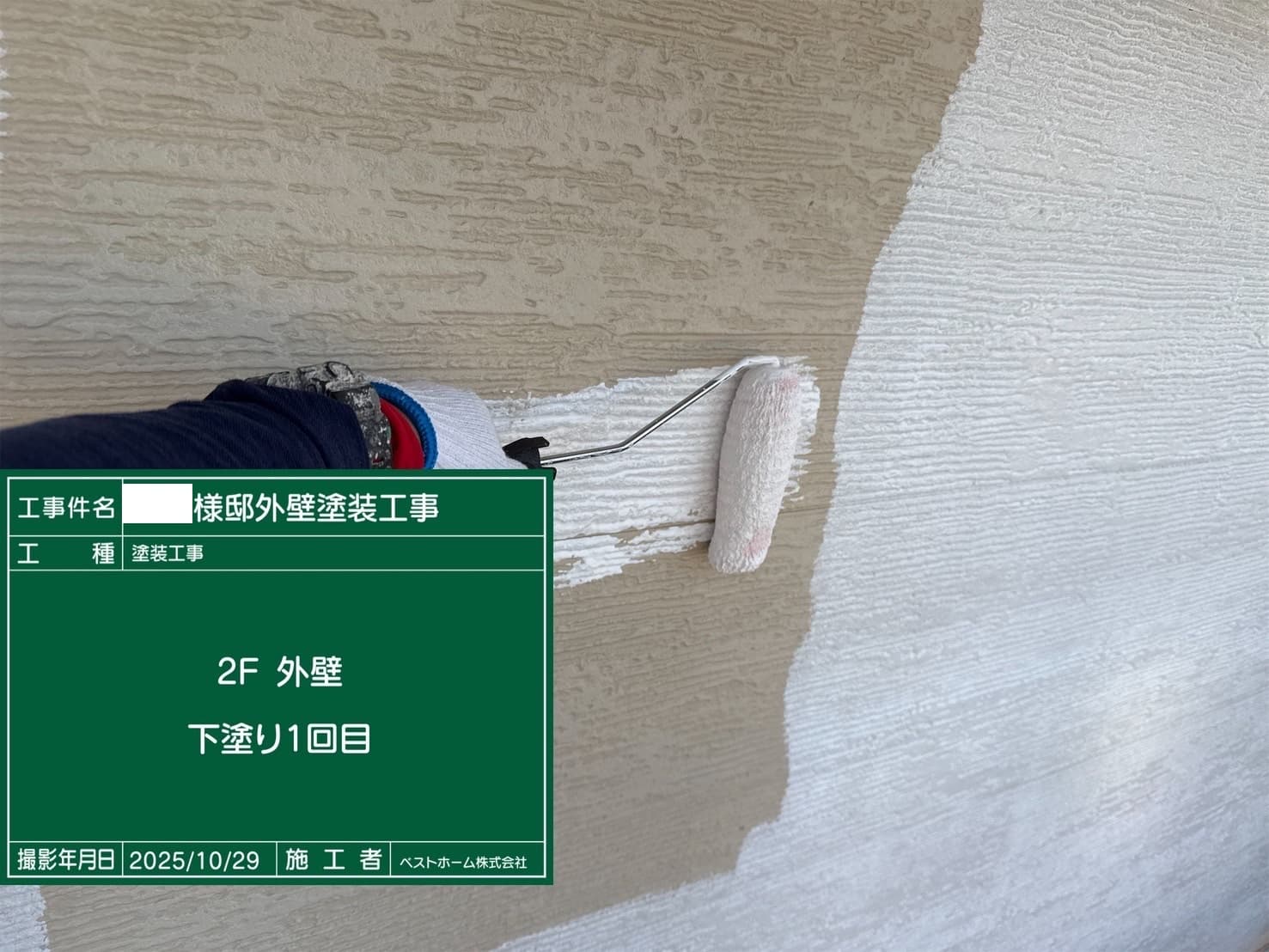 ◎2階外壁下塗り2回目、中間検査、付帯塗装