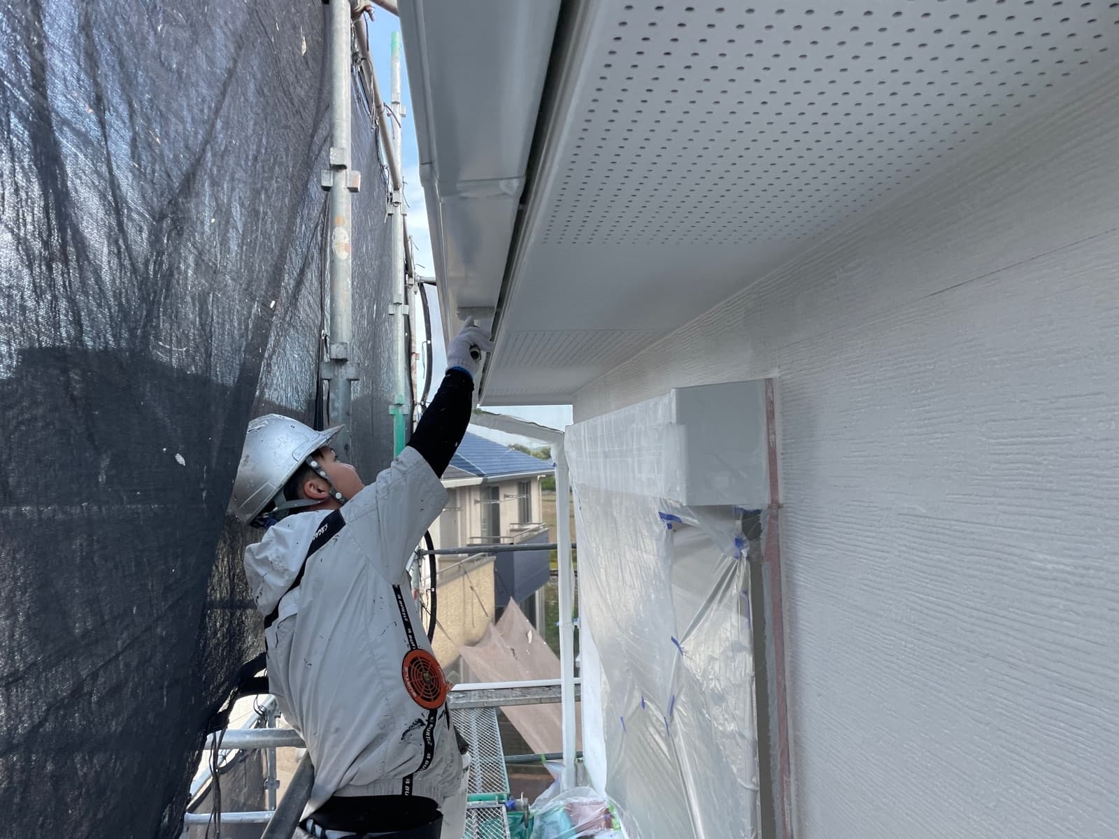 本日は2階外壁下塗り2回目、中間検査、付帯塗装をさせて頂いております。