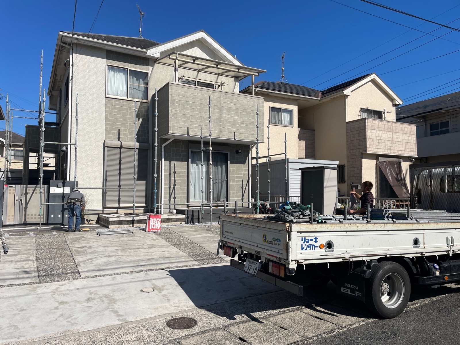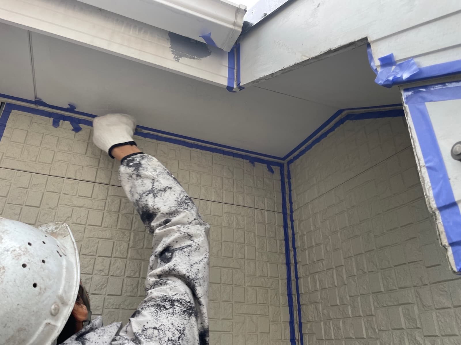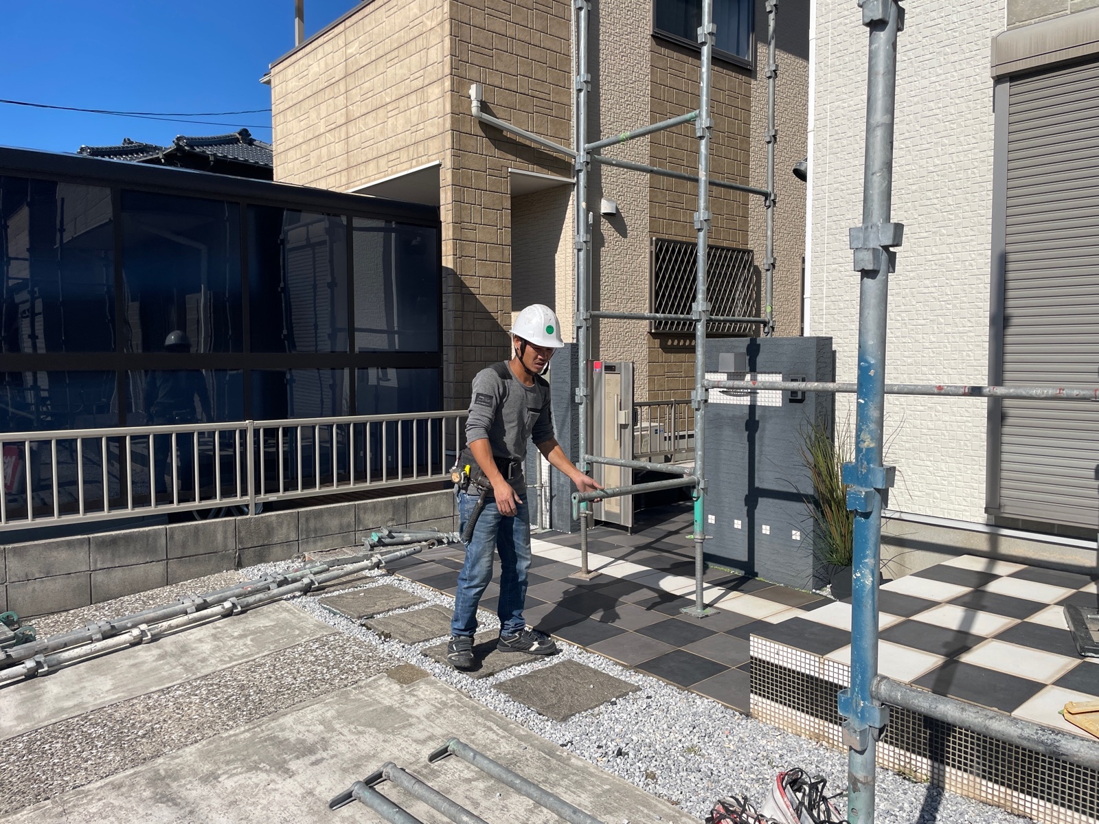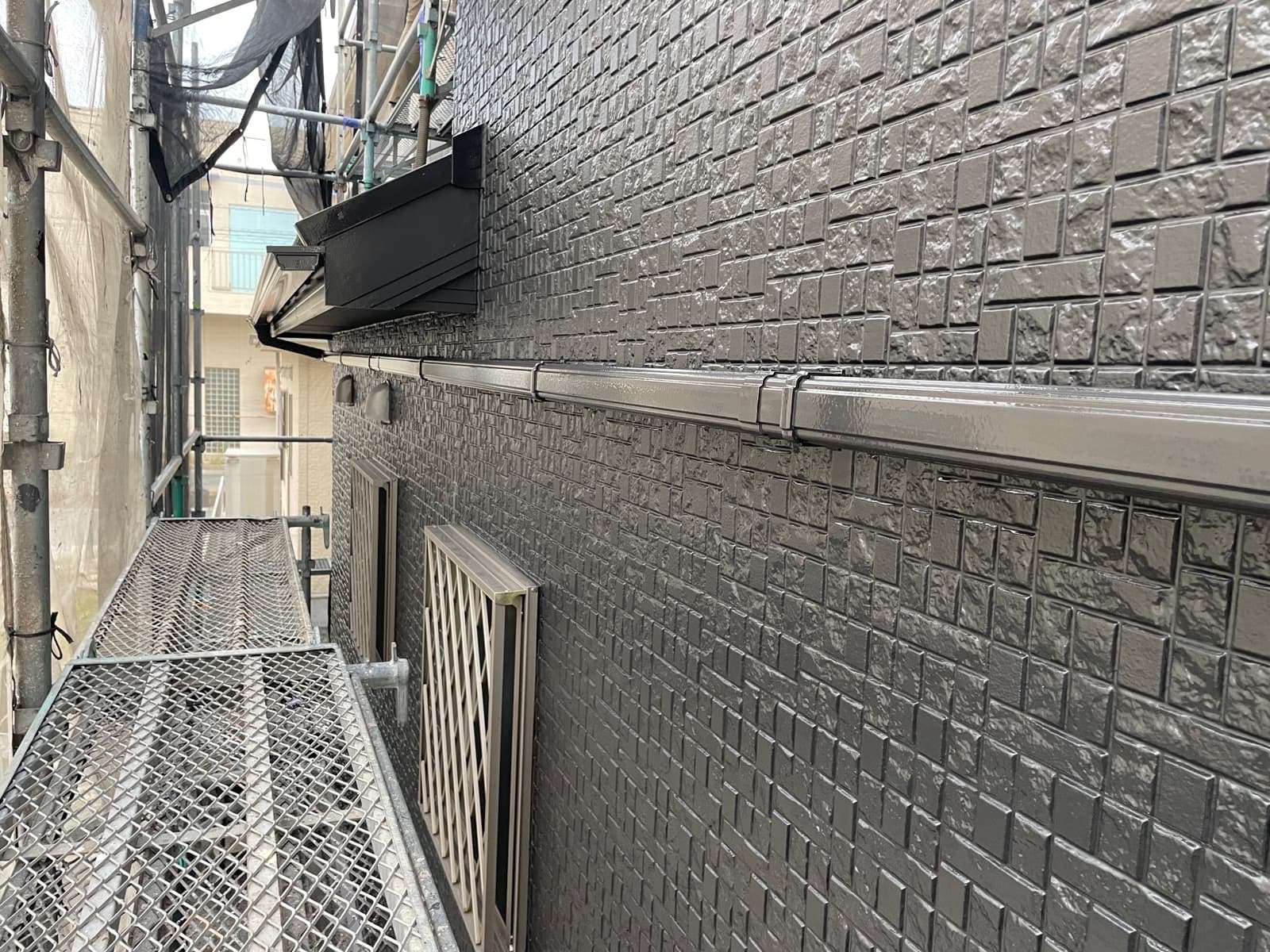 本日は塀塗装、ベランダ塗装、樋取付、付帯塗装をさせて頂いております。