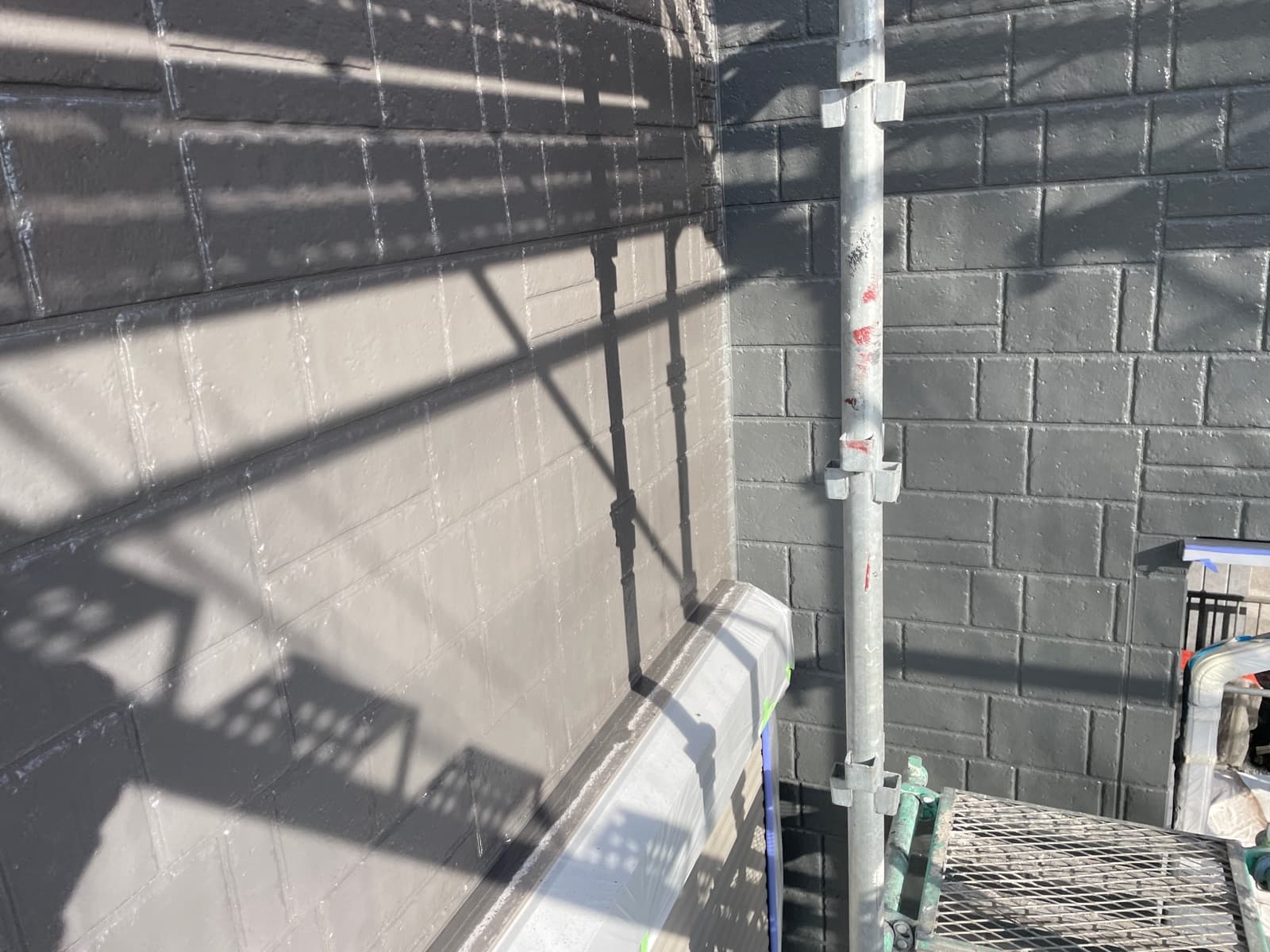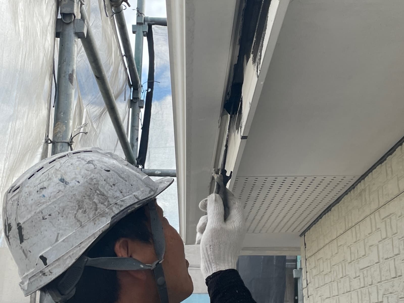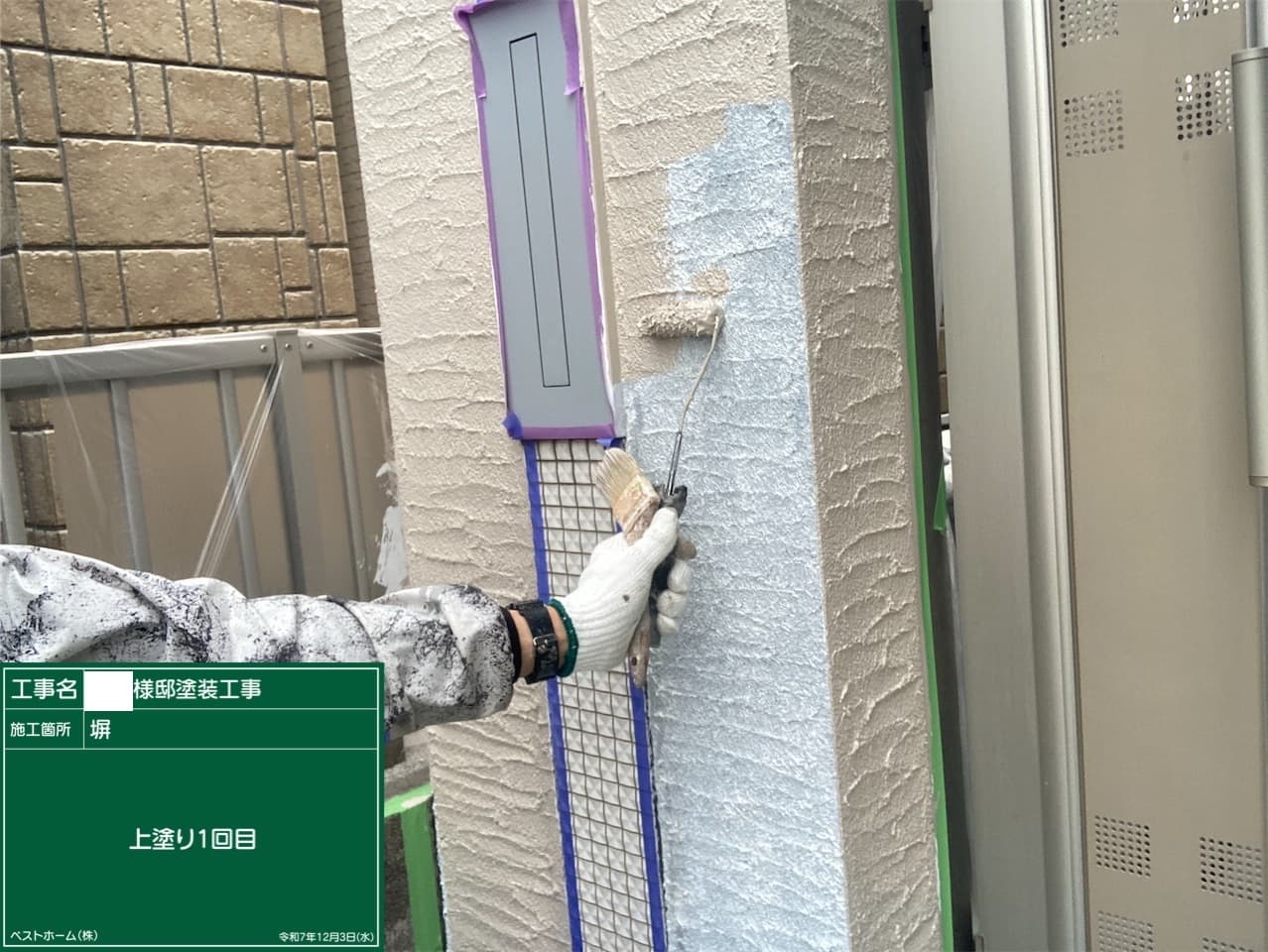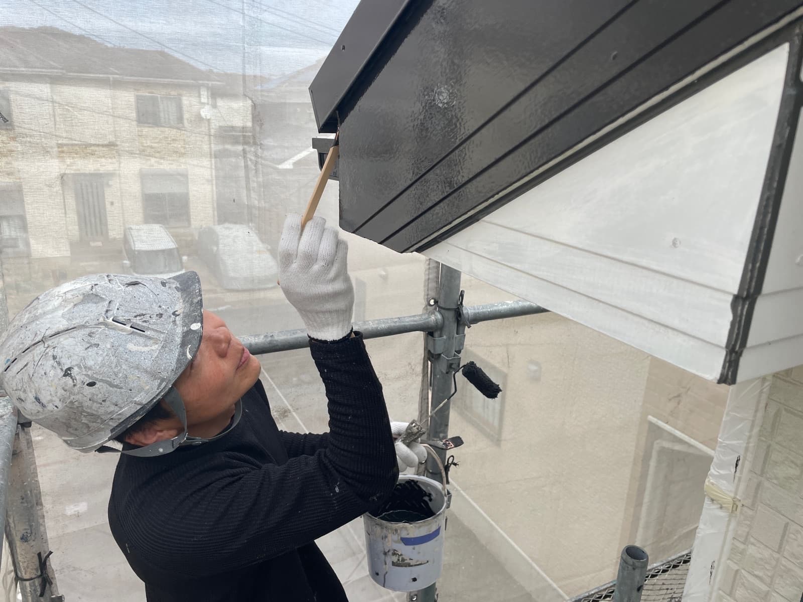 本日は塀塗装、ベランダ塗装、樋取付、付帯塗装をさせて頂いております。