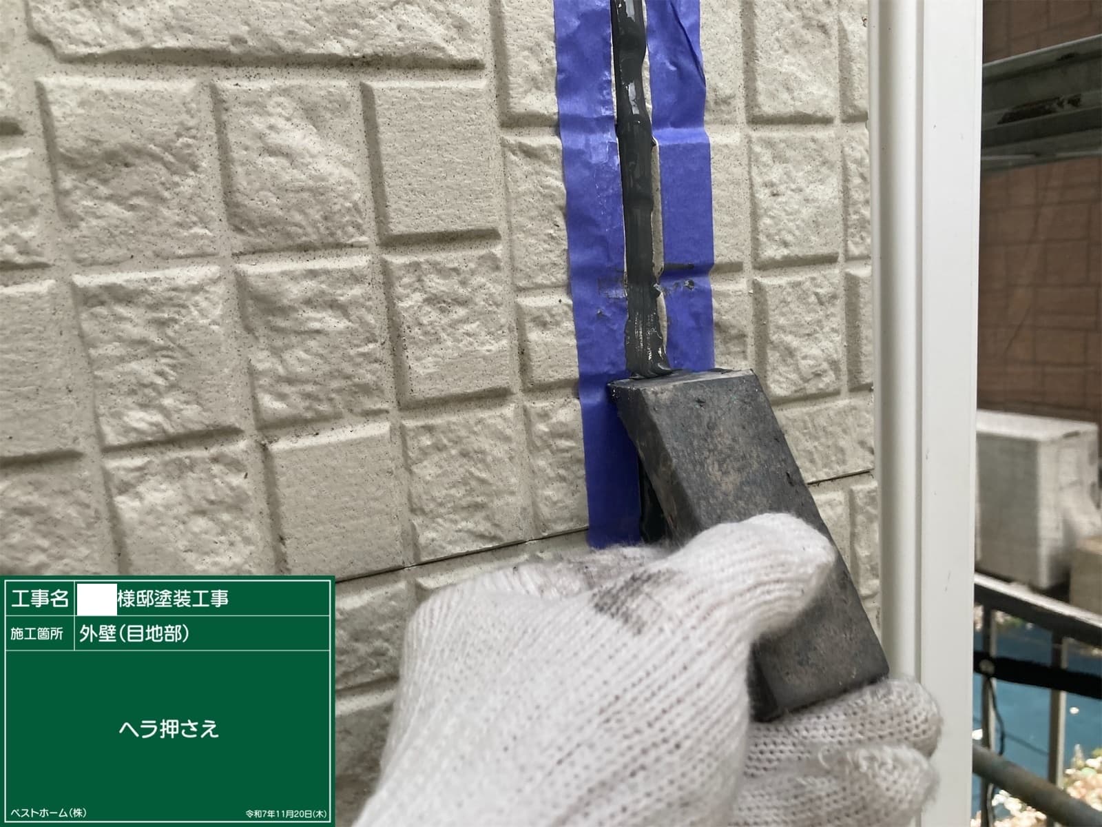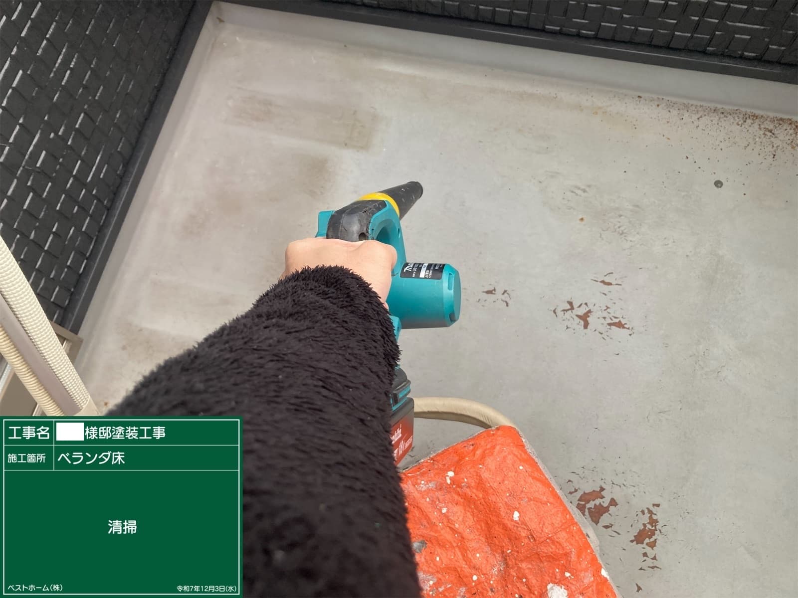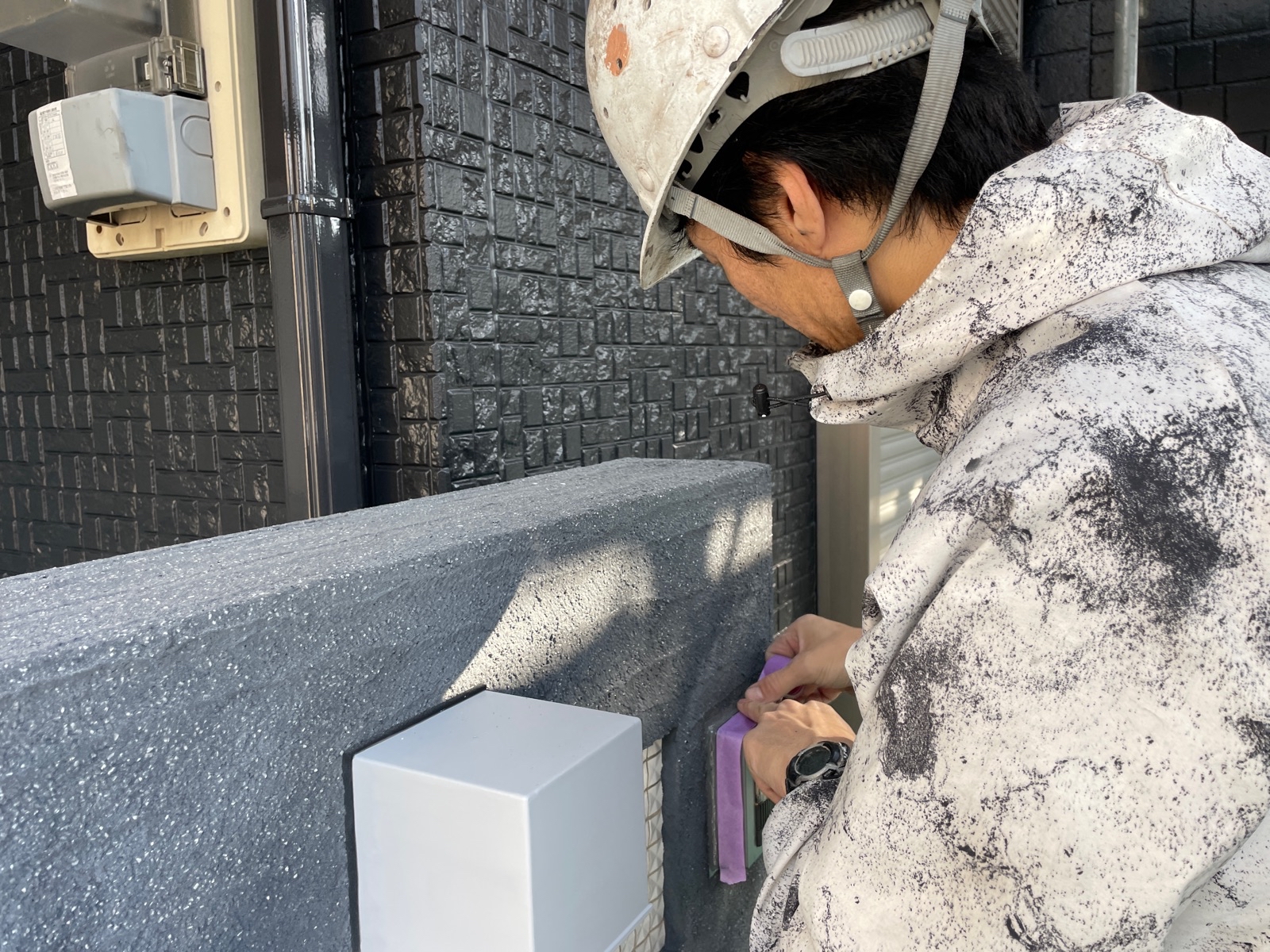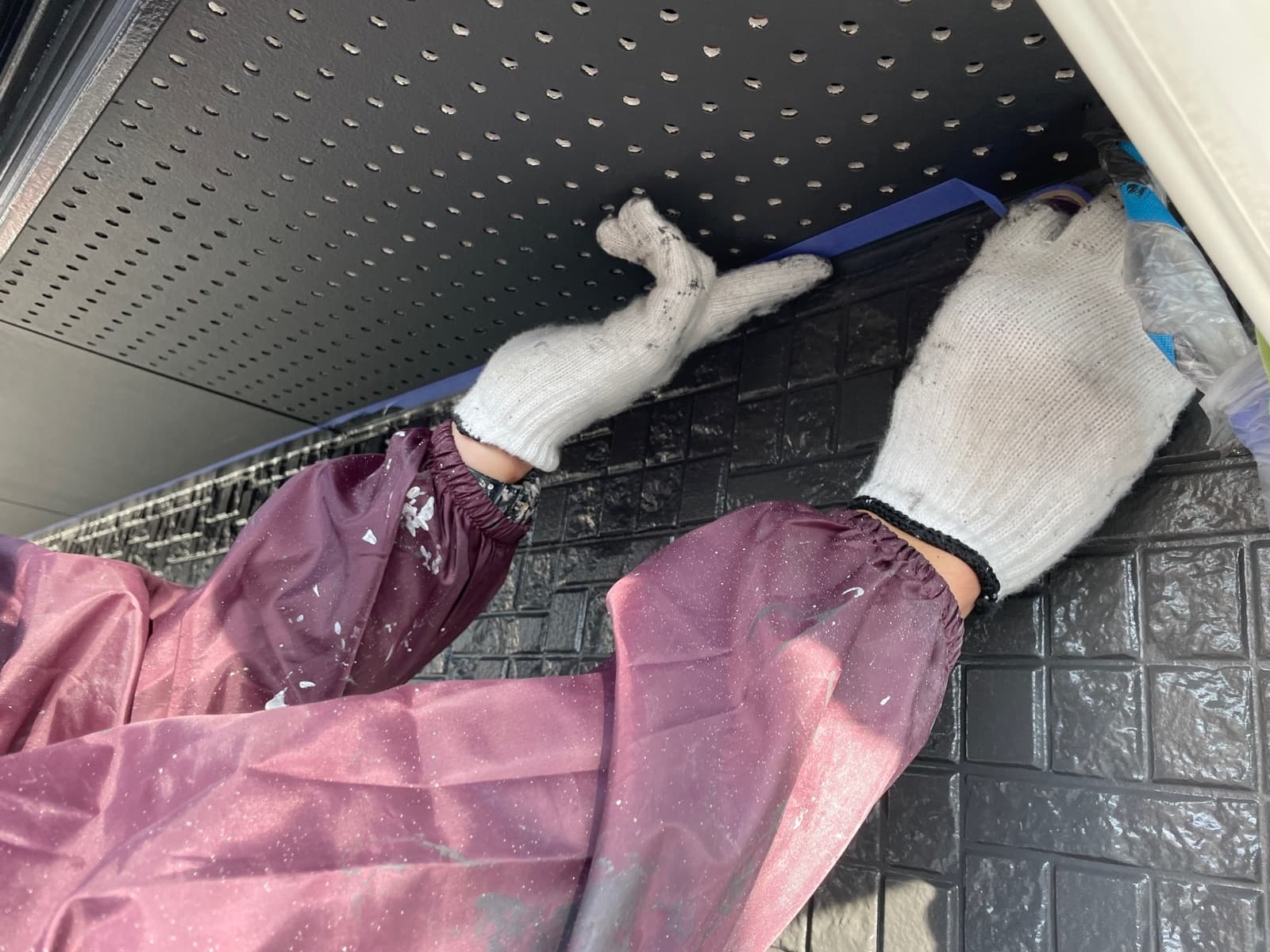 本日は塀塗装、ベランダ塗装、樋取付、付帯塗装をさせて頂いております。
