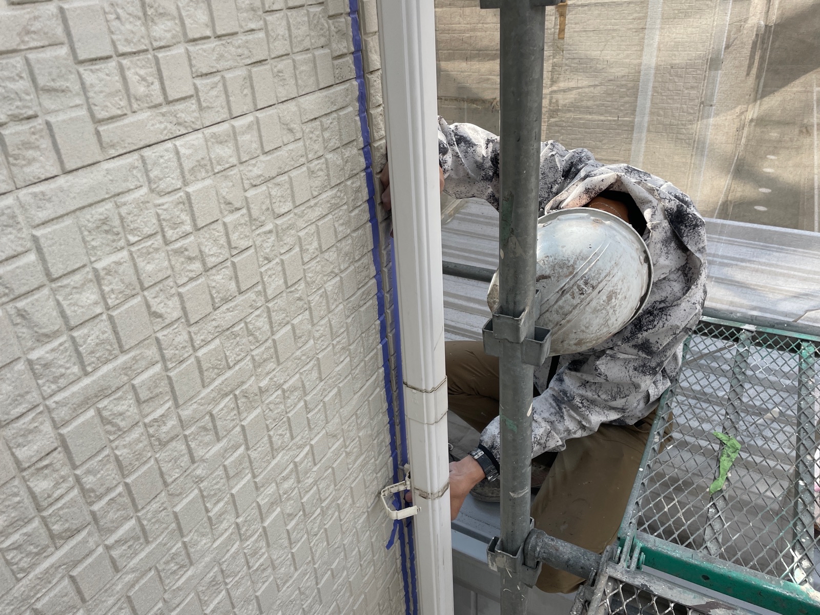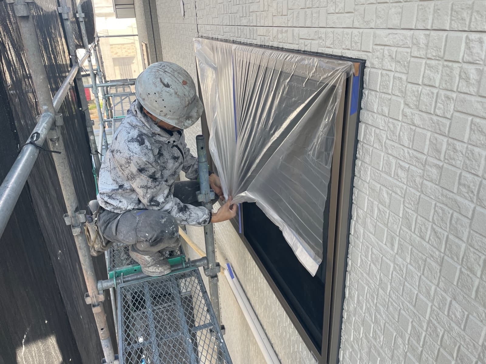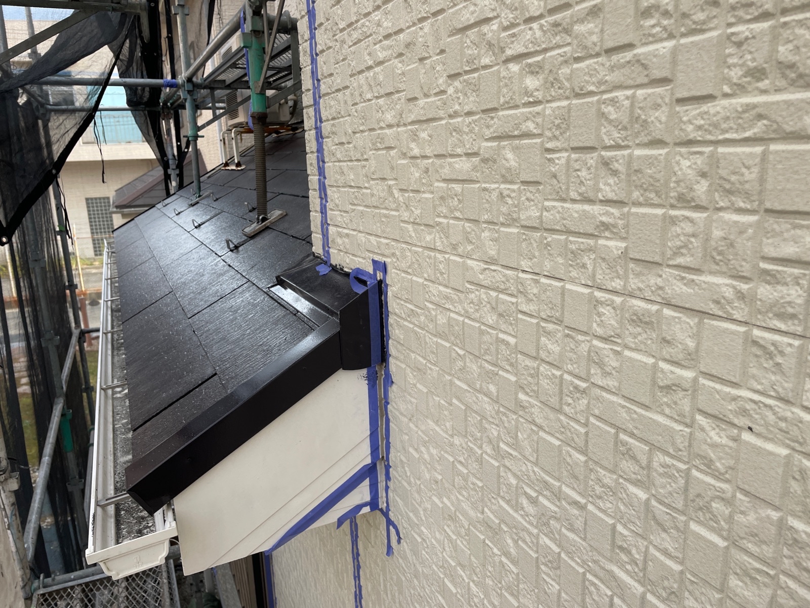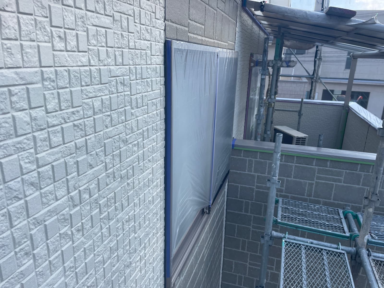 次回施工・・・外壁上塗り2回目、養生ばらし