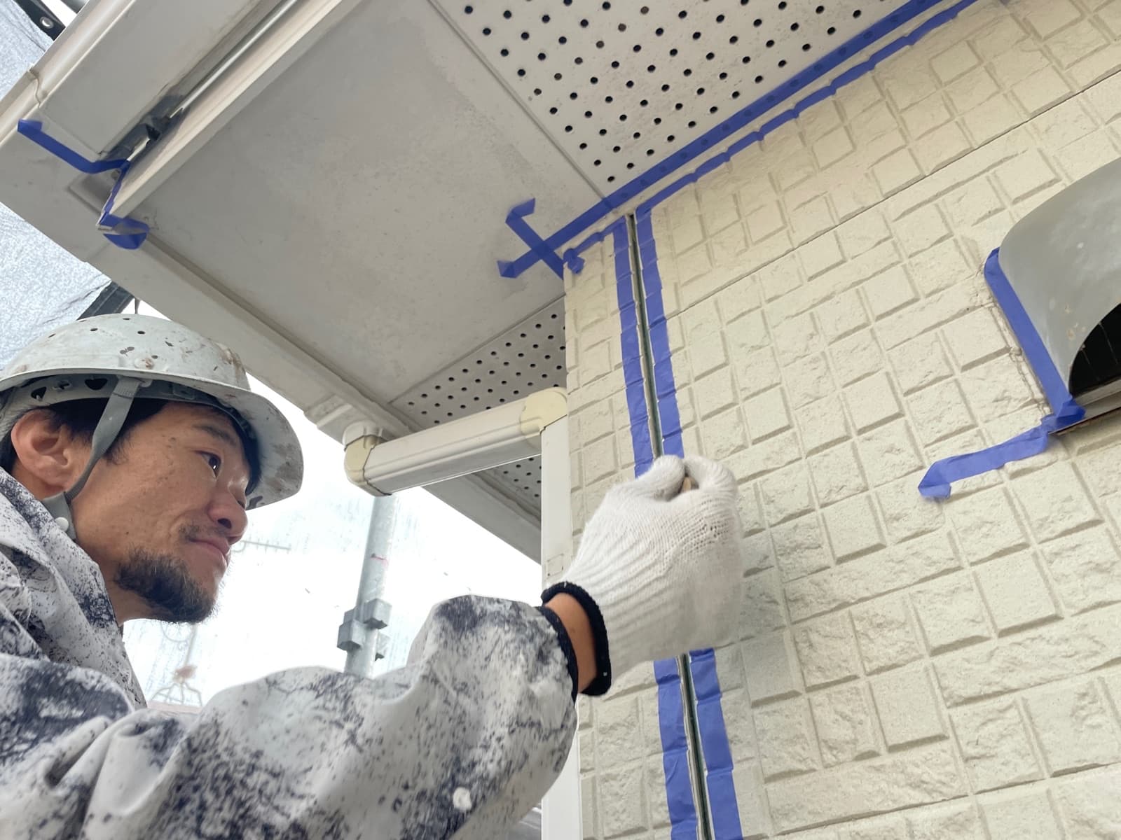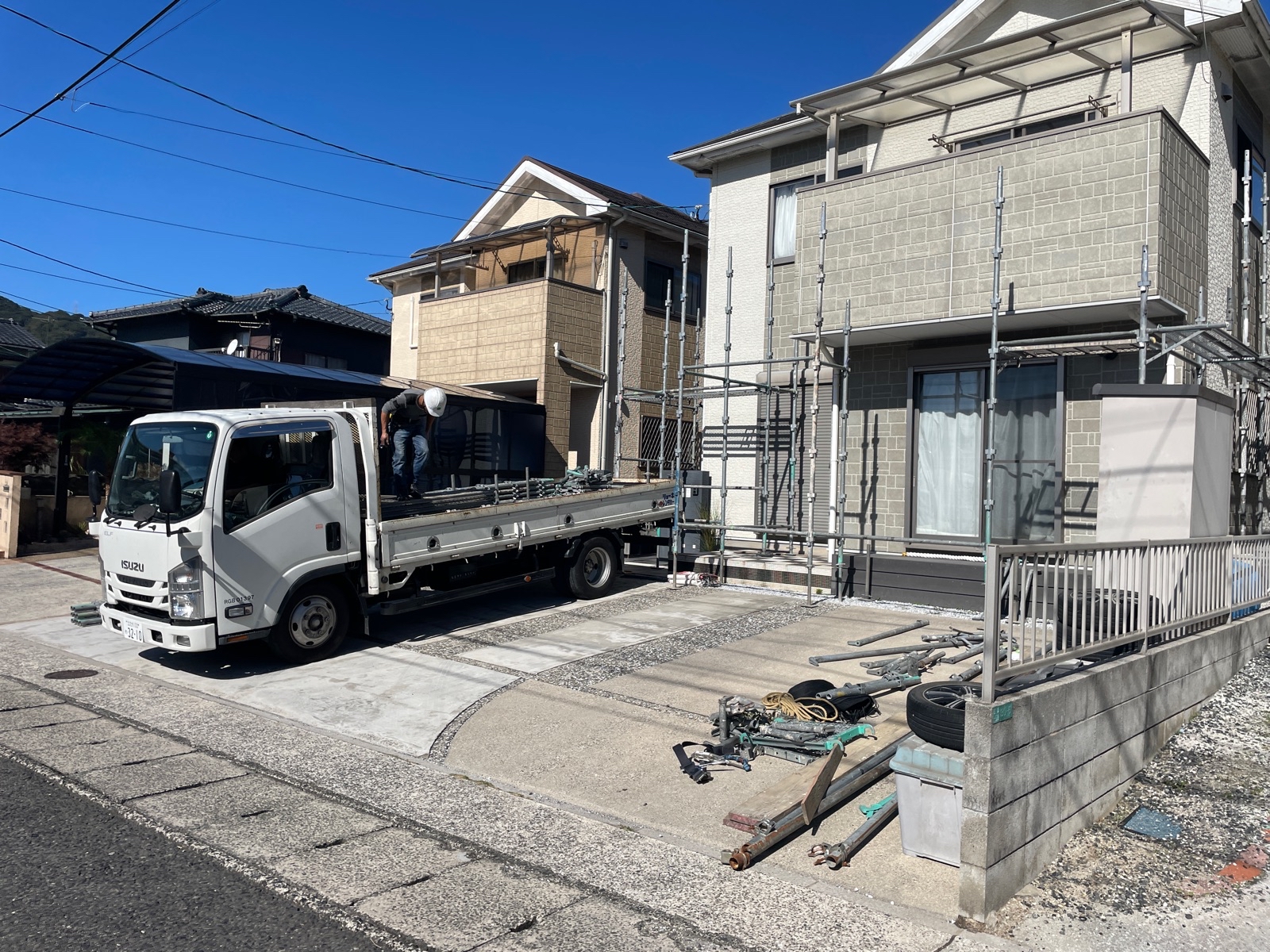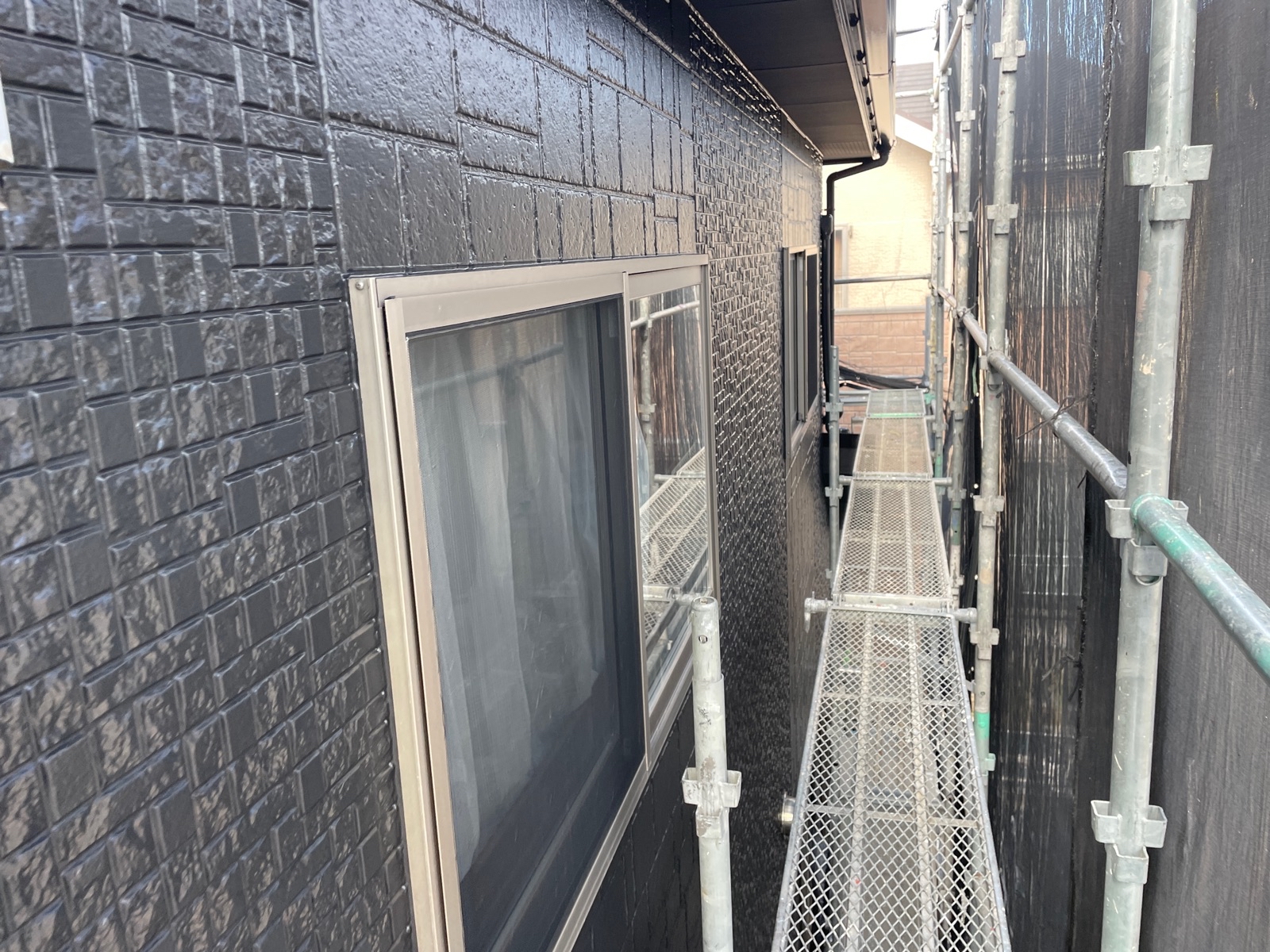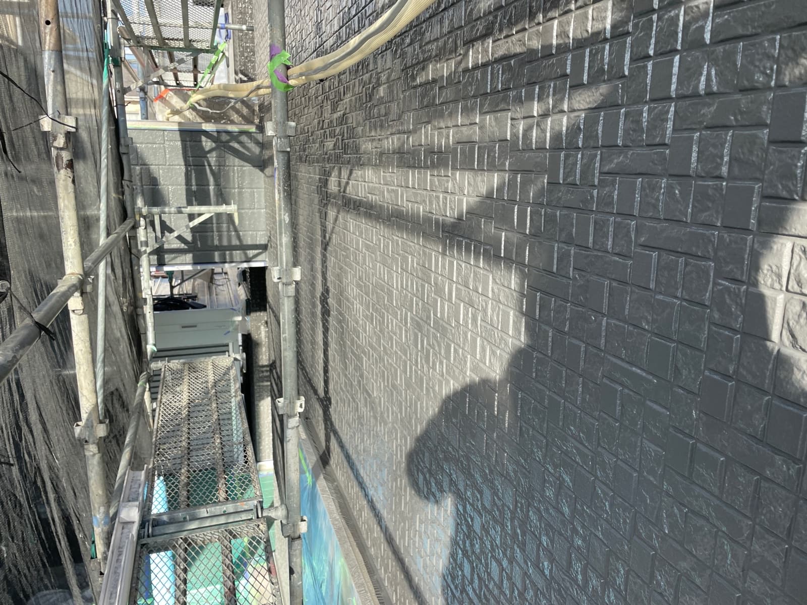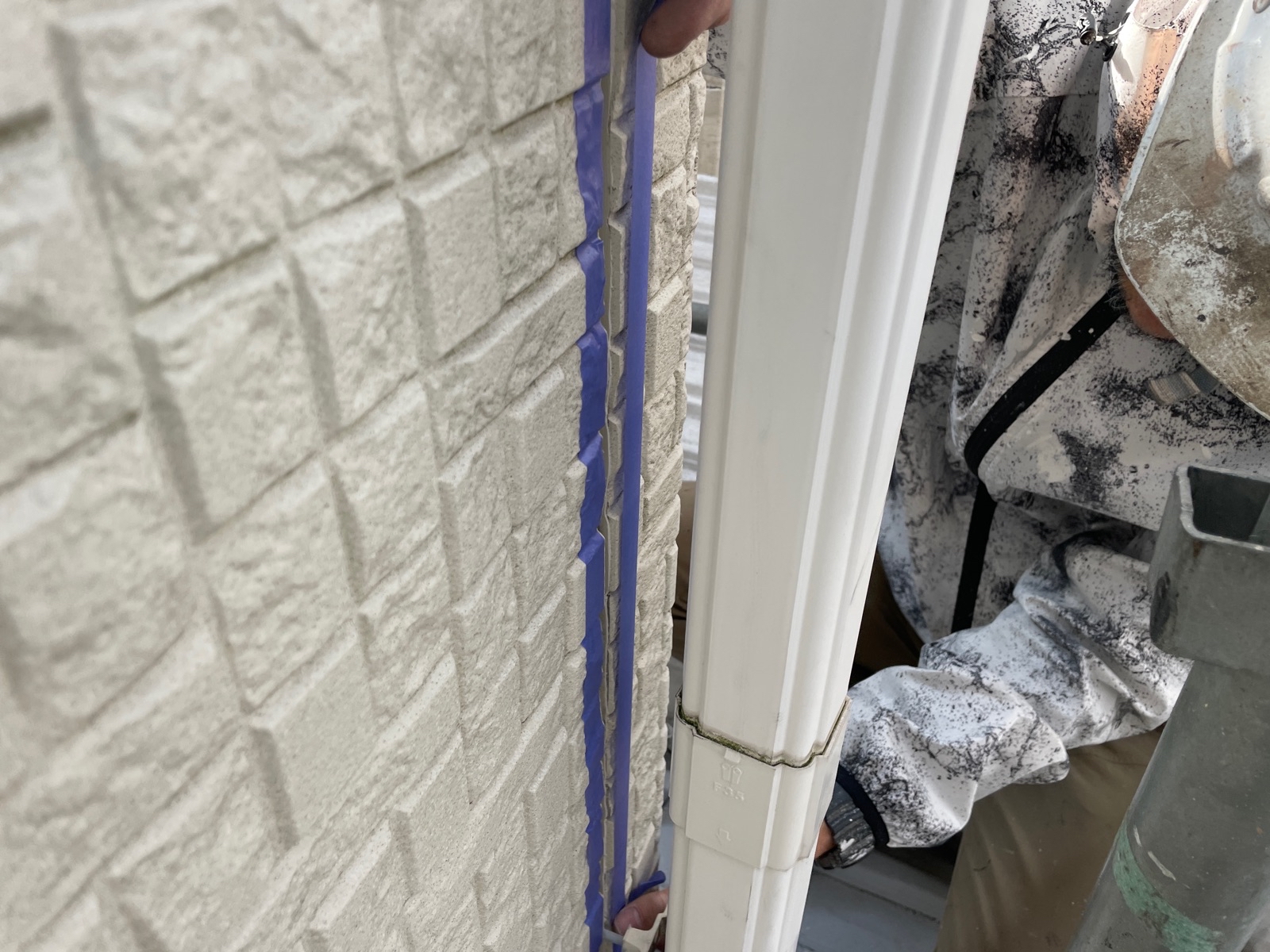 次回施工・・・外壁上塗り2回目、養生ばらし